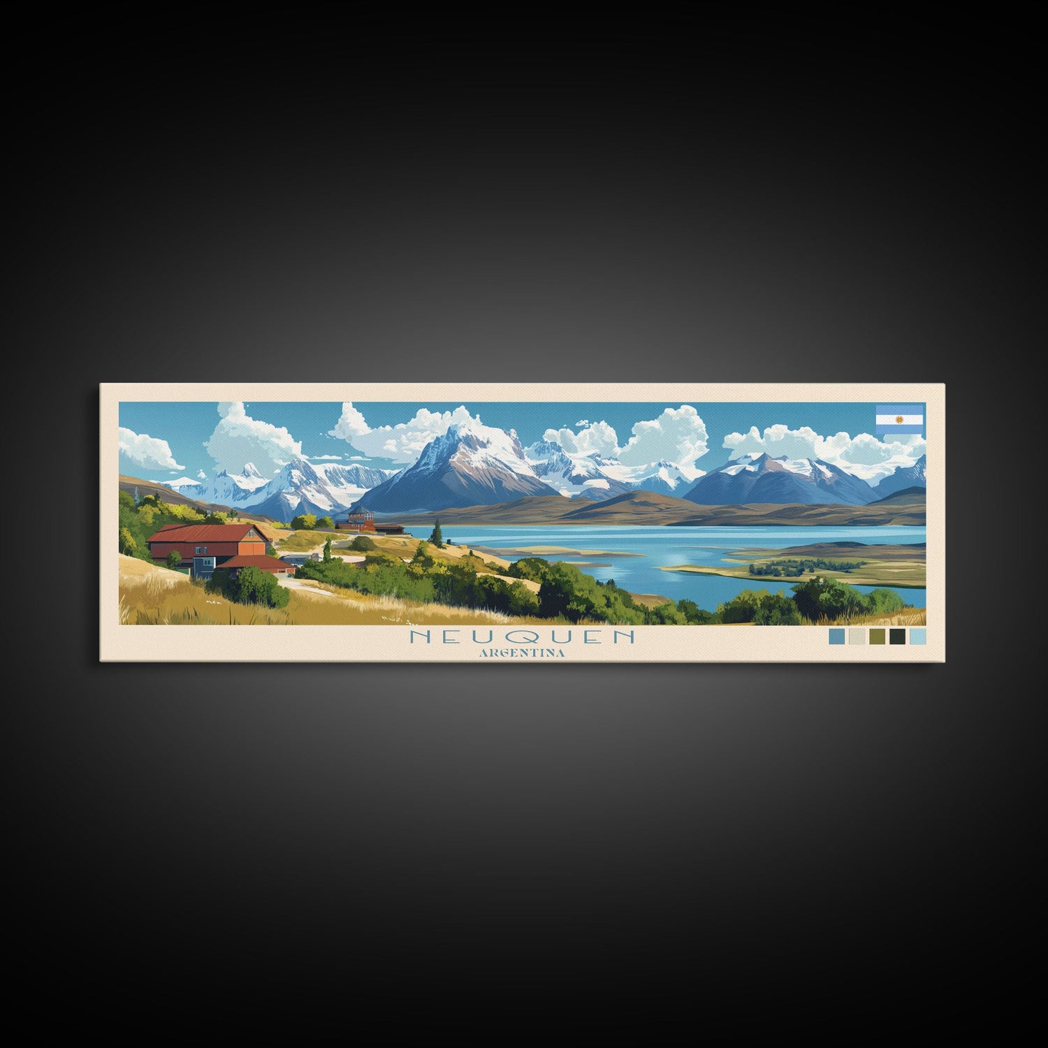 Neuquen, Argentina Panoramic Travel Poster Canvas Print, Neuquen, Argentina Painting, Argentina Art, Neuquen Travel Art, Guest Room Painting