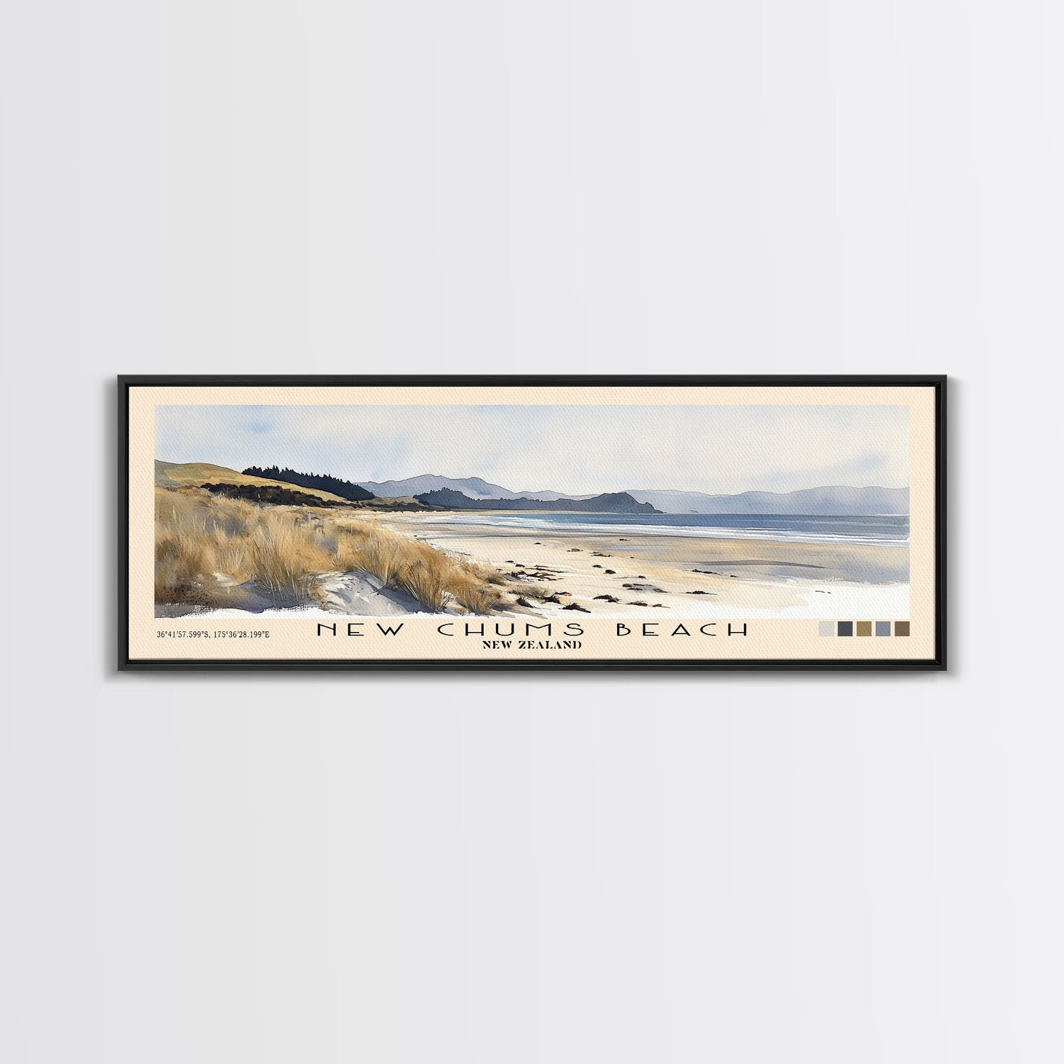 New Chums Beach, New Zealand Watercolor Print, Vacation Gift, New Zealand Wall Art, Beach Painting, Beach Decor, Large Wall Art, Wood Frame Art - 10x30 Inches / No Frame - Stretched Canvas Only is backordered and will ship as soon as it is back in stock.