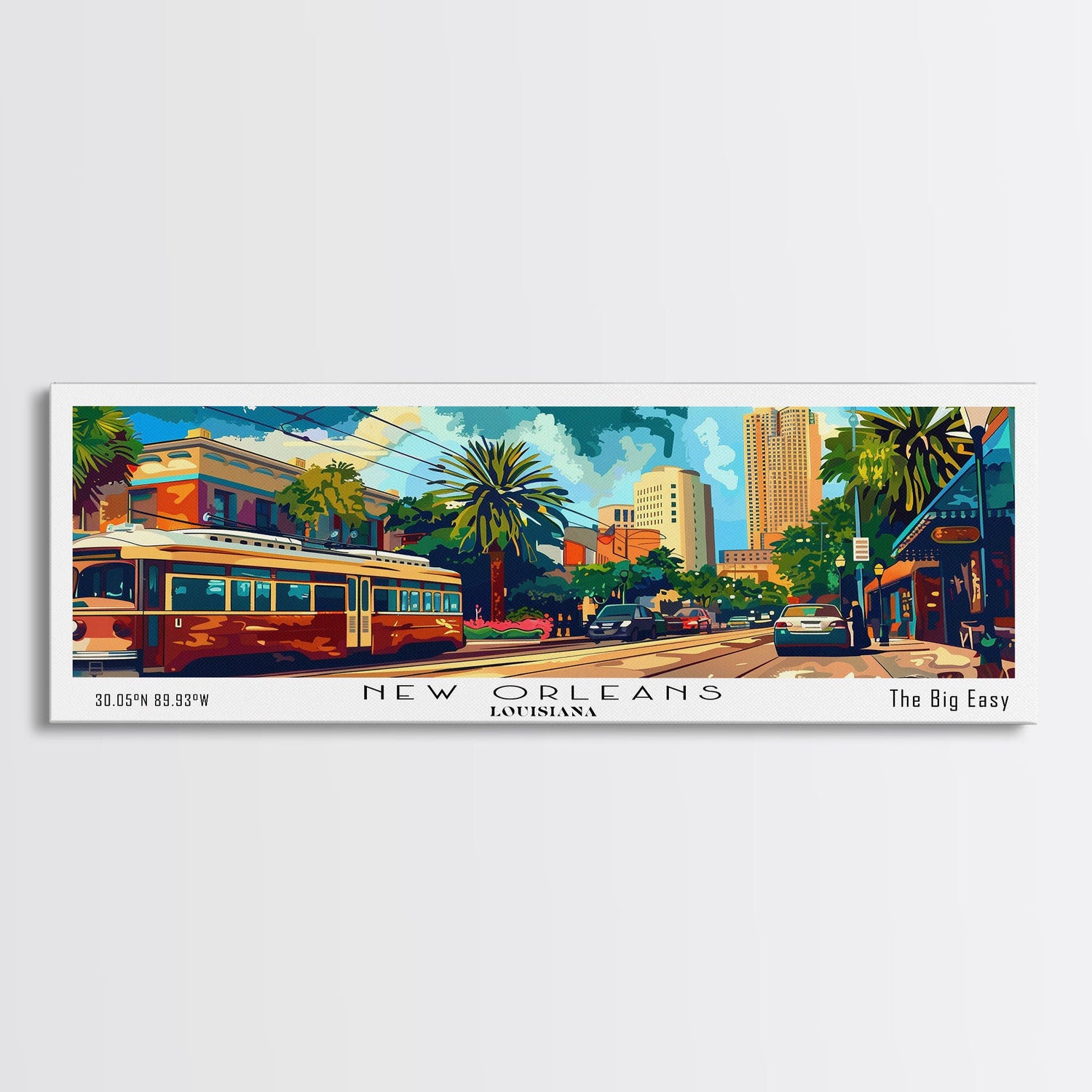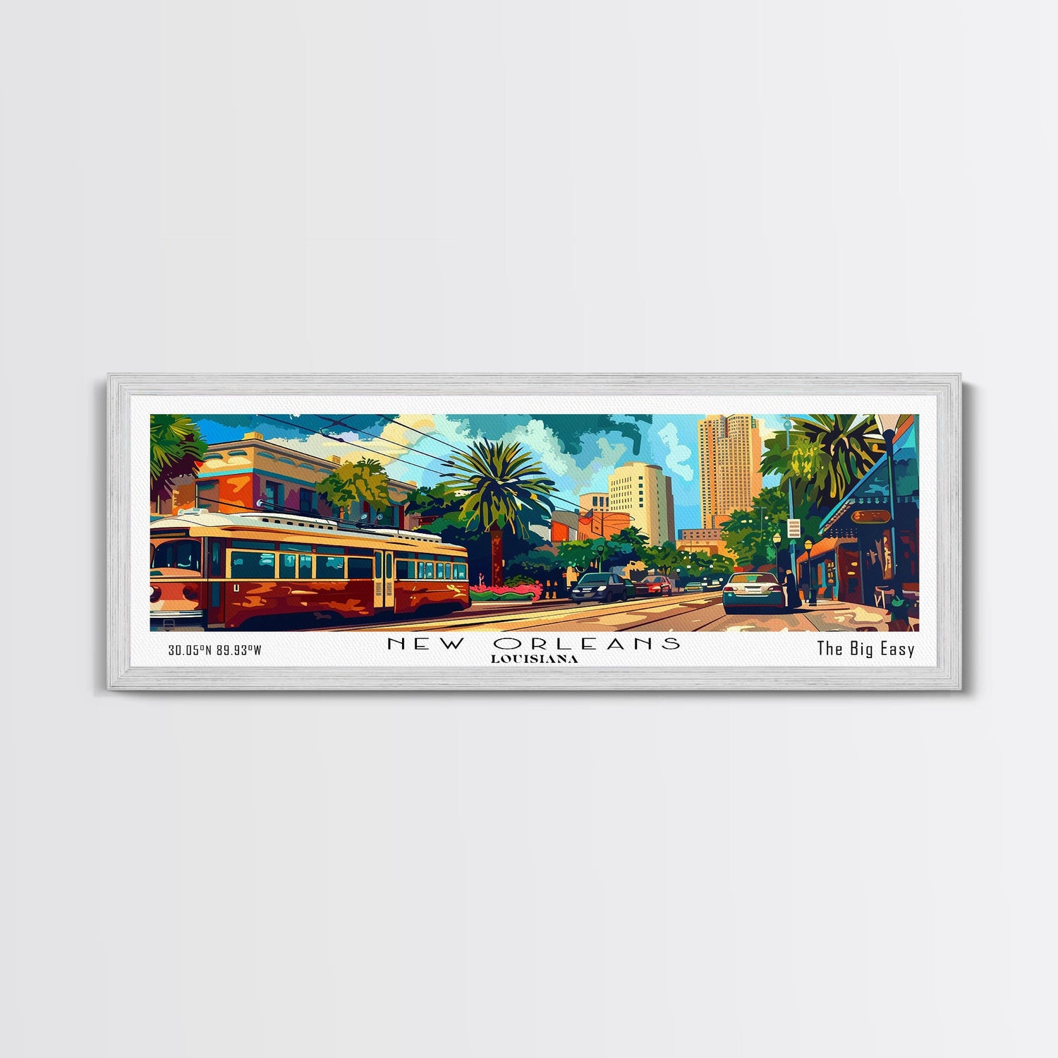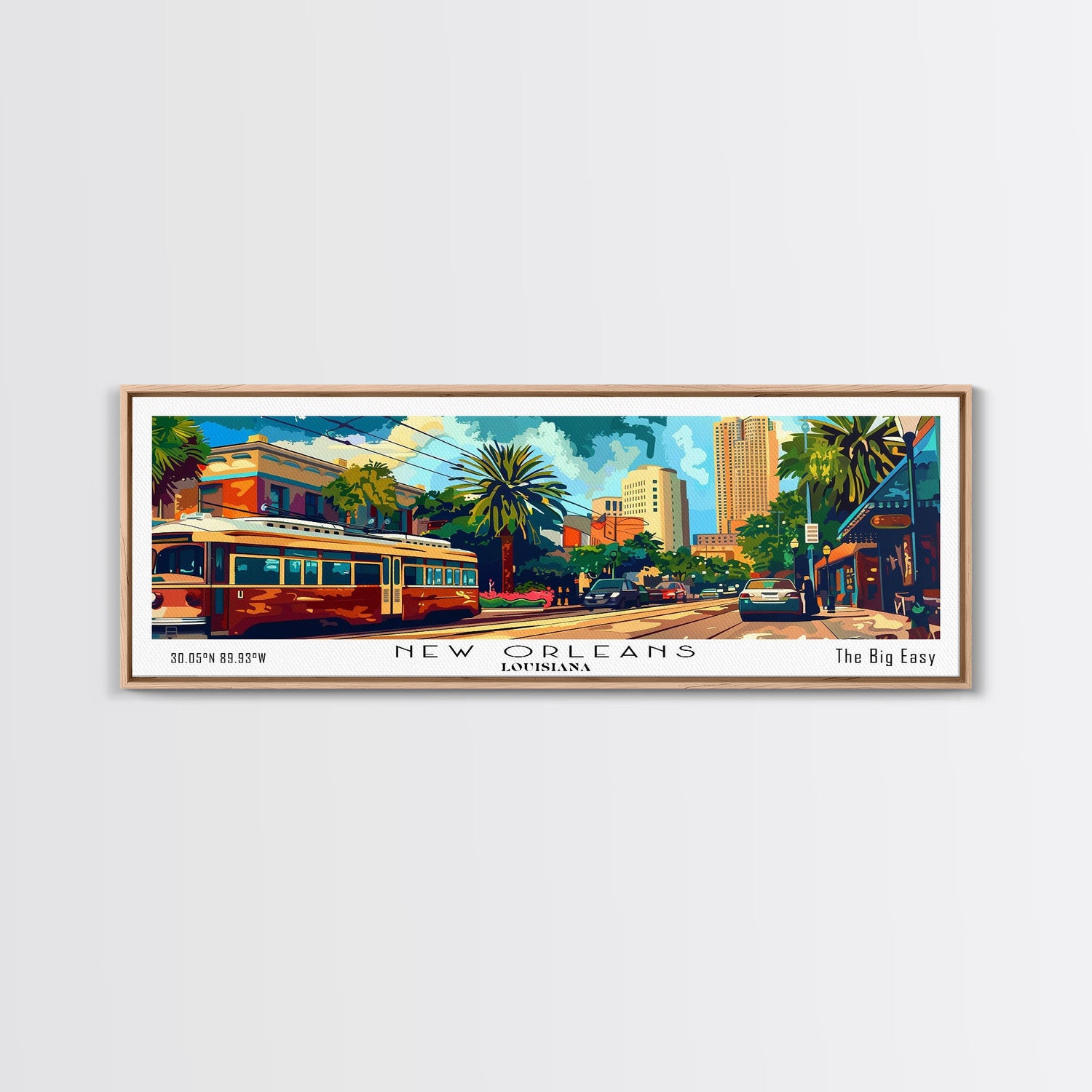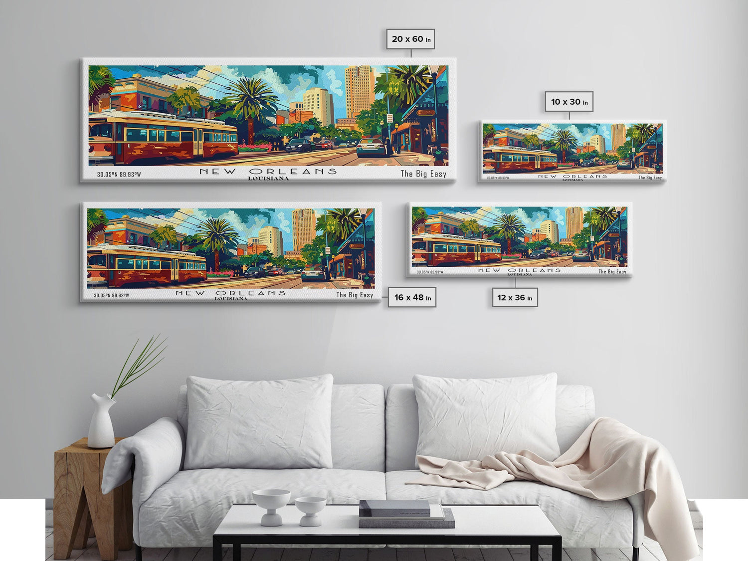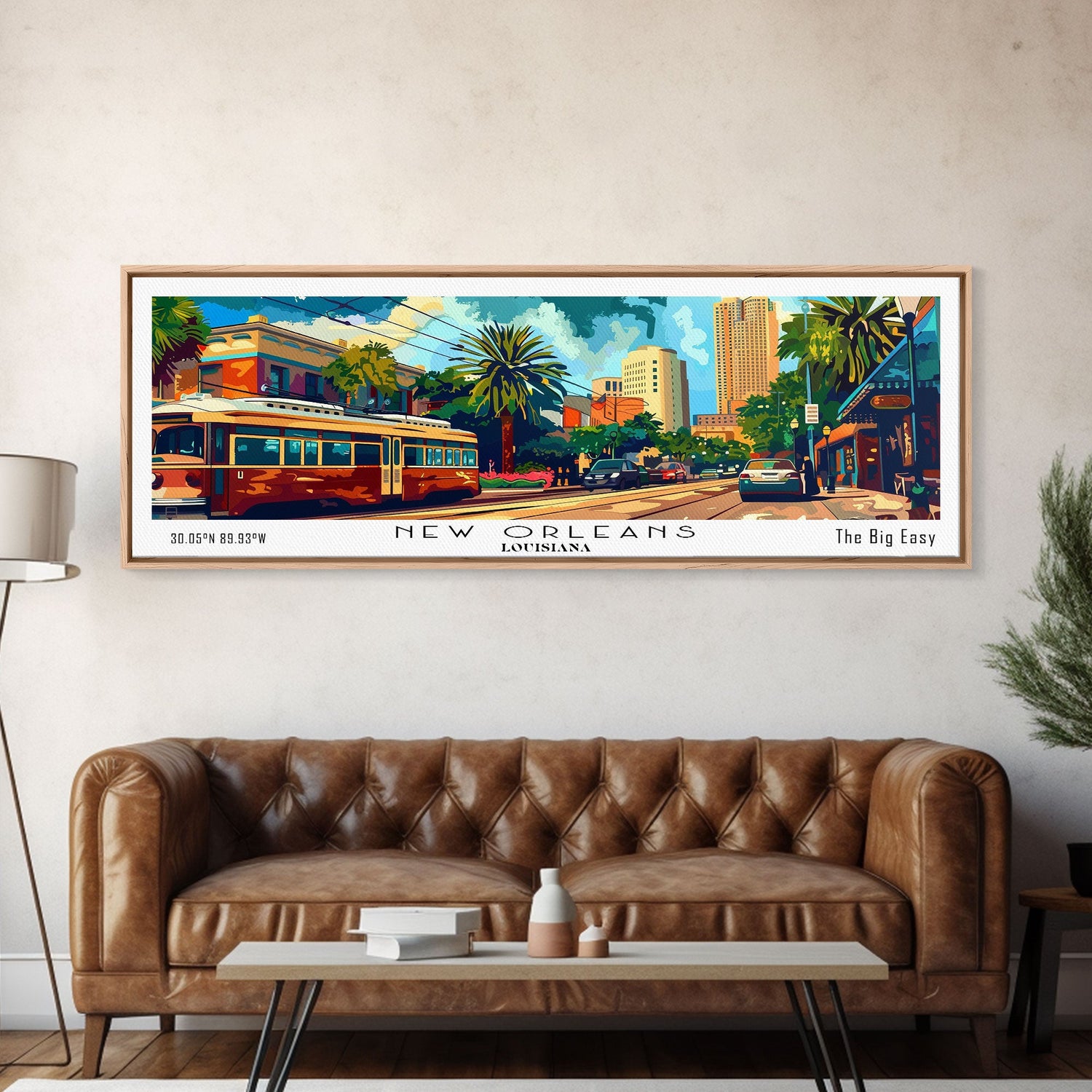 New Orleans Louisiana Panoramic Wall Art, Mid Century Modern Framed Canvas Print, Retro Pop Art Travel Poster, Home Decor