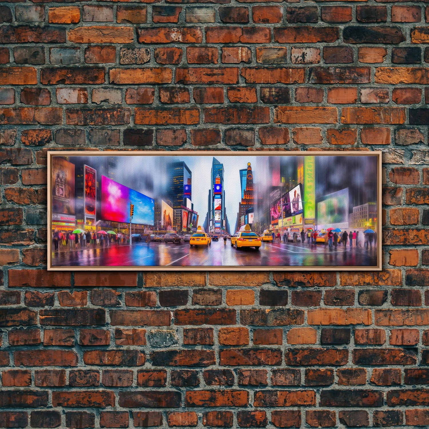 New York City Canvas Print, Large Urban Art Print, Colorful Umbrellas, Yellow Taxis, Vibrant Art, Panoramic, Wall Art, Canvas Print