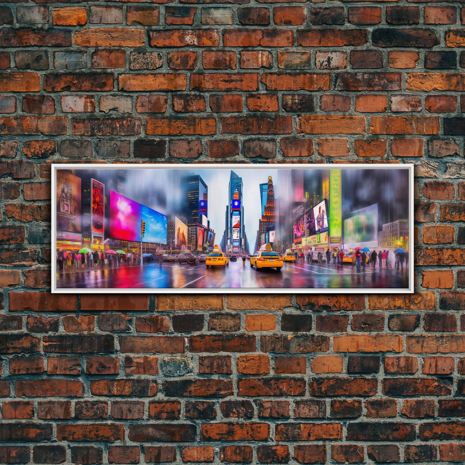 New York City Canvas Print, Large Urban Art Print, Colorful Umbrellas, Yellow Taxis, Vibrant Art, Panoramic, Wall Art, Canvas Print - 10x30 Inches / No Frame - Stretched Canvas Only is backordered and will ship as soon as it is back in stock.