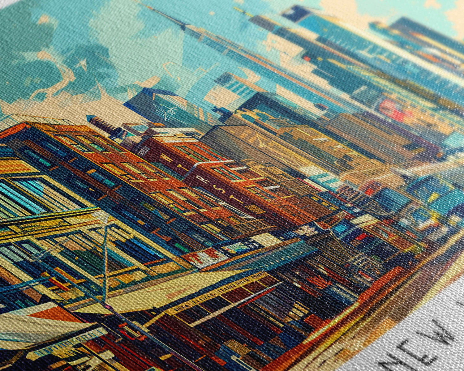 New York New York Panoramic Framed Canvas Print, Retro Style Wall Art, Mid Century Modern Home Decor, Pop Art Travel Poster - 10x30 Inches / No Frame - Stretched Canvas Only is backordered and will ship as soon as it is back in stock.