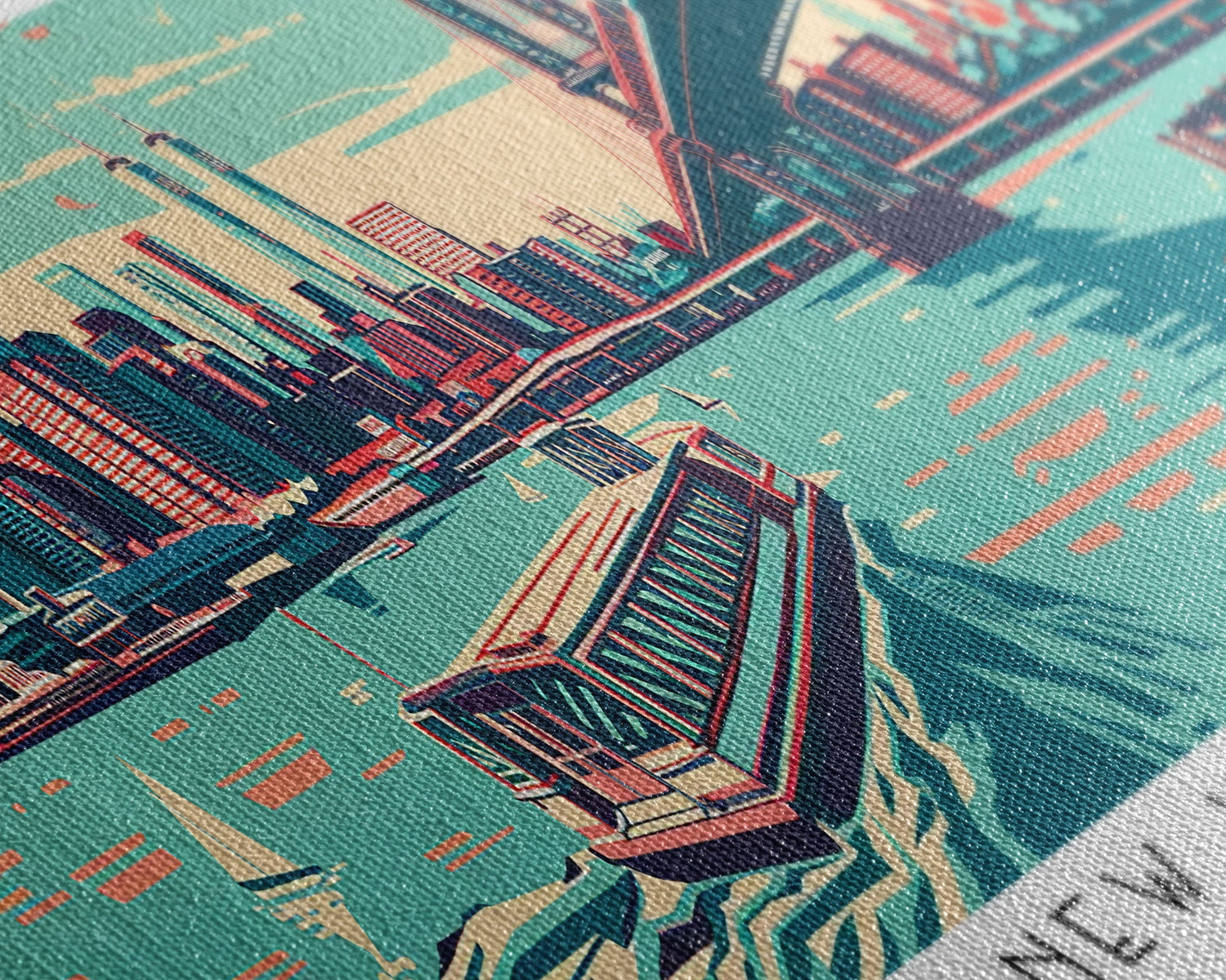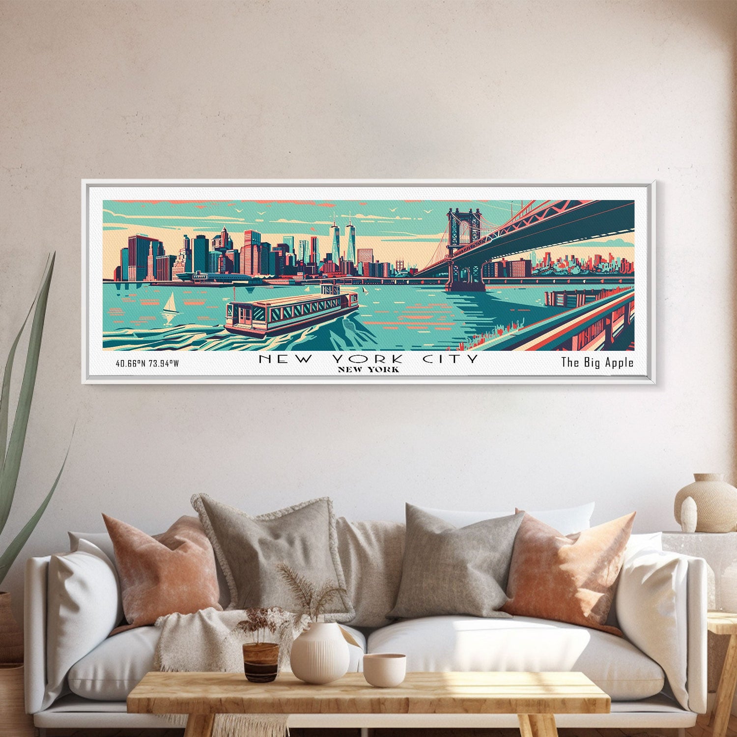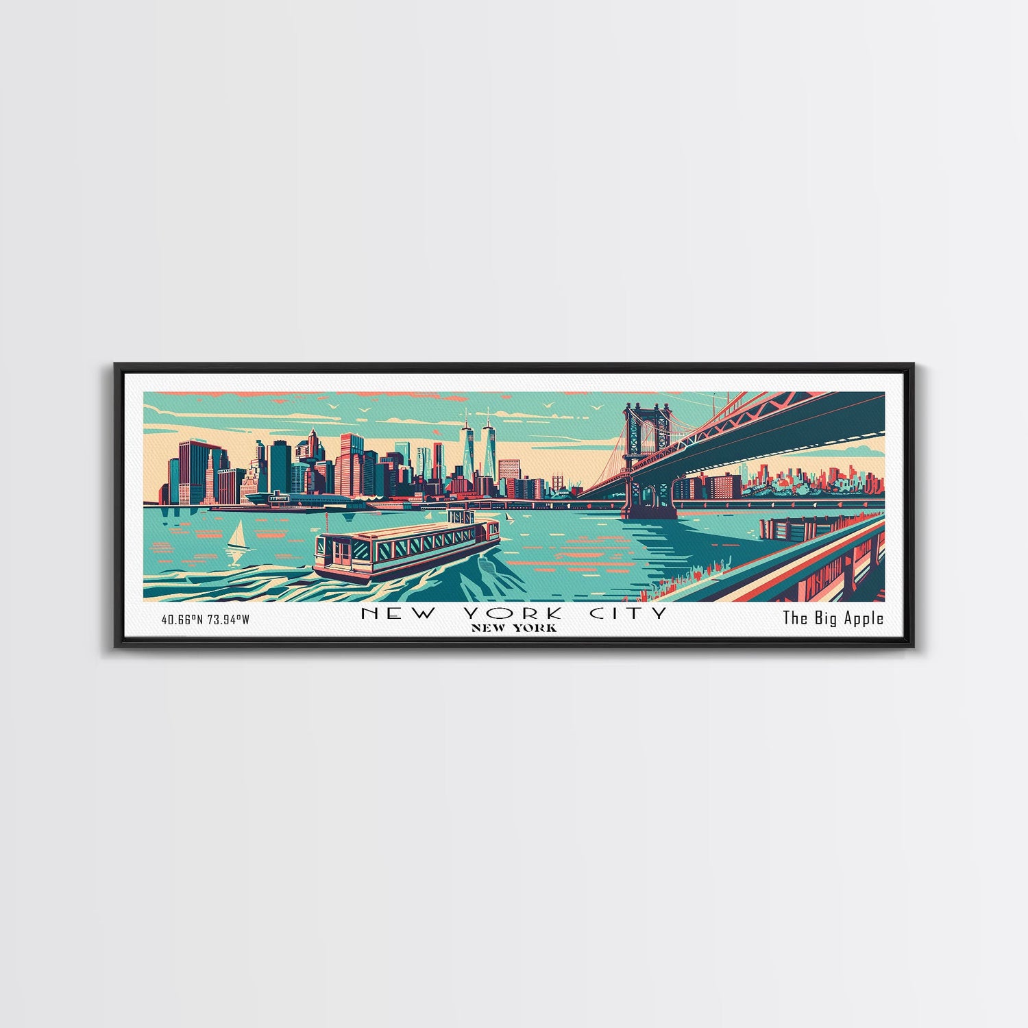 New York New York Panoramic Wall Art Framed Canvas Print, Travel Poster, Mid Century Modern Art, Pop Art Style, Wall Decor, Office Wall Art