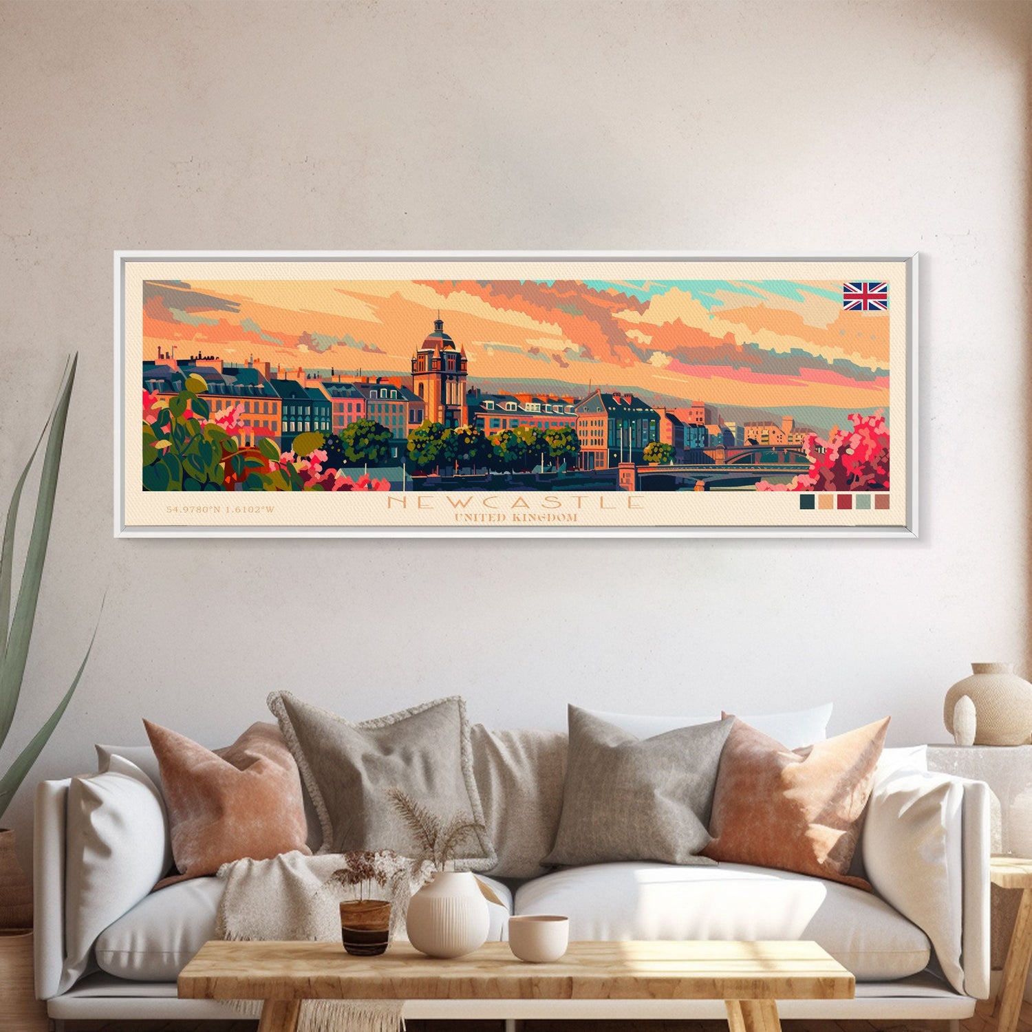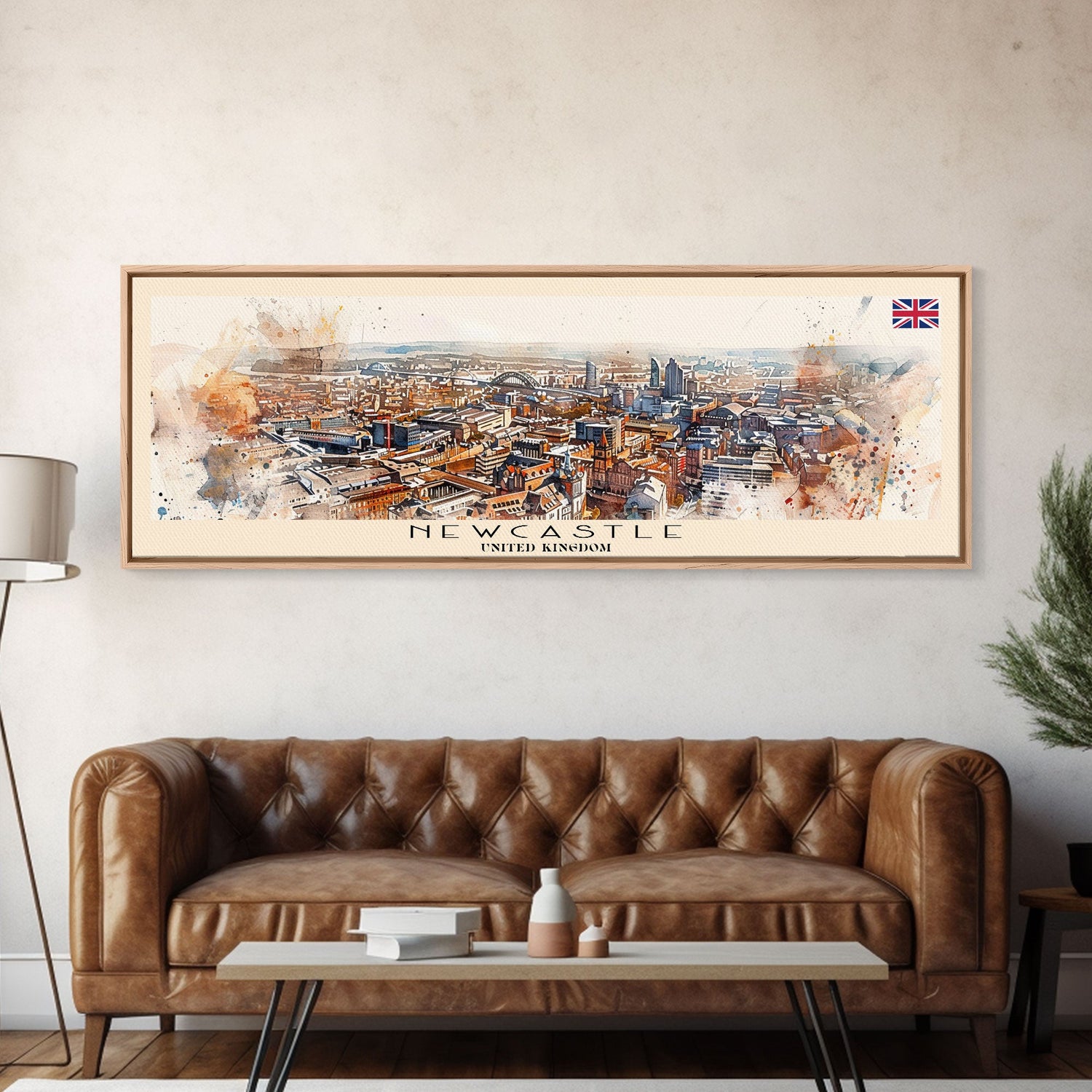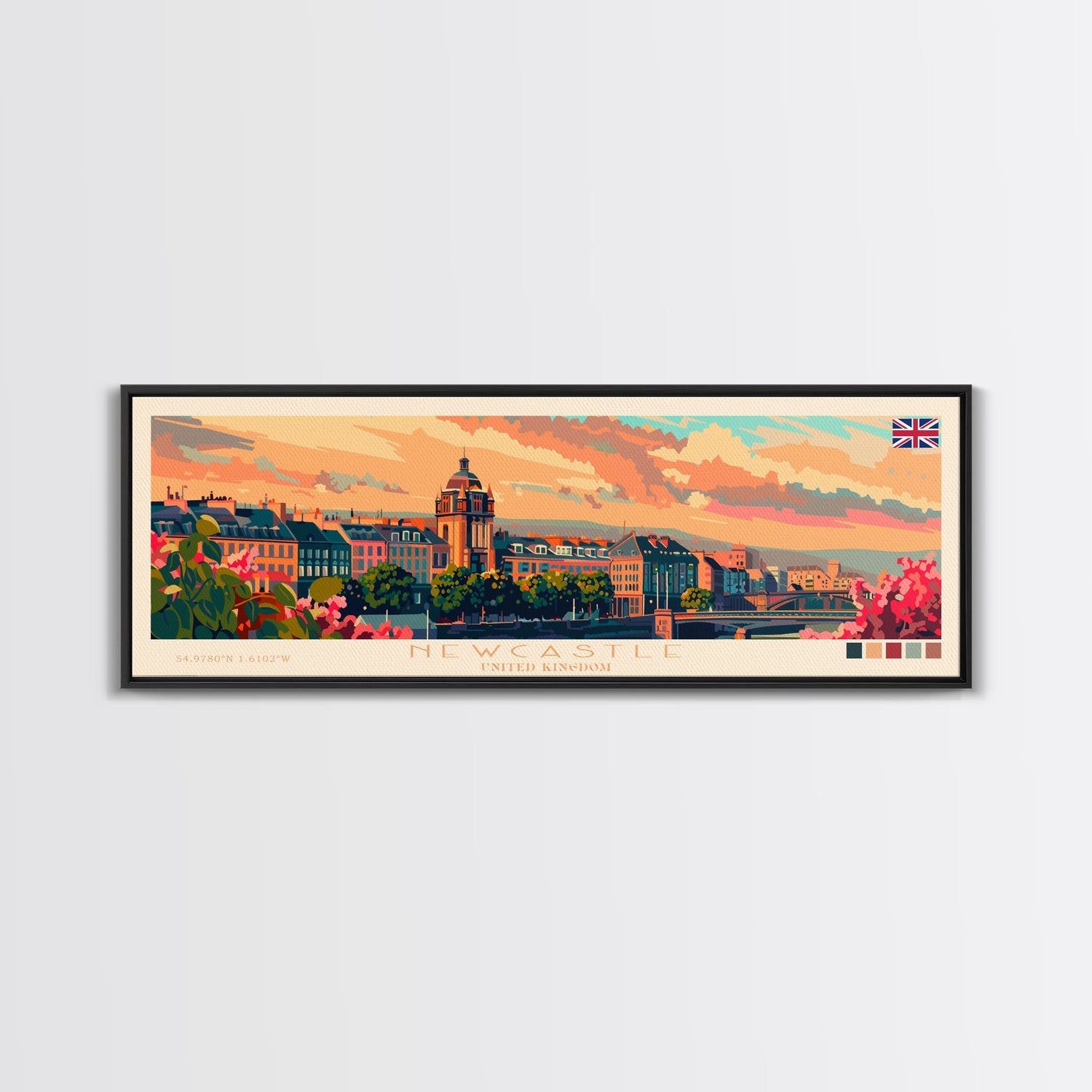 Newcastle United Kingdom Wall Art, Panoramic Travel Poster, Panoramic Framed Canvas Print, City Wall Art, Wall Hanging Home Decor, Travel Art