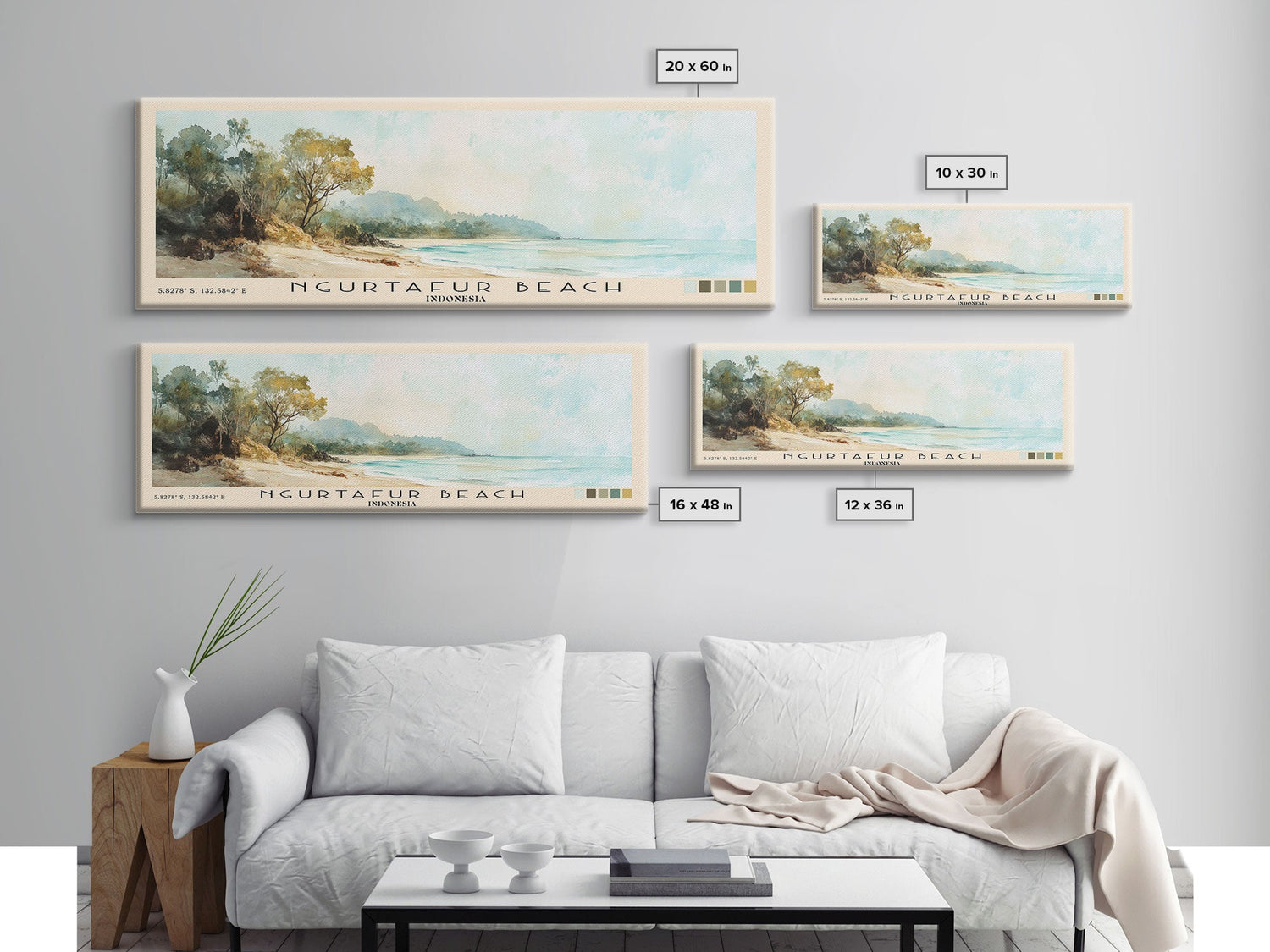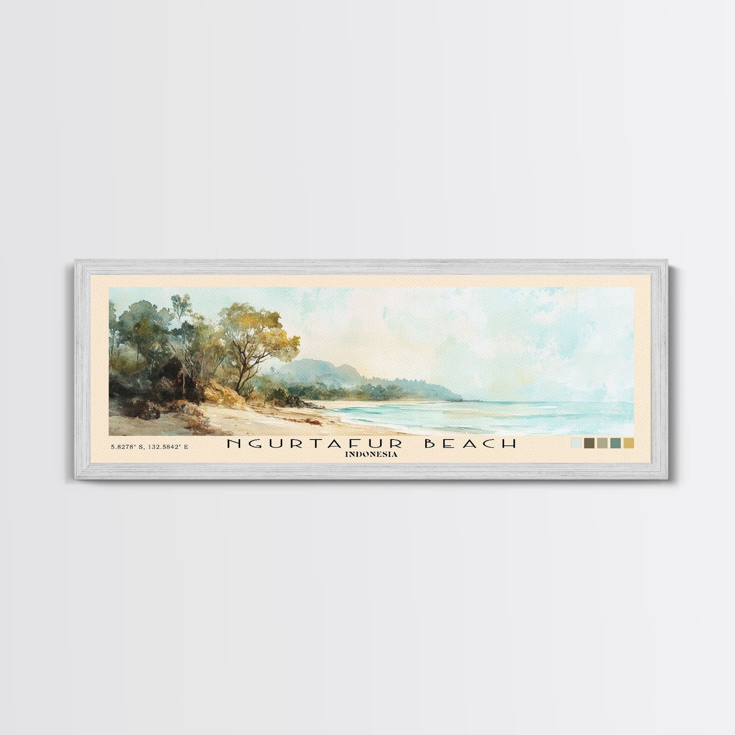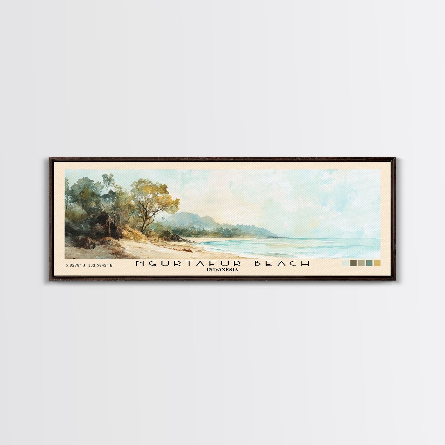 Ngurtafur Beach, Indonesia Watercolor Beach Print, Vacation Gift, Indonesia Wall Art, Framed Canvas Print, Framed Beach Painting - 10x30 Inches / No Frame - Stretched Canvas Only is backordered and will ship as soon as it is back in stock.