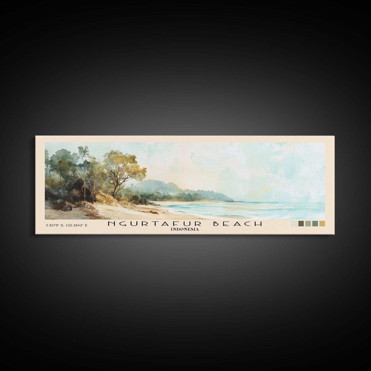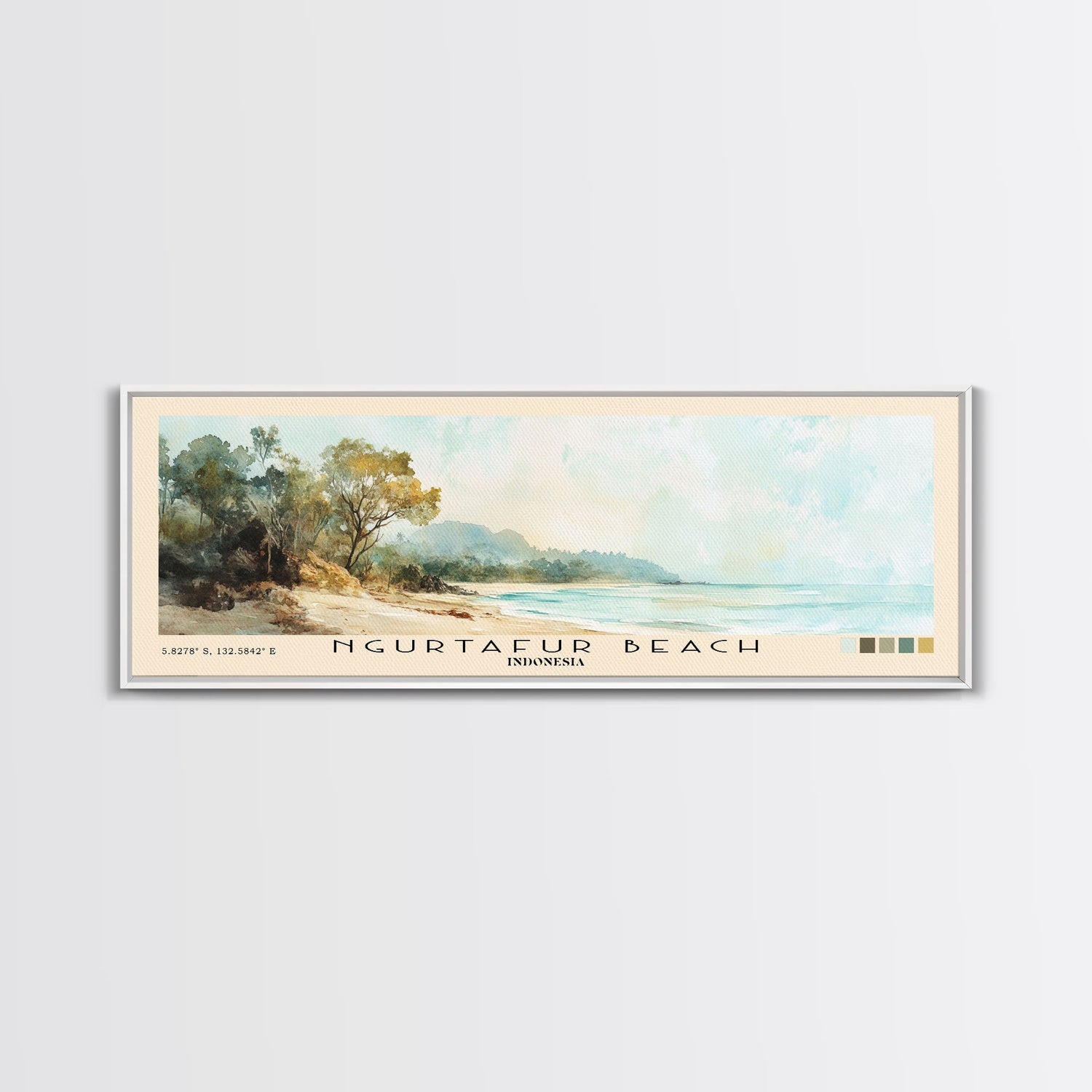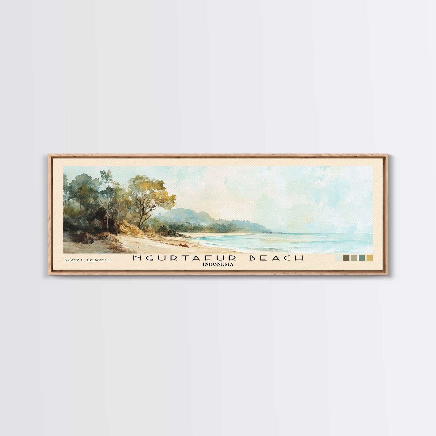 Ngurtafur Beach, Indonesia Watercolor Beach Print, Vacation Gift, Indonesia Wall Art, Framed Canvas Print, Framed Beach Painting - 10x30 Inches / No Frame - Stretched Canvas Only is backordered and will ship as soon as it is back in stock.