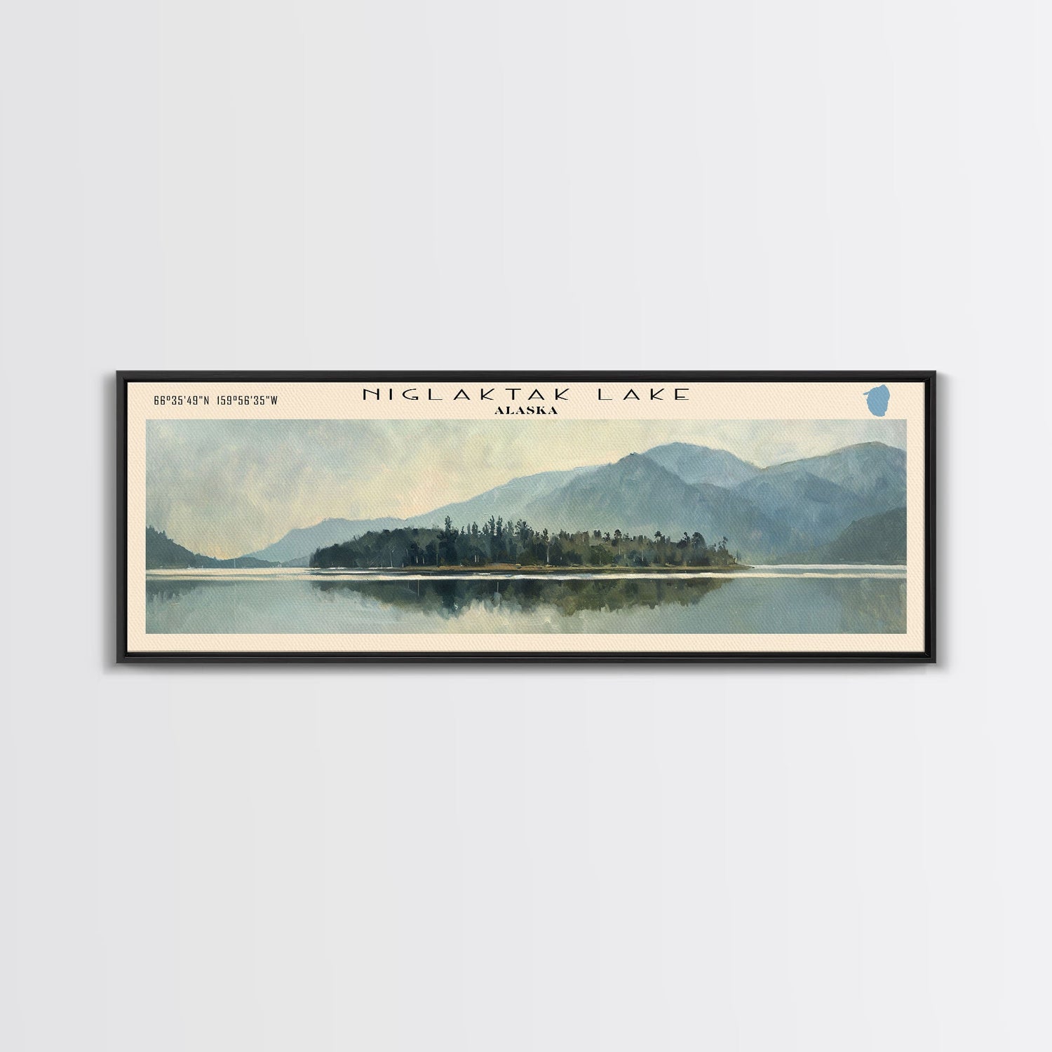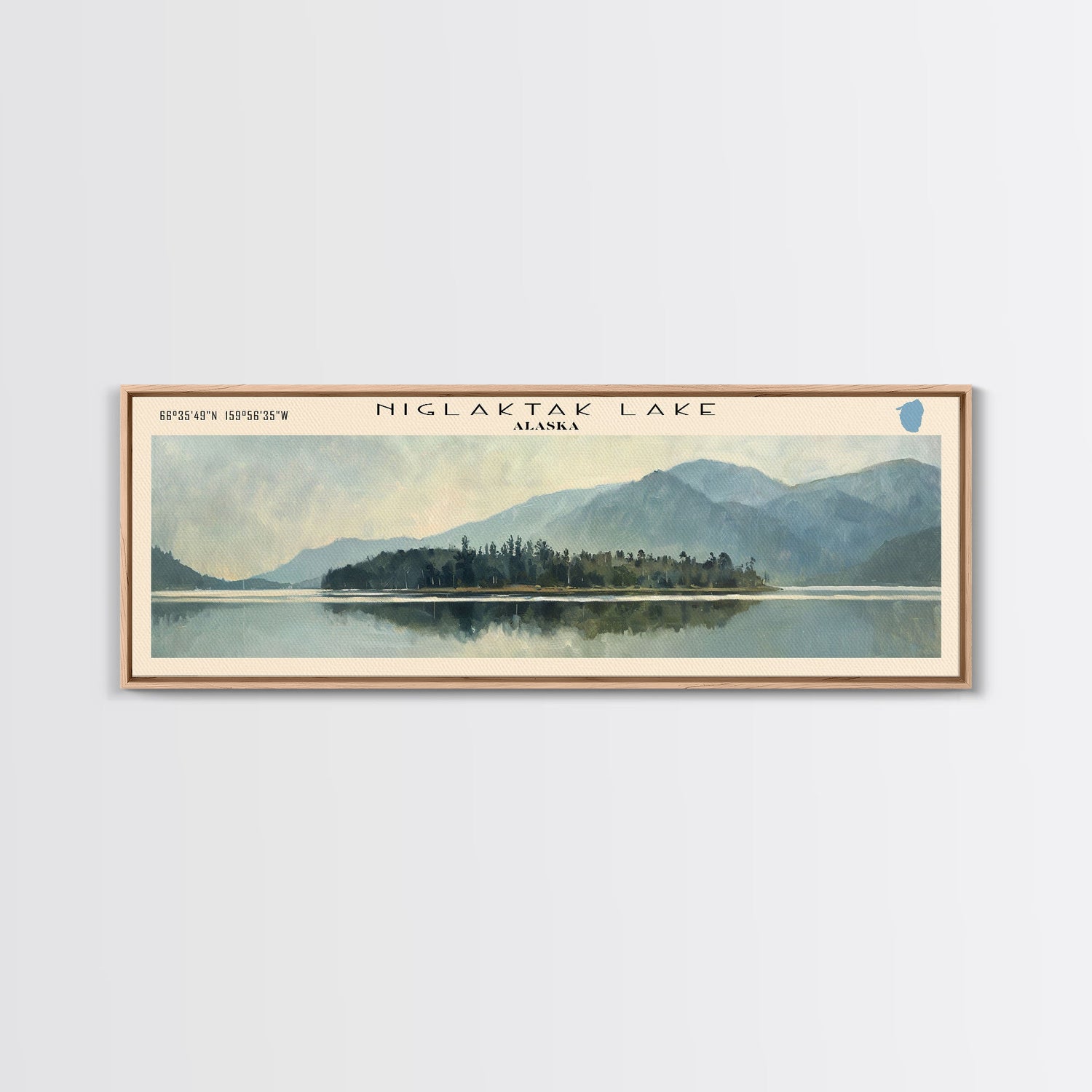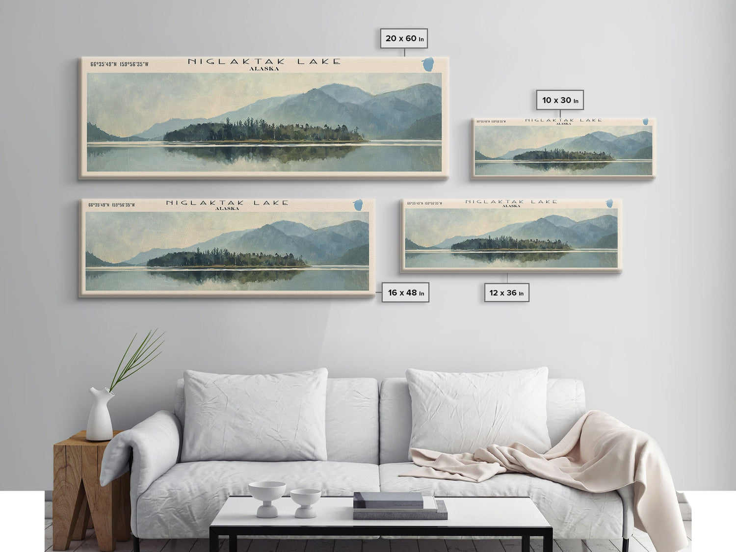 Niglaktak Lake Framed Canvas Print, Lake House Decor, Panoramic Wall Art, Travel Poster, Landscape Painting, Bedroom Decor