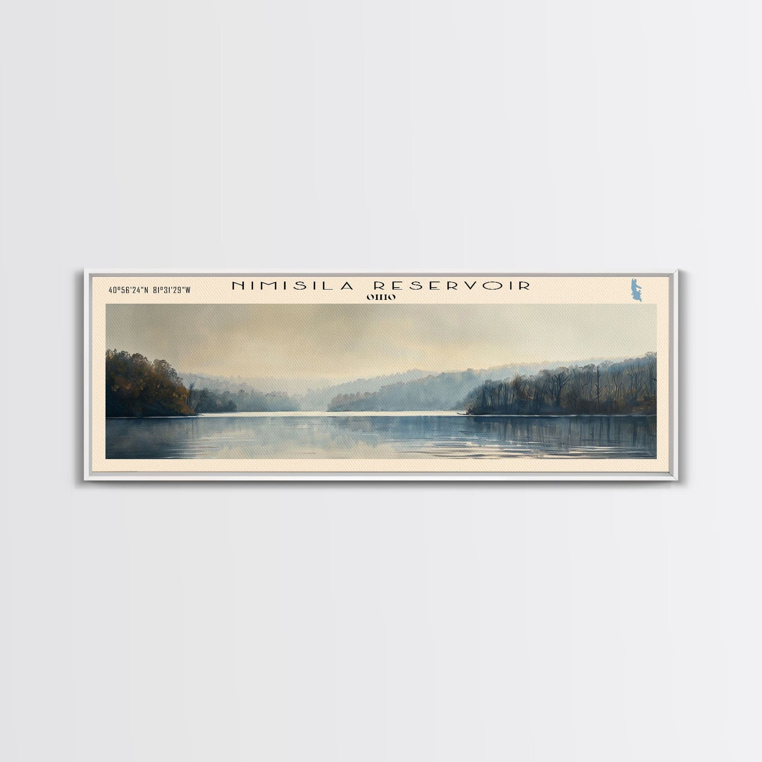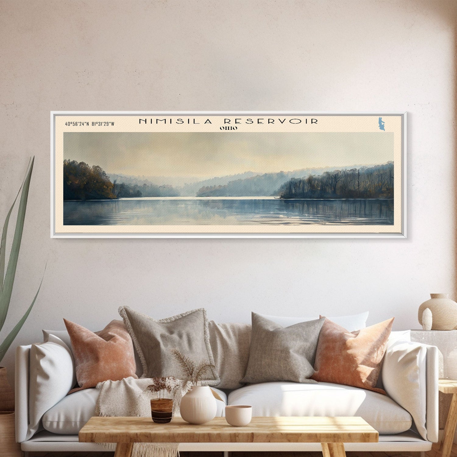 Nimisila Reservoir Ohio Framed Canvas Print, Lake House Decor, Panoramic Wall Art, Travel Poster, Beautiful Landscape Painting, Living Room Decor