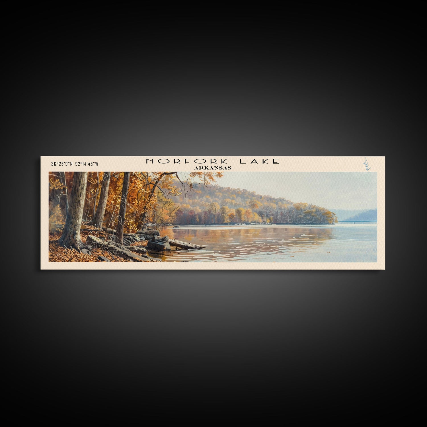 Norfork Lake Arkansas Framed Canvas Print, Lake House Decor, Panoramic Wall Art, Travel Poster, Landscape Painting, Bedroom Decor