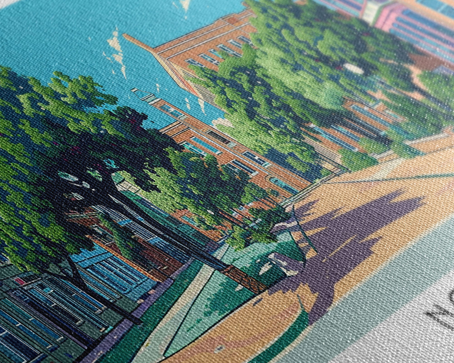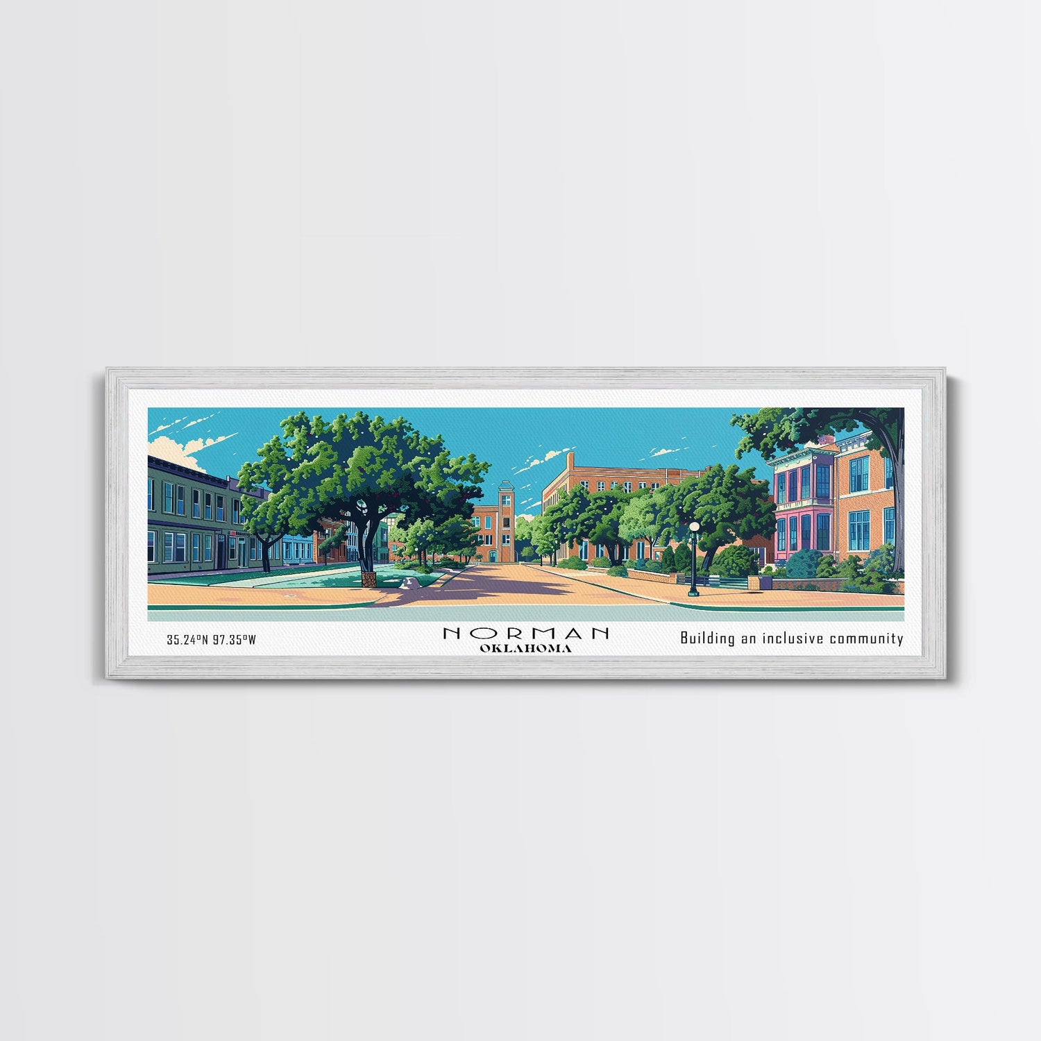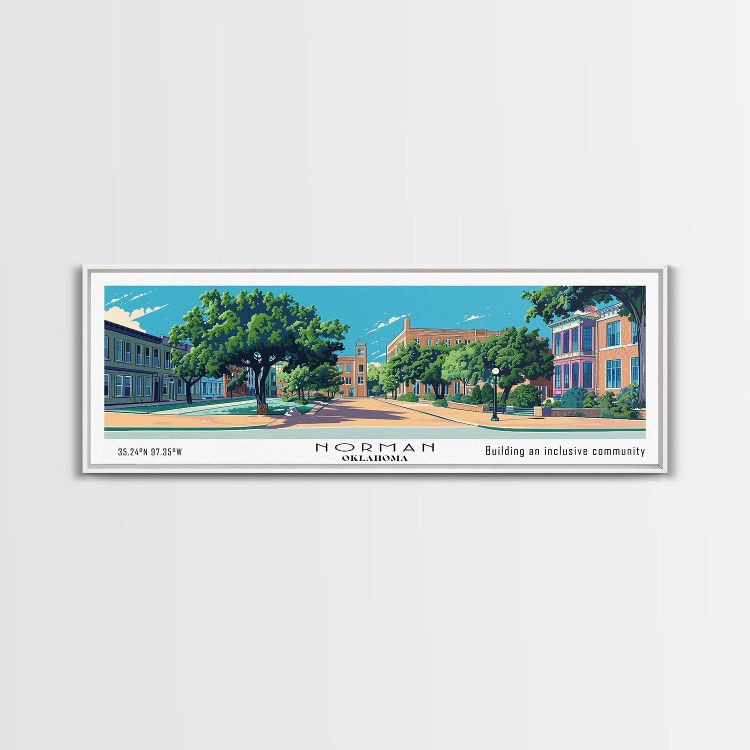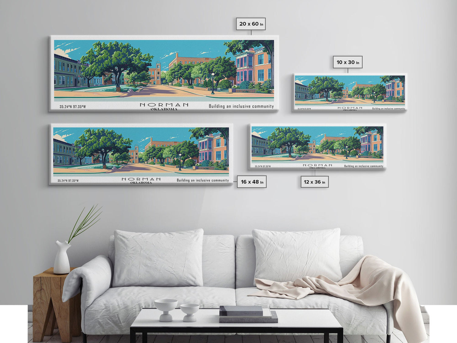 Norman Oklahoma Panoramic Wall Art, Mid Century Modern Framed Canvas Print, Retro Pop Art Travel Poster, City Art, Office Wall Decor, Living Room Art