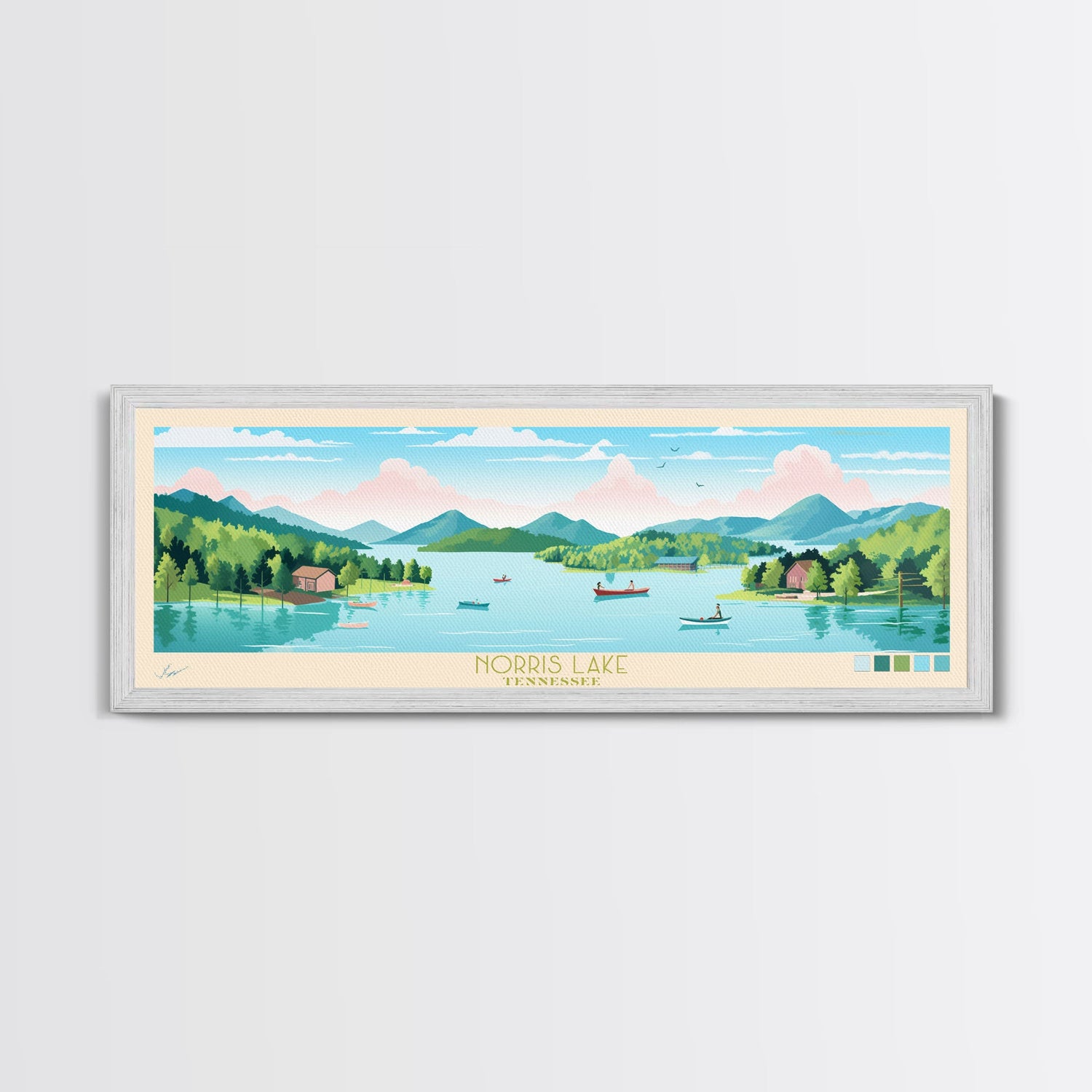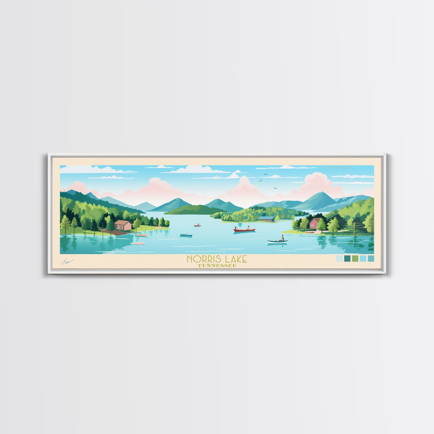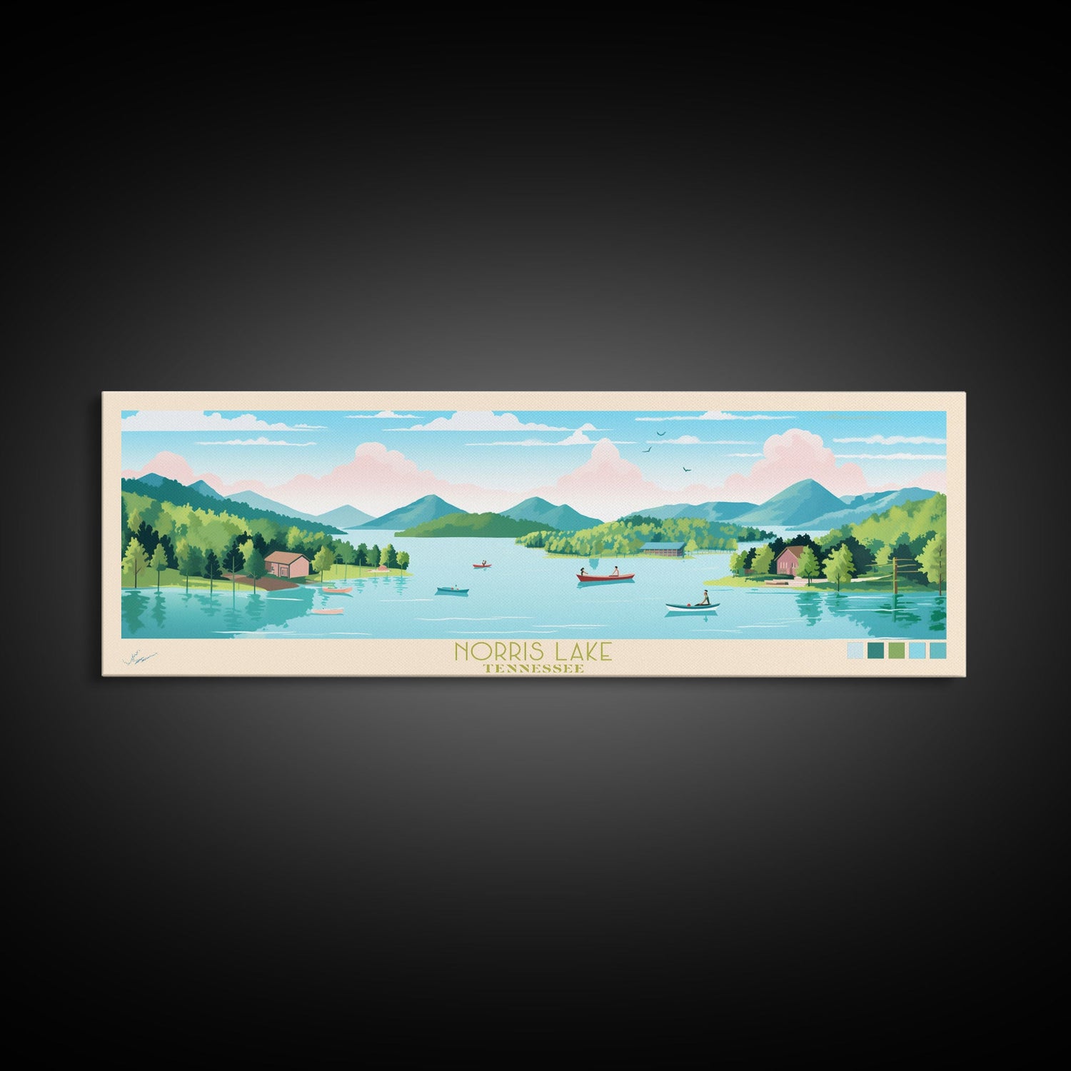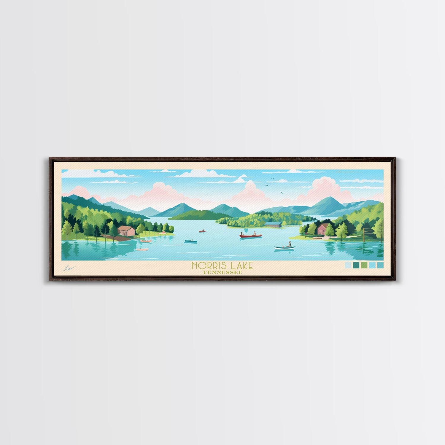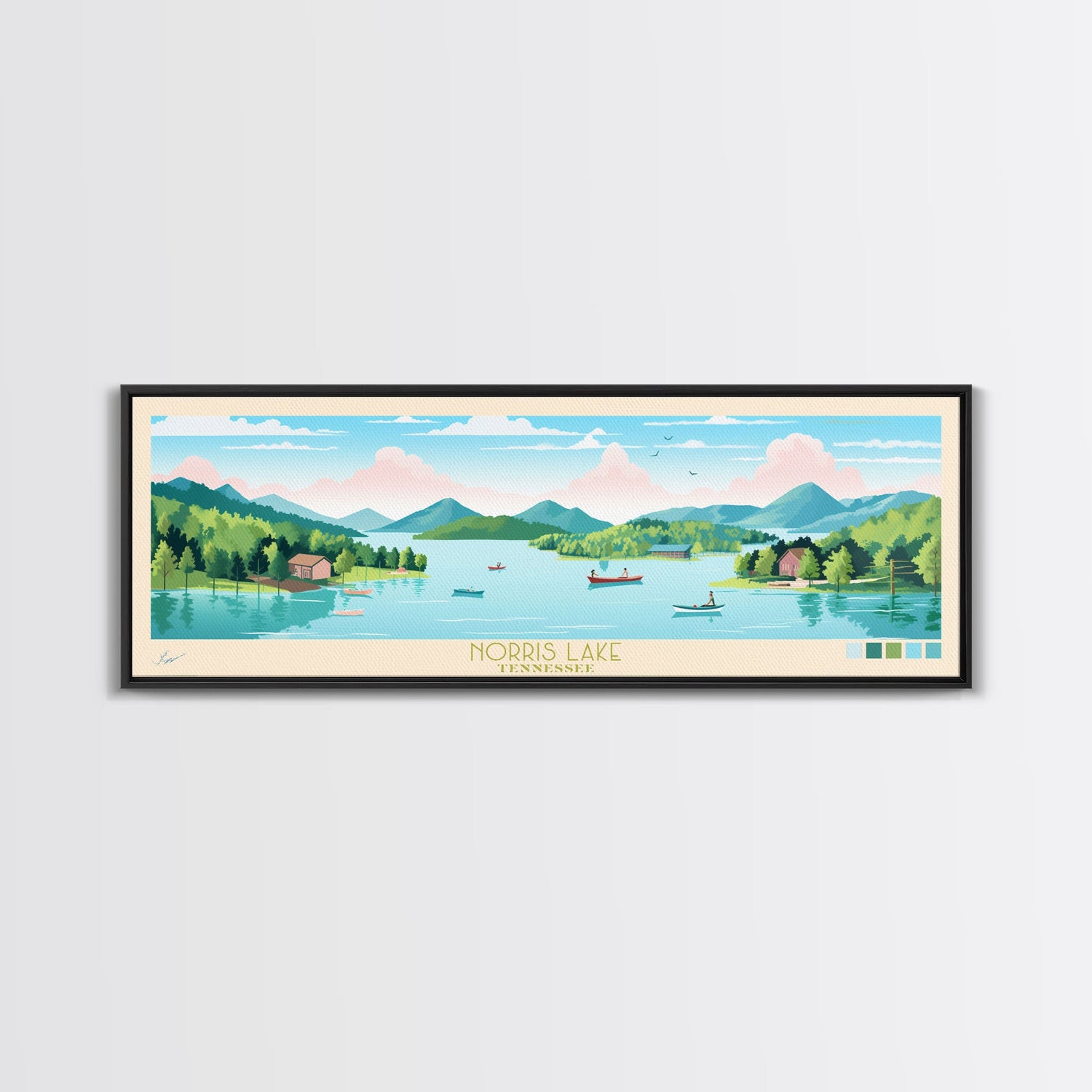 Norris Lake, Tennessee Framed Canvas Print, Panoramic Wall Art, Midcentury Modern, Pop Art, Home Decor, Travel Poster, Living Room Art