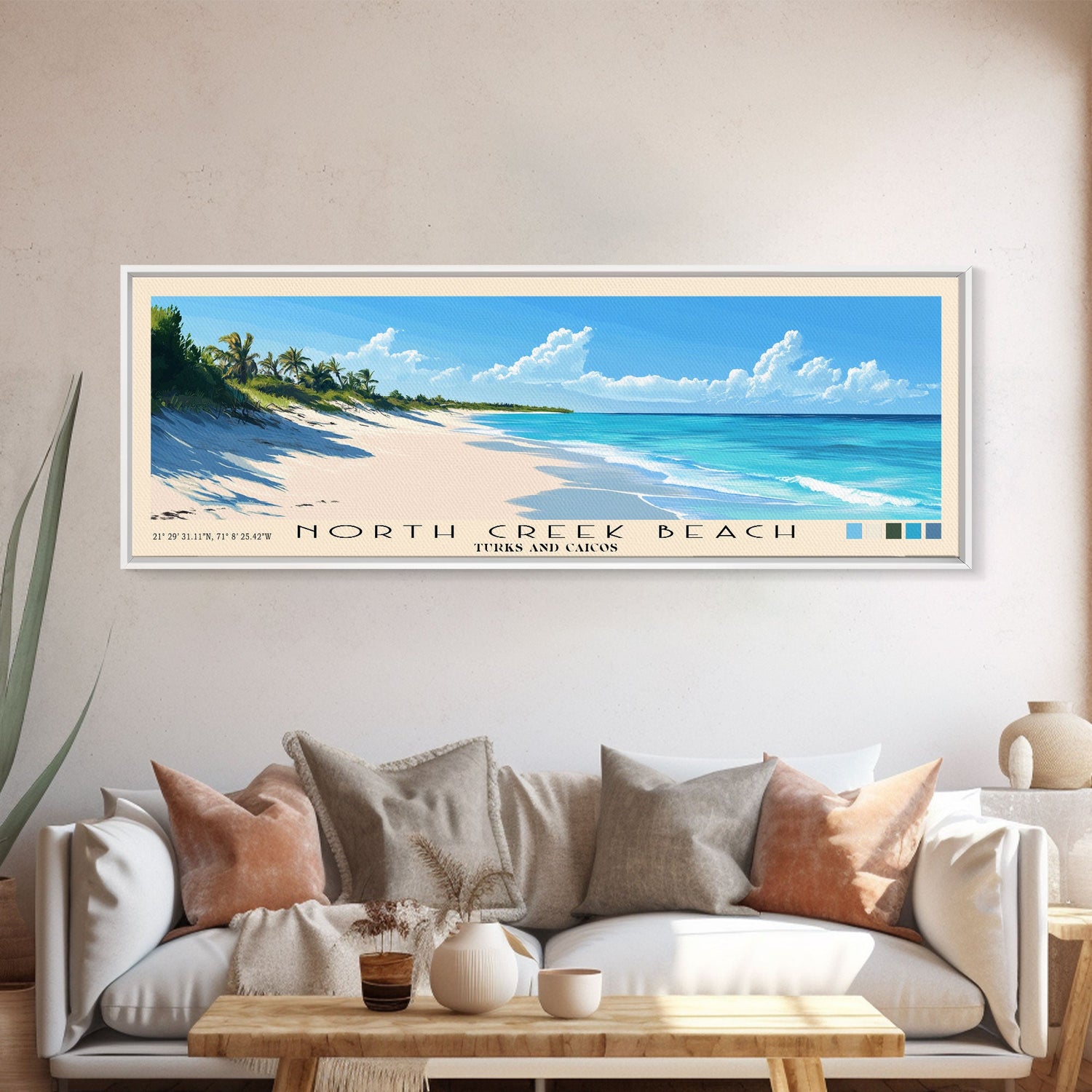 North Creek Beach, Turks and Caicos Panoramic Beach Print, Vacation Gift, Turks and Caicos Wall Art, Framed Canvas Print, Framed Beach Painting