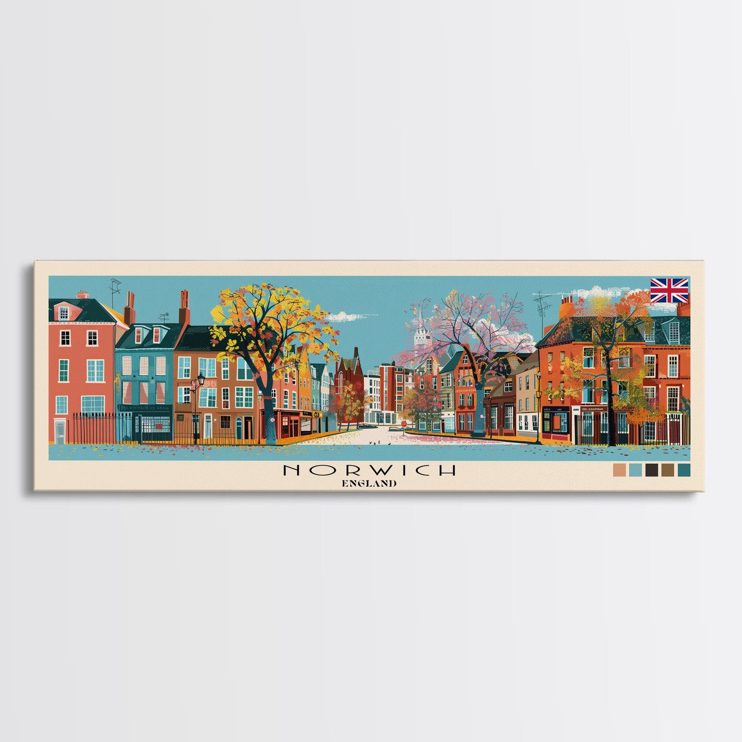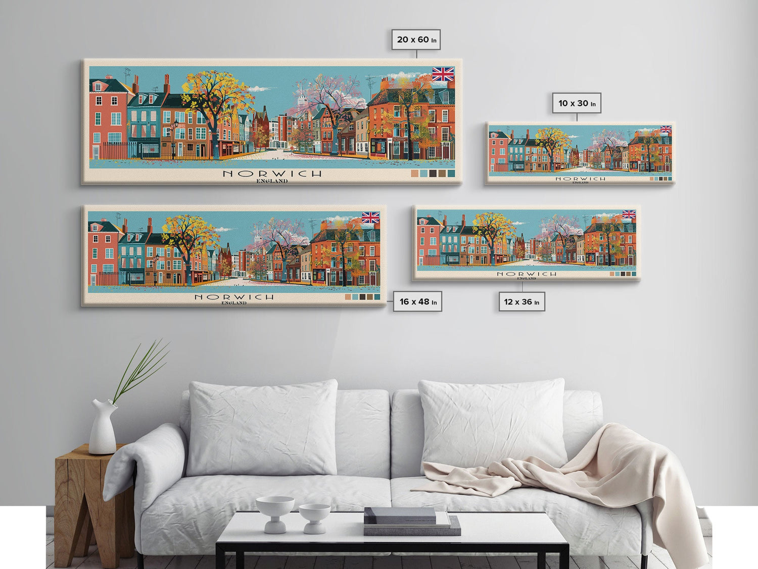 Norwich, England Panoramic Canvas Print, Norwich, England Painting, England Art, Norwich Travel Poster, Travel Art, Vacation Gift - 10x30 Inches / No Frame - Stretched Canvas Only is backordered and will ship as soon as it is back in stock.