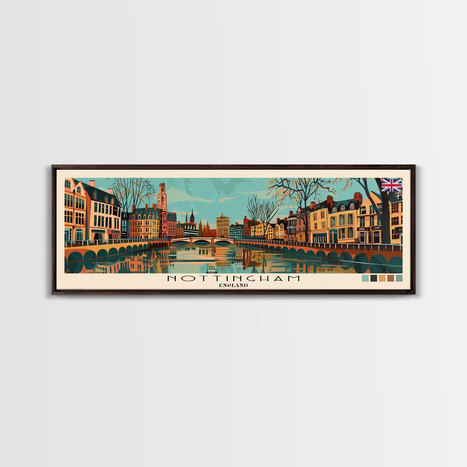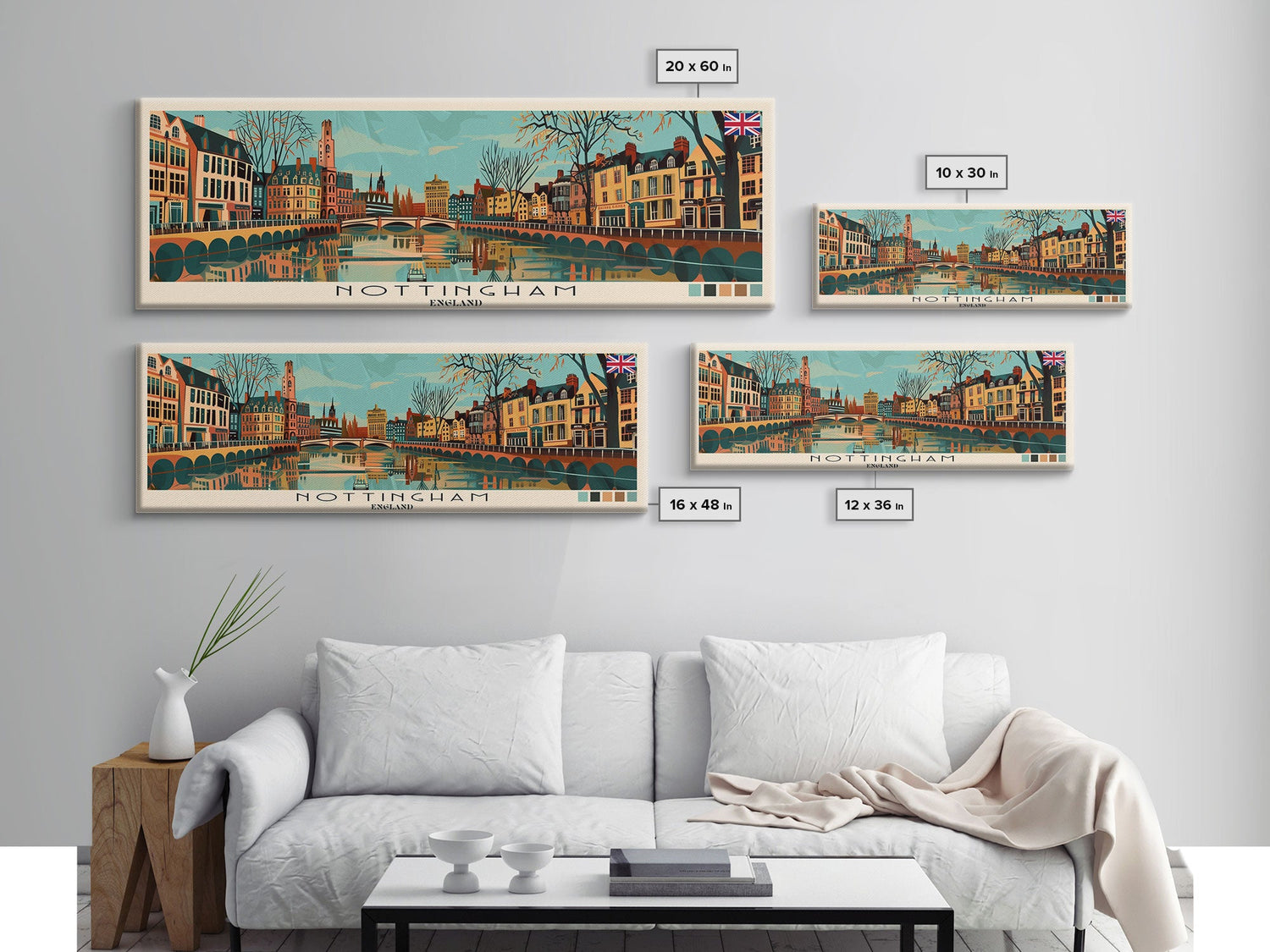 Nottingham, England Panoramic Canvas Print, Nottingham, England Painting, England Art, Nottingham Travel Poster, Travel Art, Living Room Painting - 10x30 Inches / No Frame - Stretched Canvas Only is backordered and will ship as soon as it is back in stock.