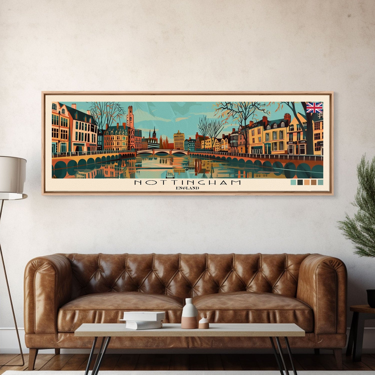 Nottingham, England Panoramic Canvas Print, Nottingham, England Painting, England Art, Nottingham Travel Poster, Travel Art, Living Room Painting