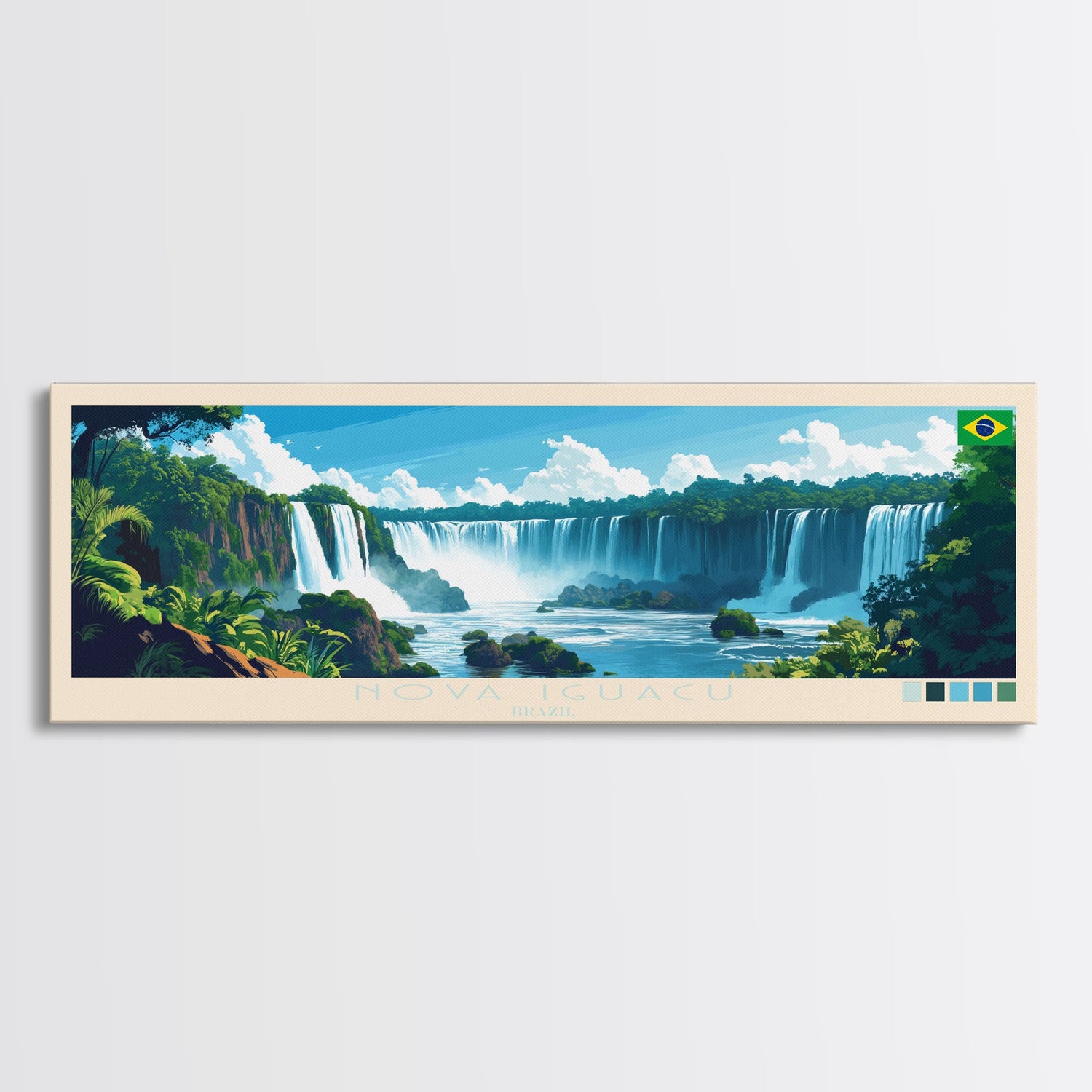 Nova Iguacu, Brazil Panoramic Travel Poster Canvas Print, Nova Iguacu, Brazil Painting, Brazil Art, Nova Iguacu Travel Art, Guest Room Painting