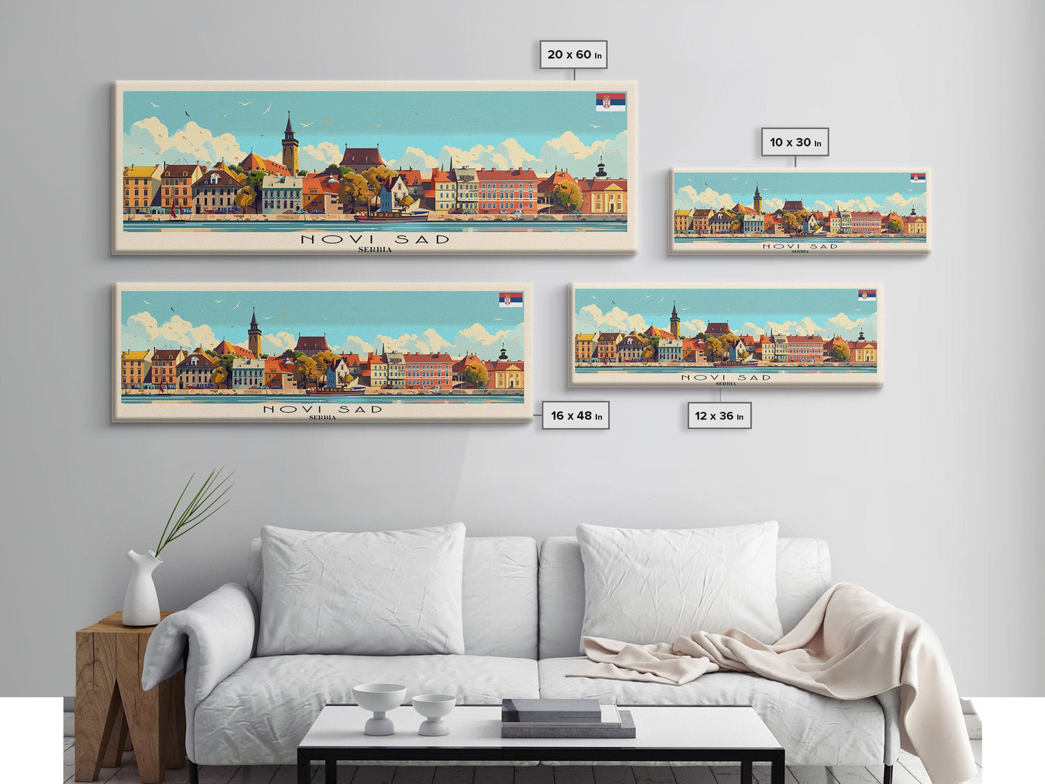 Novi Sad Serbia Travel Art, City Art, Framed Canvas Print or Metal Wall Art, Europe Travel Poster, Panoramic Wall Art, Extra Wide Wall Art - 10x30 Inches / No Frame - Stretched Canvas Only is backordered and will ship as soon as it is back in stock.