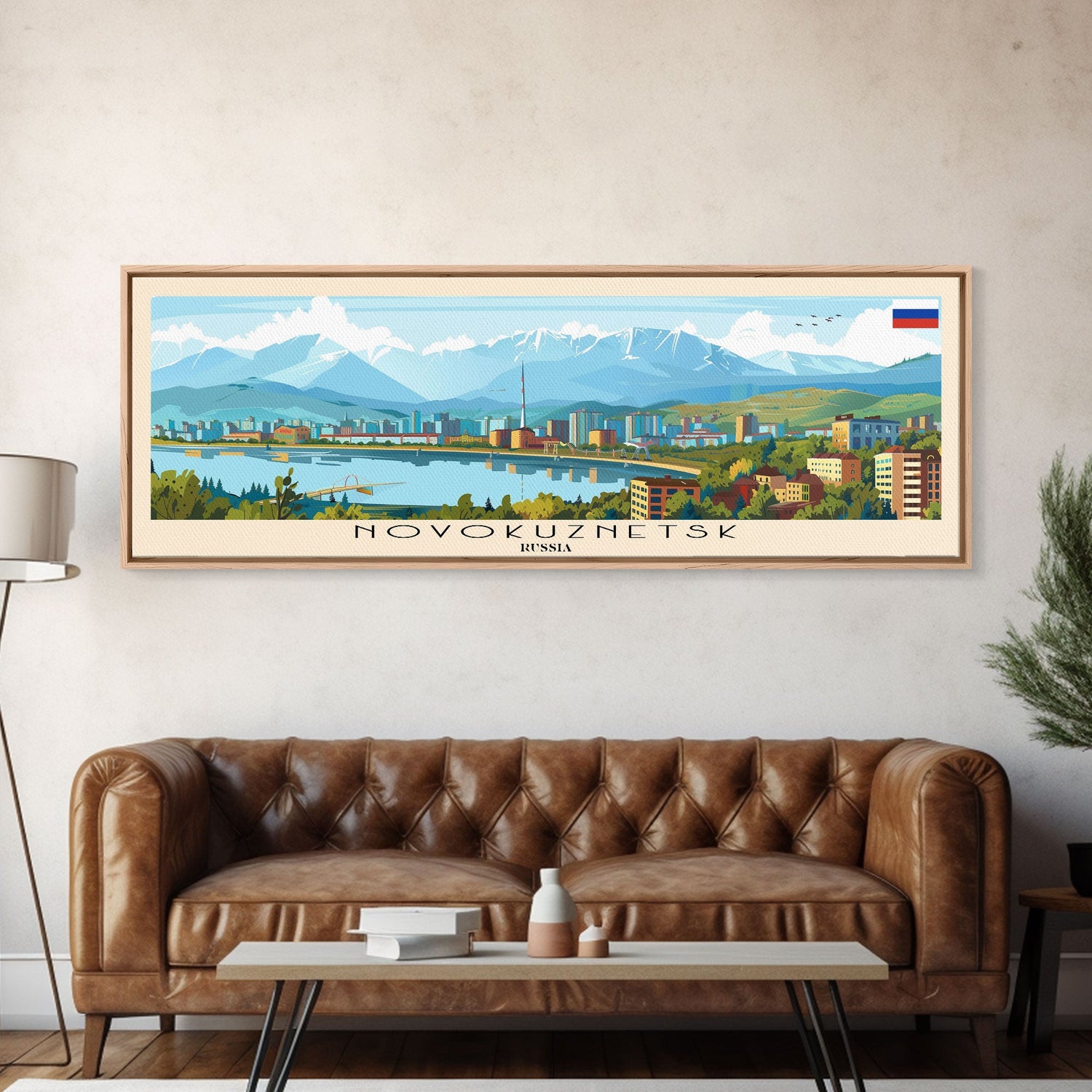 Novokuznetsk Russia Panoramic Travel Poster, Framed Canvas Print or Metal Wall Art, Travel Art, Home Decor, Panoramic Painting, Midcentury Art