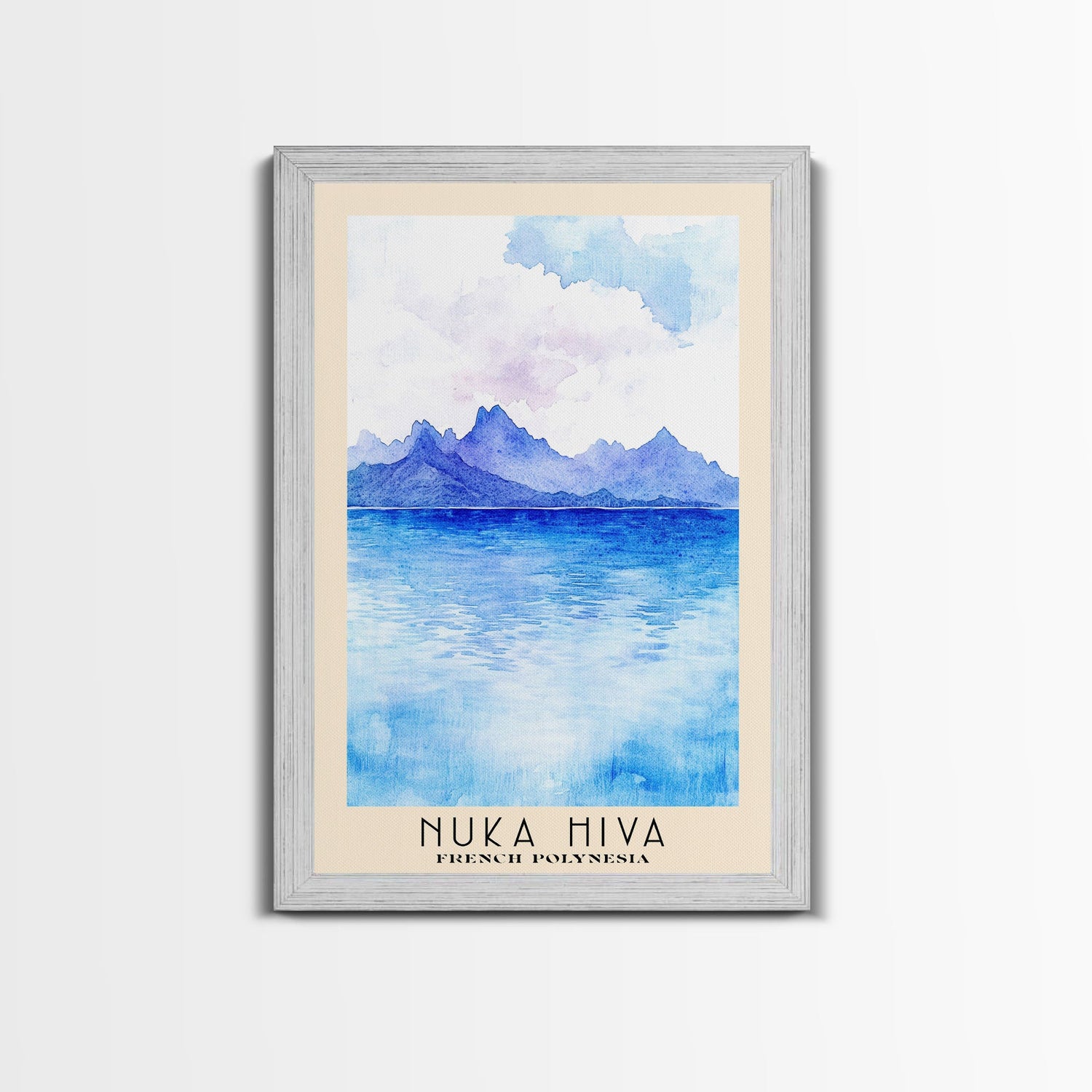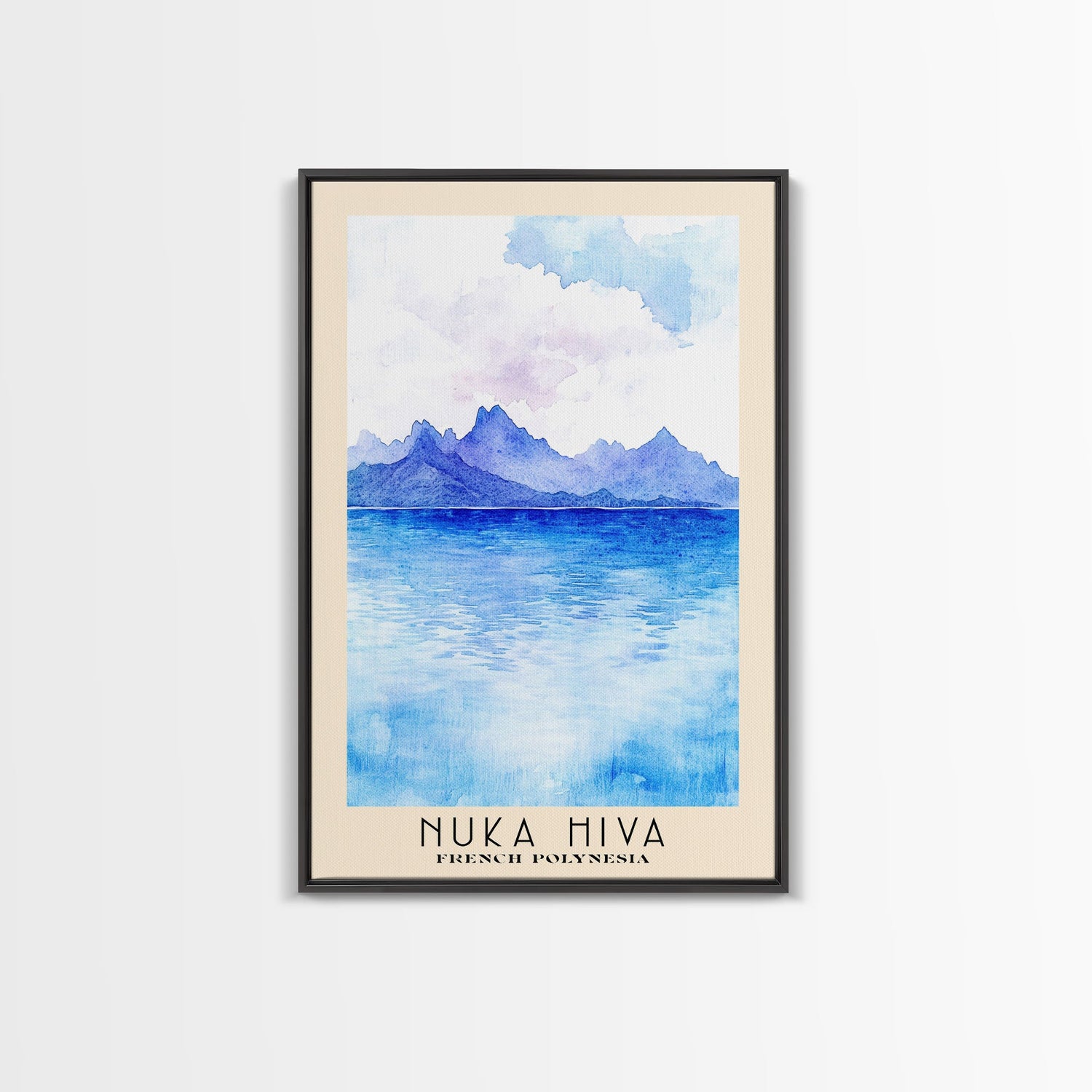 Nuka Hiva, French Polynesia Watercolor Beach Print, Vacation Gift, French Polynesia Wall Art, Framed Canvas Print, Framed Beach Painting