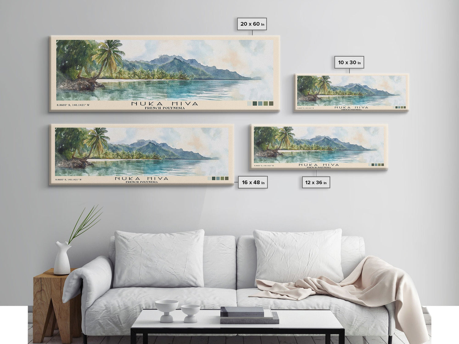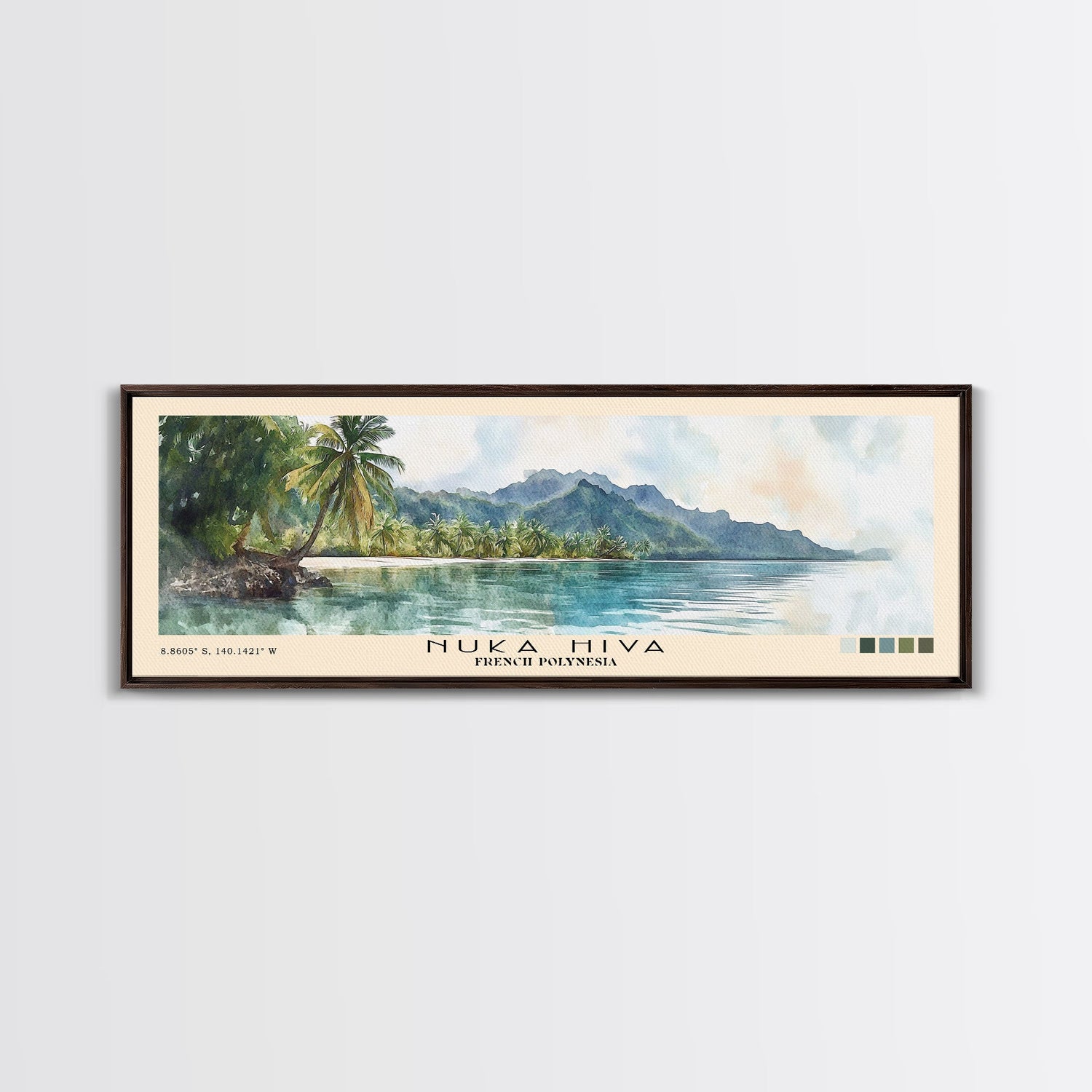 Nuka Hiva, French Polynesia Watercolor Beach Print, Vacation Gift, French Polynesia Wall Art, Framed Canvas Print, Framed Beach Painting - 10x30 Inches / No Frame - Stretched Canvas Only is backordered and will ship as soon as it is back in stock.