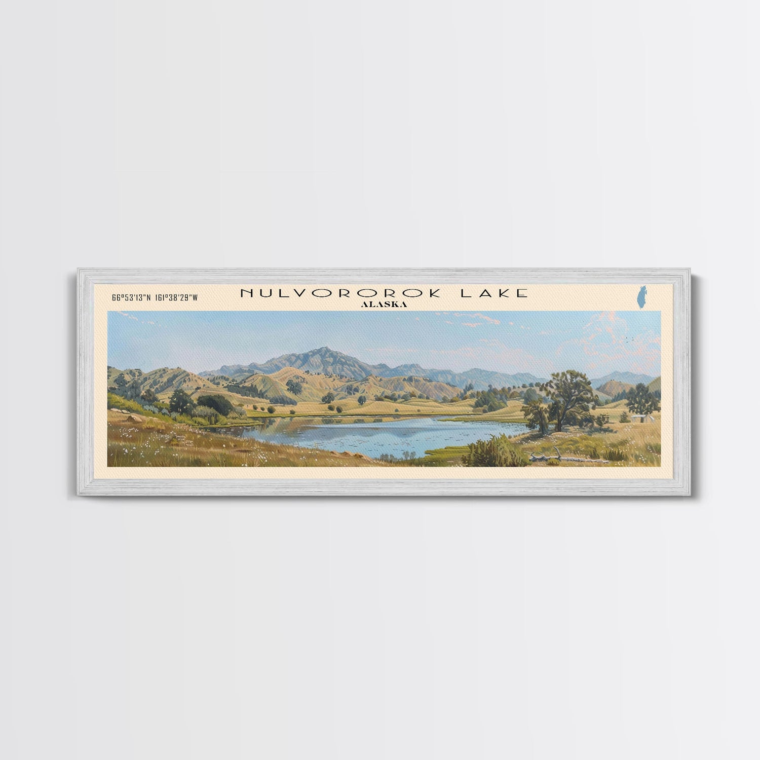 Nulvororok Lake Framed Canvas Print, Lake House Decor, Panoramic Wall Art, Travel Poster, Landscape Painting, Modern Art