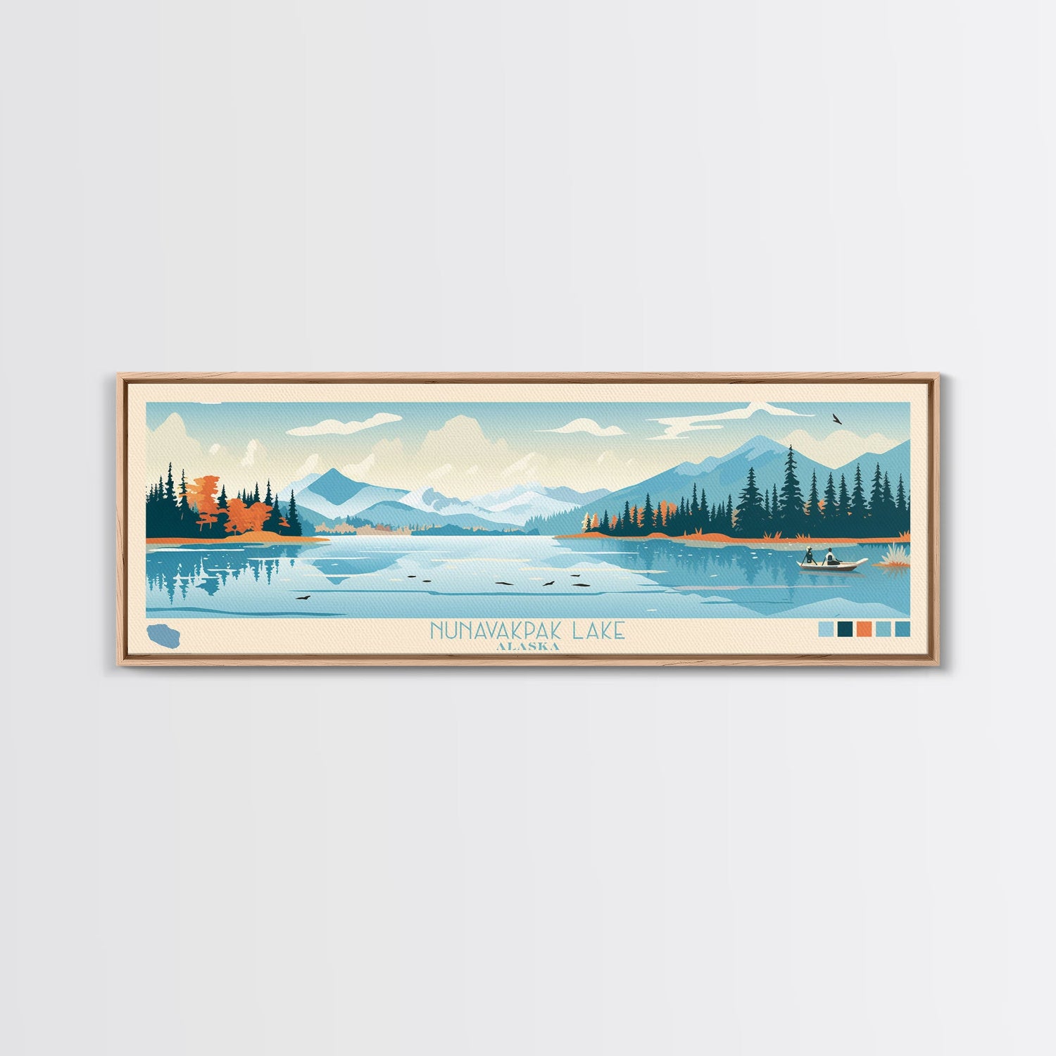 Nunavakpak Lake, Alaska Framed Canvas Print, Panoramic Wall Art, Midcentury Modern, Pop Art, Home Decor, Travel Poster, Bedroom Art