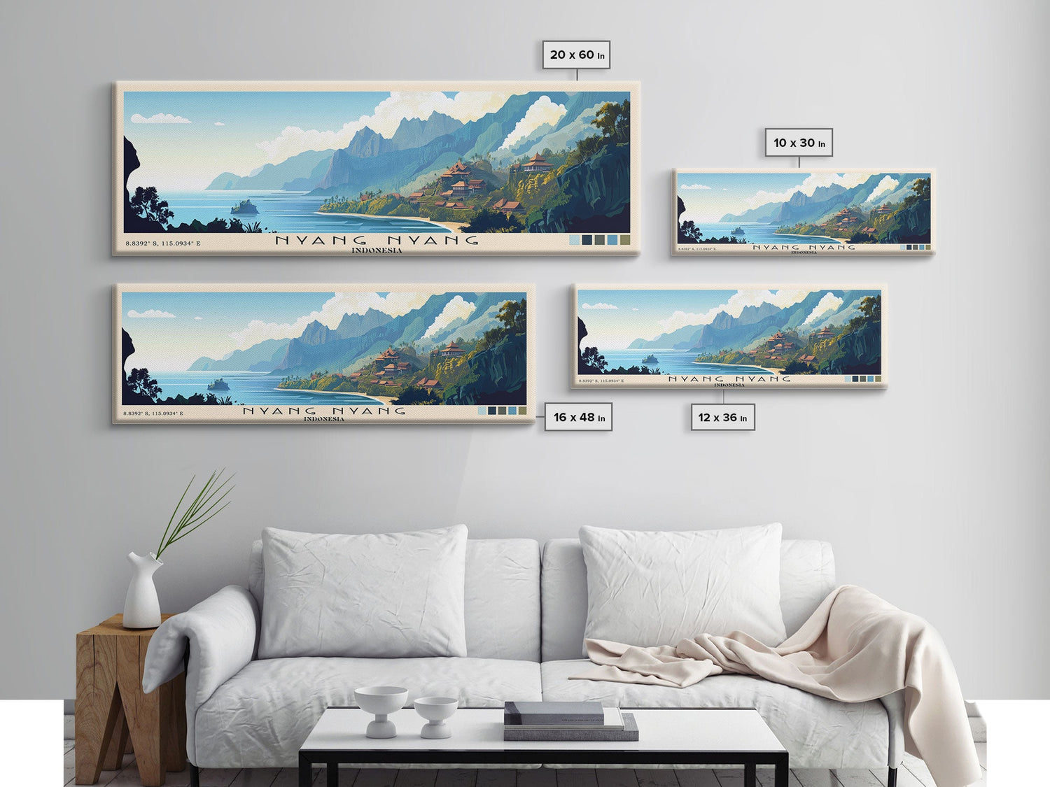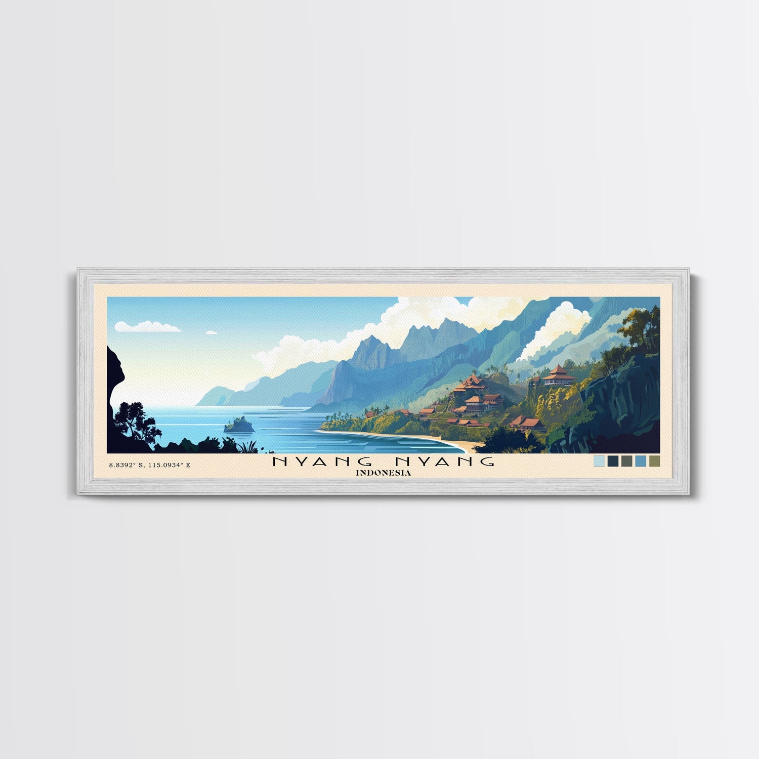 Nyang Nyang, Indonesia Panoramic Beach Print, Vacation Gift, Indonesia Wall Art, Framed Canvas Print, Framed Beach Painting - 10x30 Inches / No Frame - Stretched Canvas Only is backordered and will ship as soon as it is back in stock.