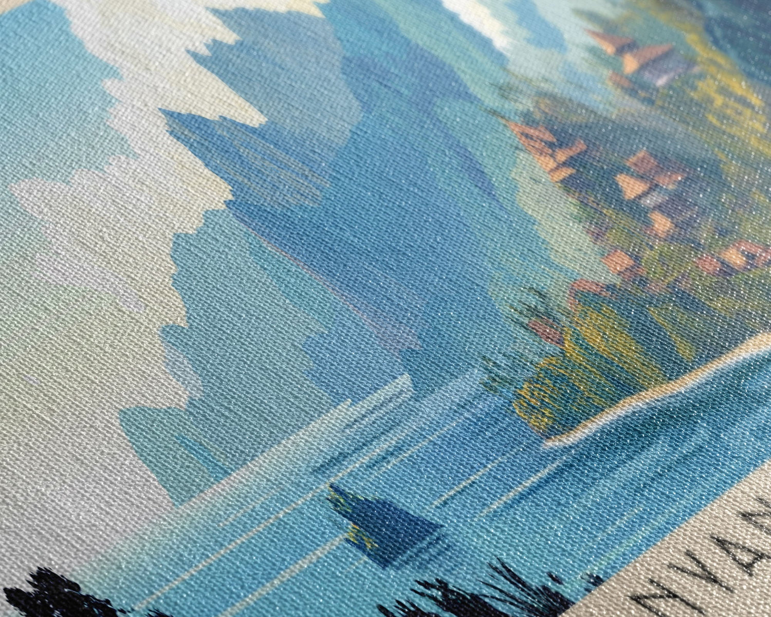 Most of our canvases are made in the USA, with the exception of canvases ordered with the light oak unstained frames, and any large canvases (24x48, 30x60, 16x48 and 20x60) ordered WITH a frame. These are temporarily made in and shipped from Europe, while we try to find a more consistent supplier in the USA.