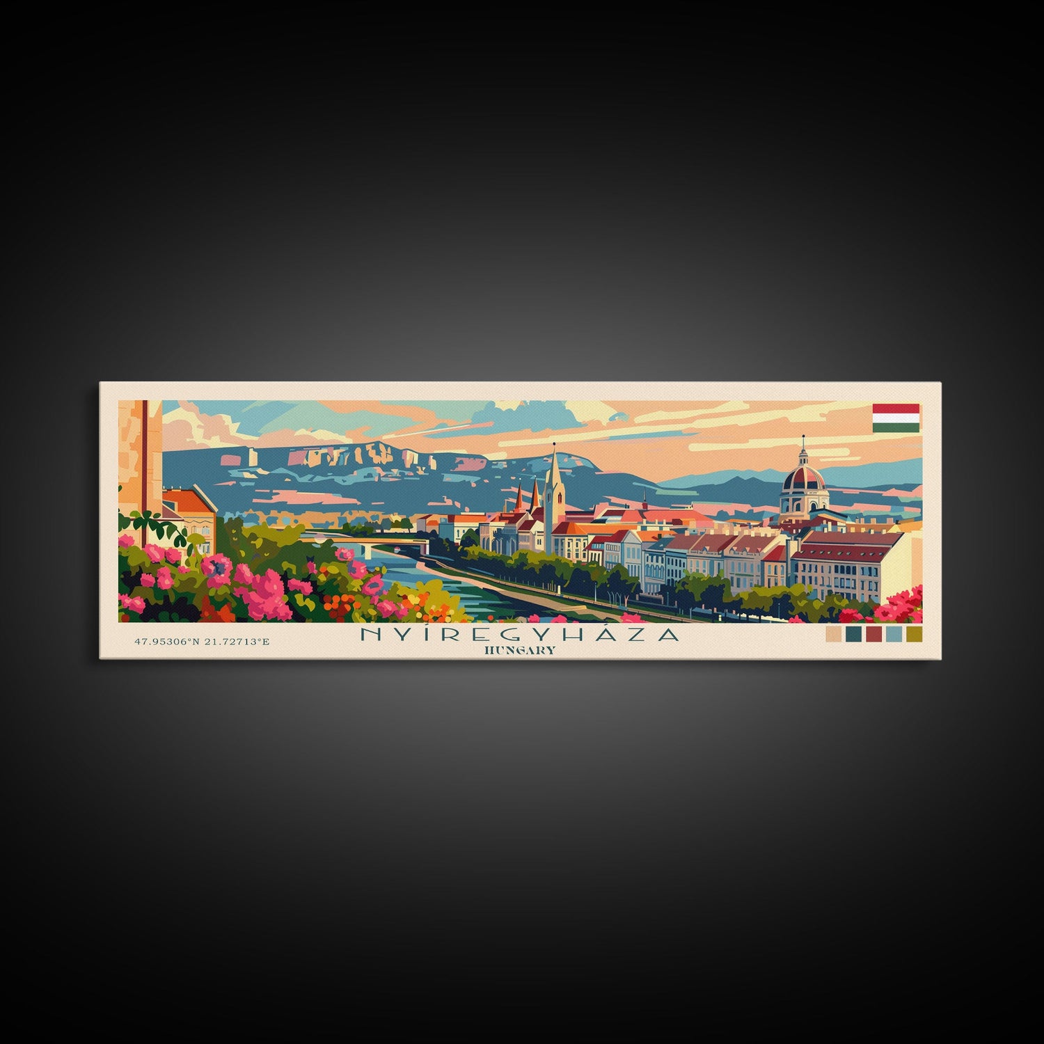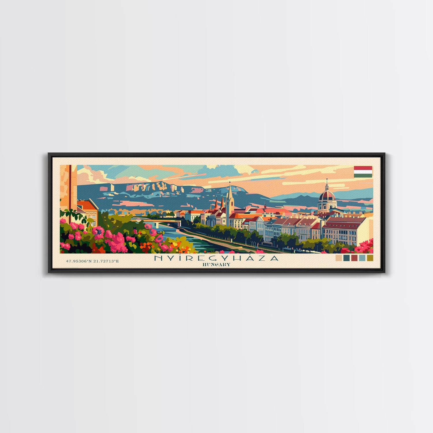 Nyiregyhaza Hungary Panoramic Travel Poster, Framed Canvas Print or Metal Wall Art, Travel Art, Home Decor, Panoramic Painting, Midcentury Art