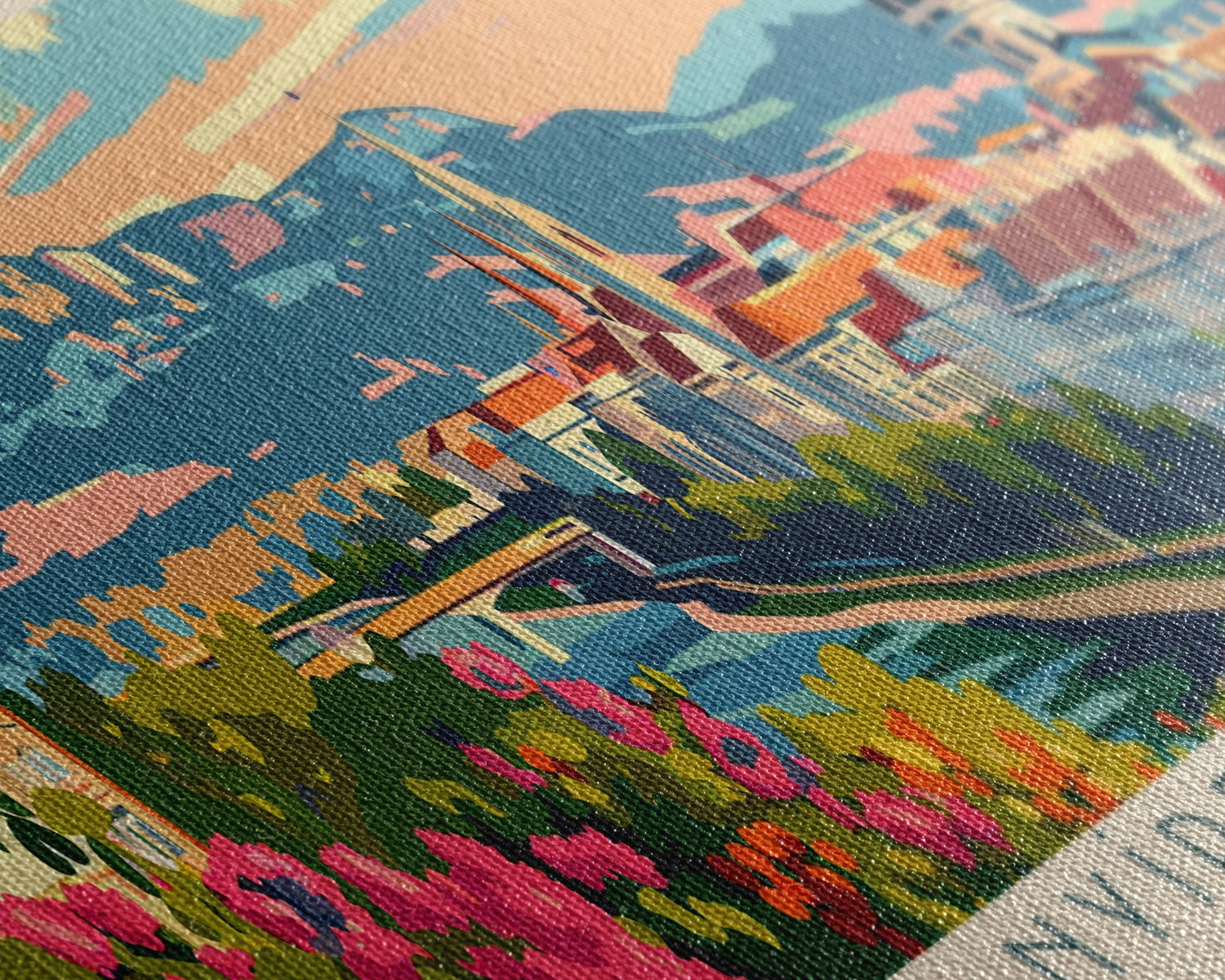 Most of our canvases are made in the USA, with the exception of canvases ordered with the light oak unstained frames, and any large canvases (24x48, 30x60, 16x48 and 20x60) ordered WITH a frame. These are temporarily made in and shipped from Europe, while we try to find a more consistent supplier in the USA.