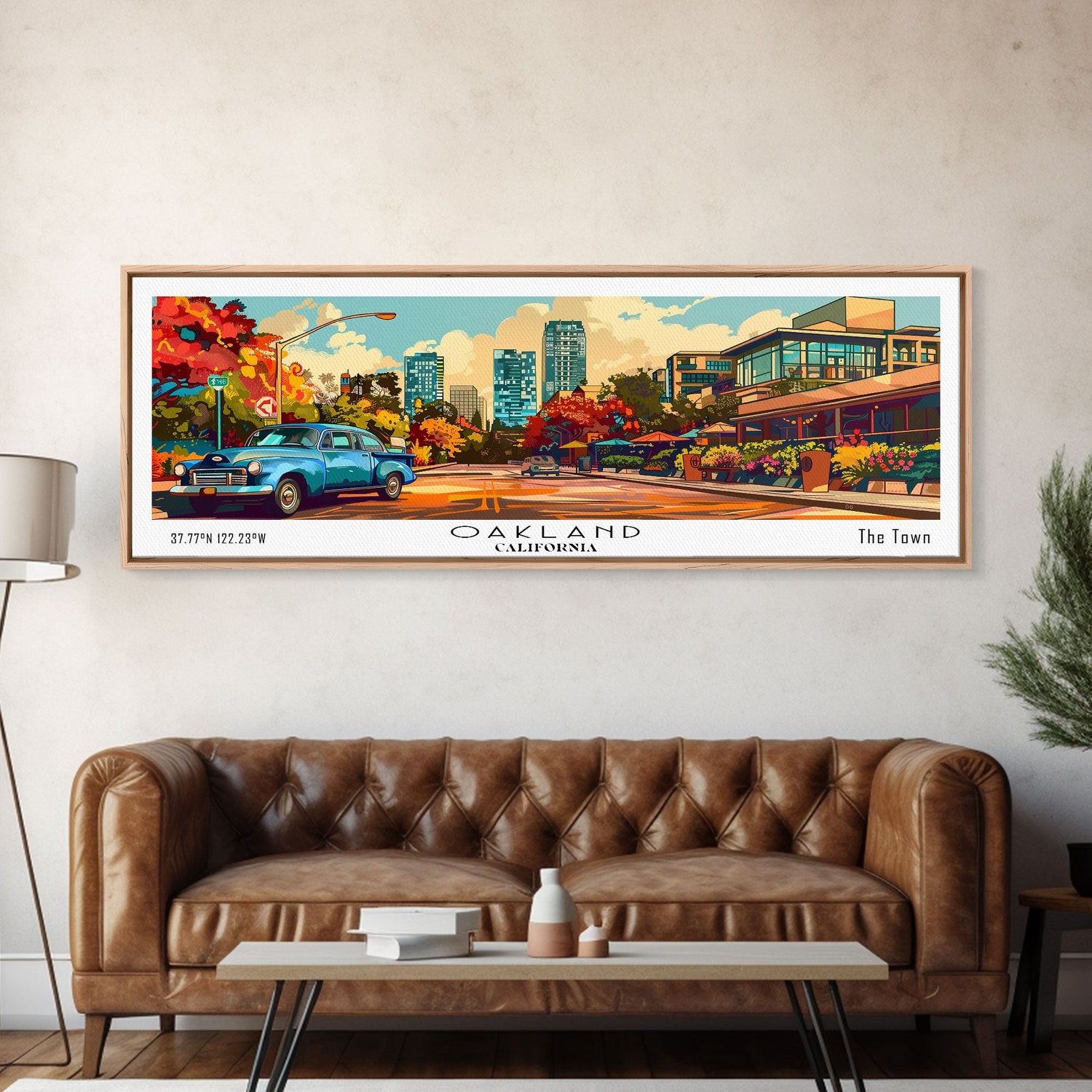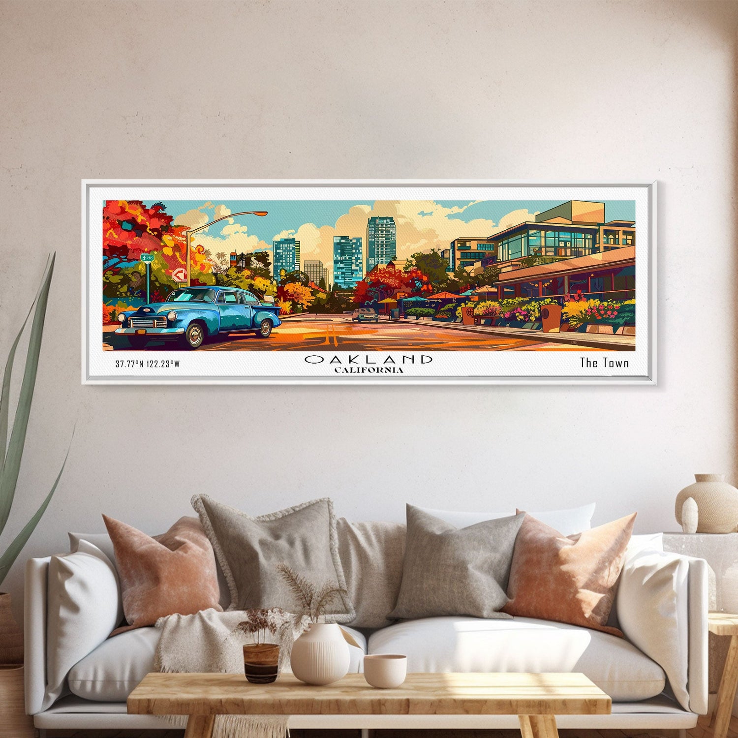 Oakland California Panoramic Wall Art, Pop Art Framed Canvas Print, Mid Century Modern Home Decor, Retro Style Travel Poster