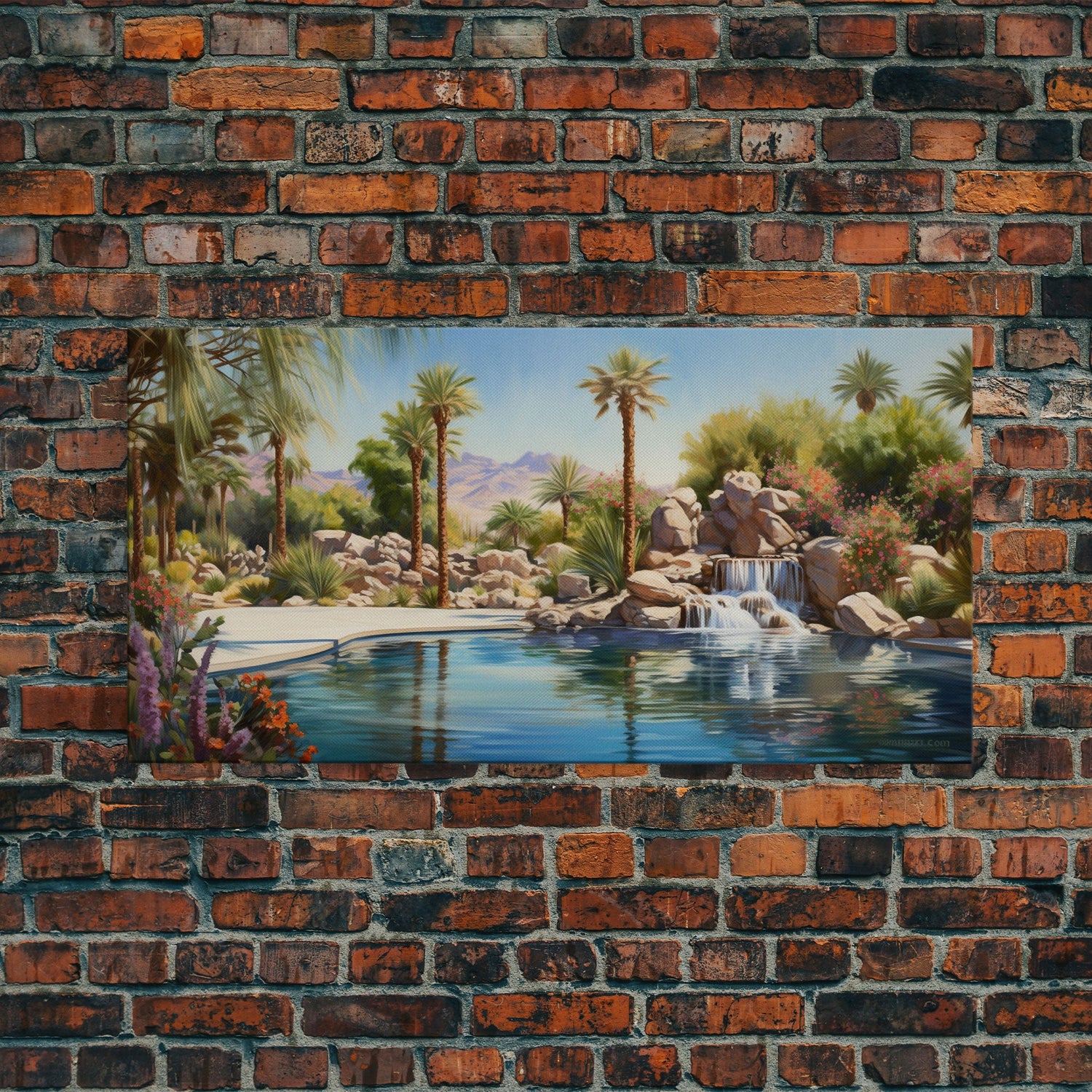 Oasis Wall Art, Palm Trees Art, Lake Art Print, Panoramic Art, Wall Art, Canvas Art, Landscape Art, Gift For Boss, Ranch House Decor