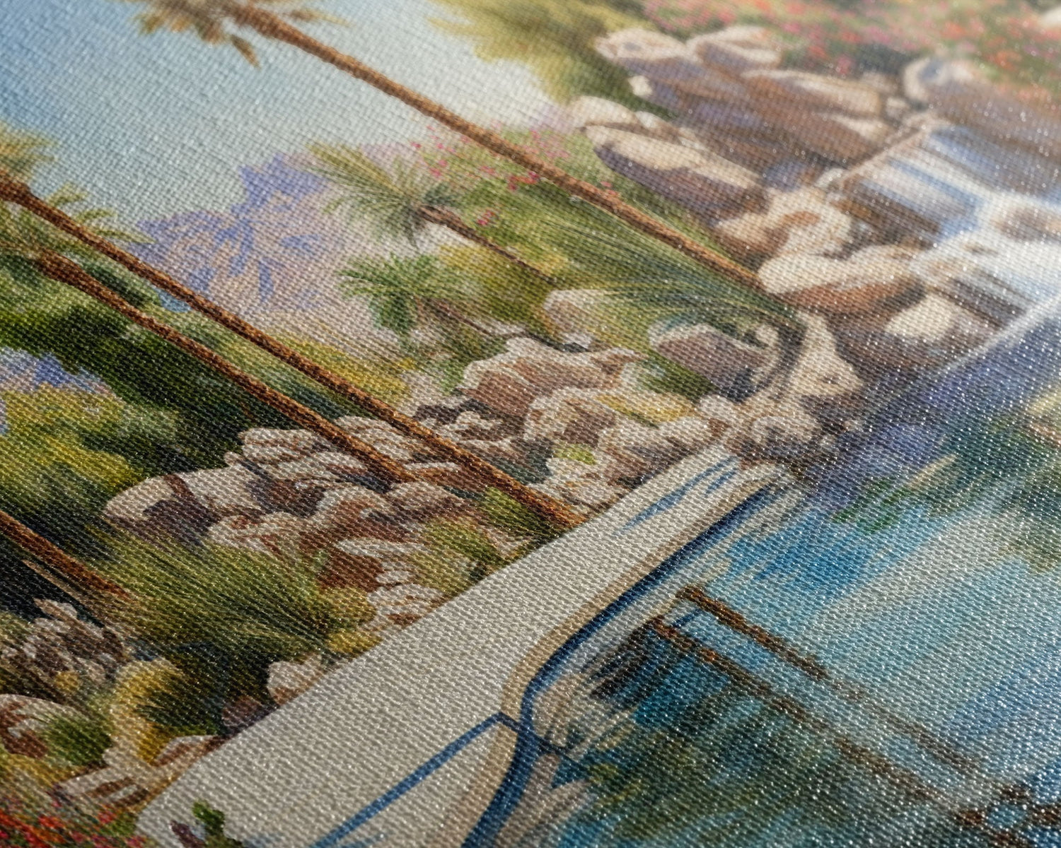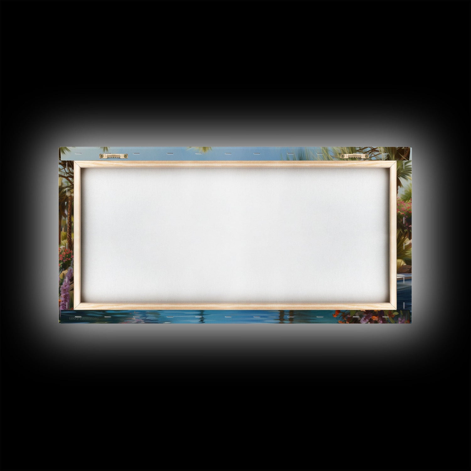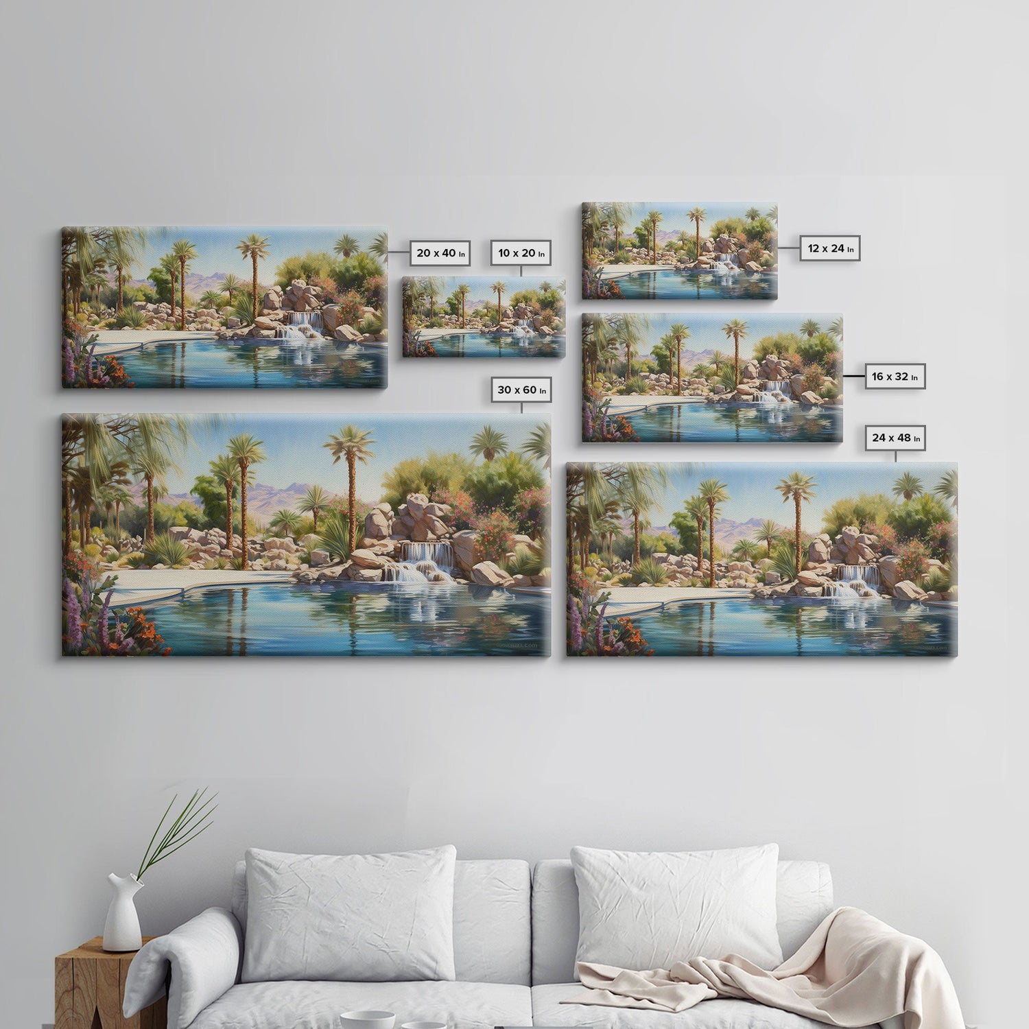 Oasis Wall Art, Palm Trees Art, Lake Art Print, Panoramic Art, Wall Art, Canvas Art, Landscape Art, Gift For Boss, Ranch House Decor - 10x20 Inches / No Frame - Stretched Canvas Only is backordered and will ship as soon as it is back in stock.