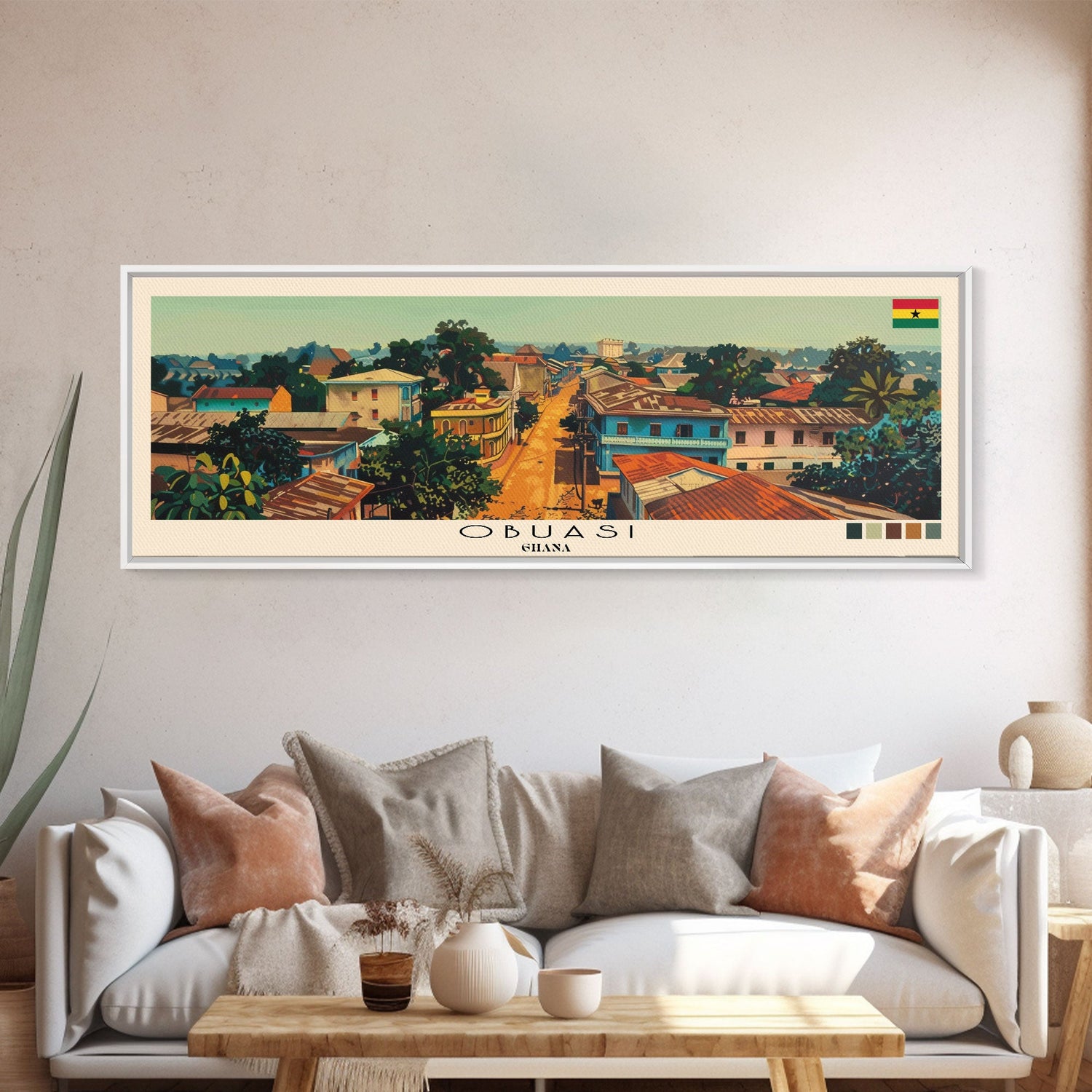 Obuasi, Ghana Panoramic Canvas Print, Obuasi, Ghana Painting, Ghana Art, Obuasi Travel Poster, Travel Art, Living Room Painting