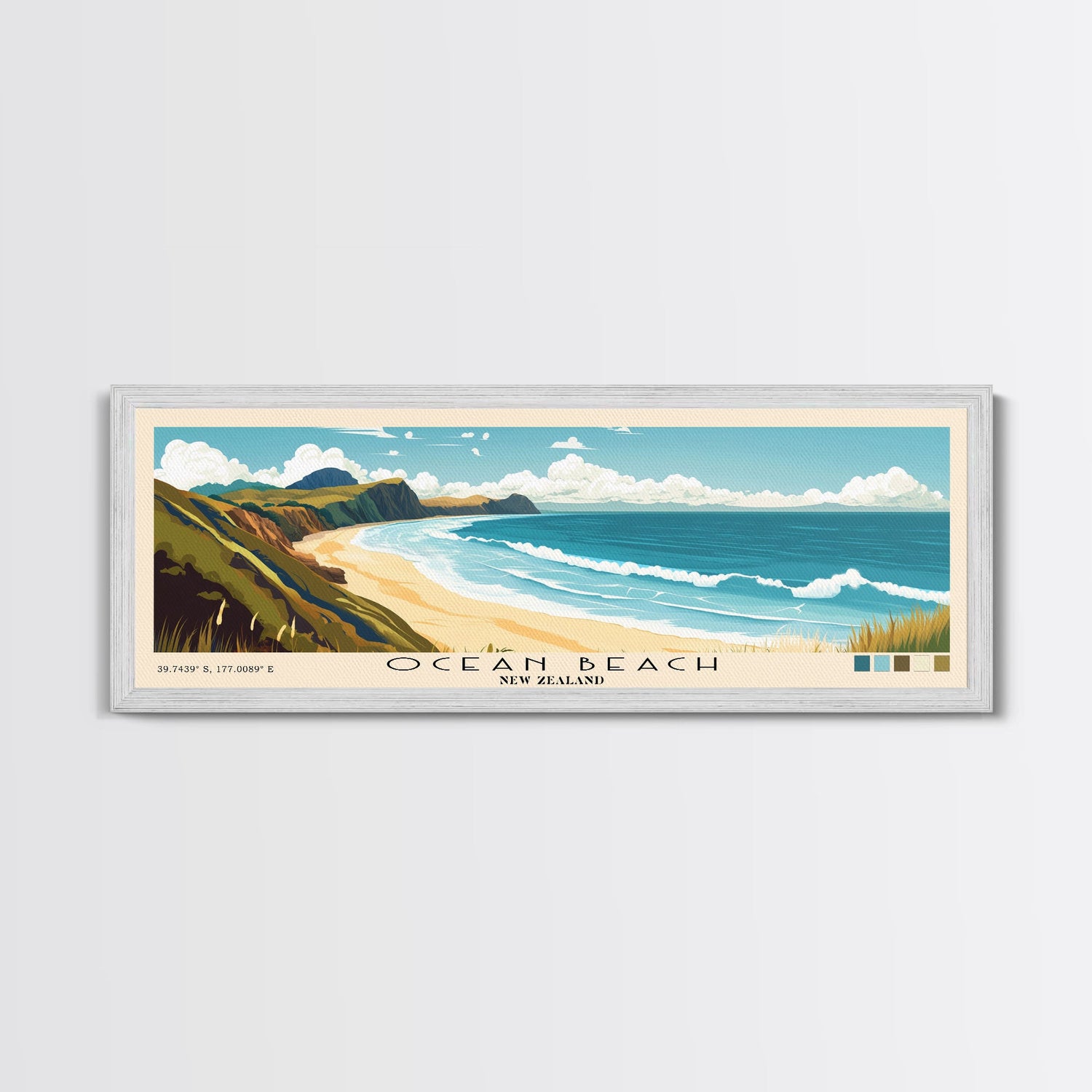 Ocean Beach, New Zealand Panoramic Print, Vacation Gift, New Zealand Wall Art, Beach Painting, Beach Decor, Beach Or Lakehouse Art