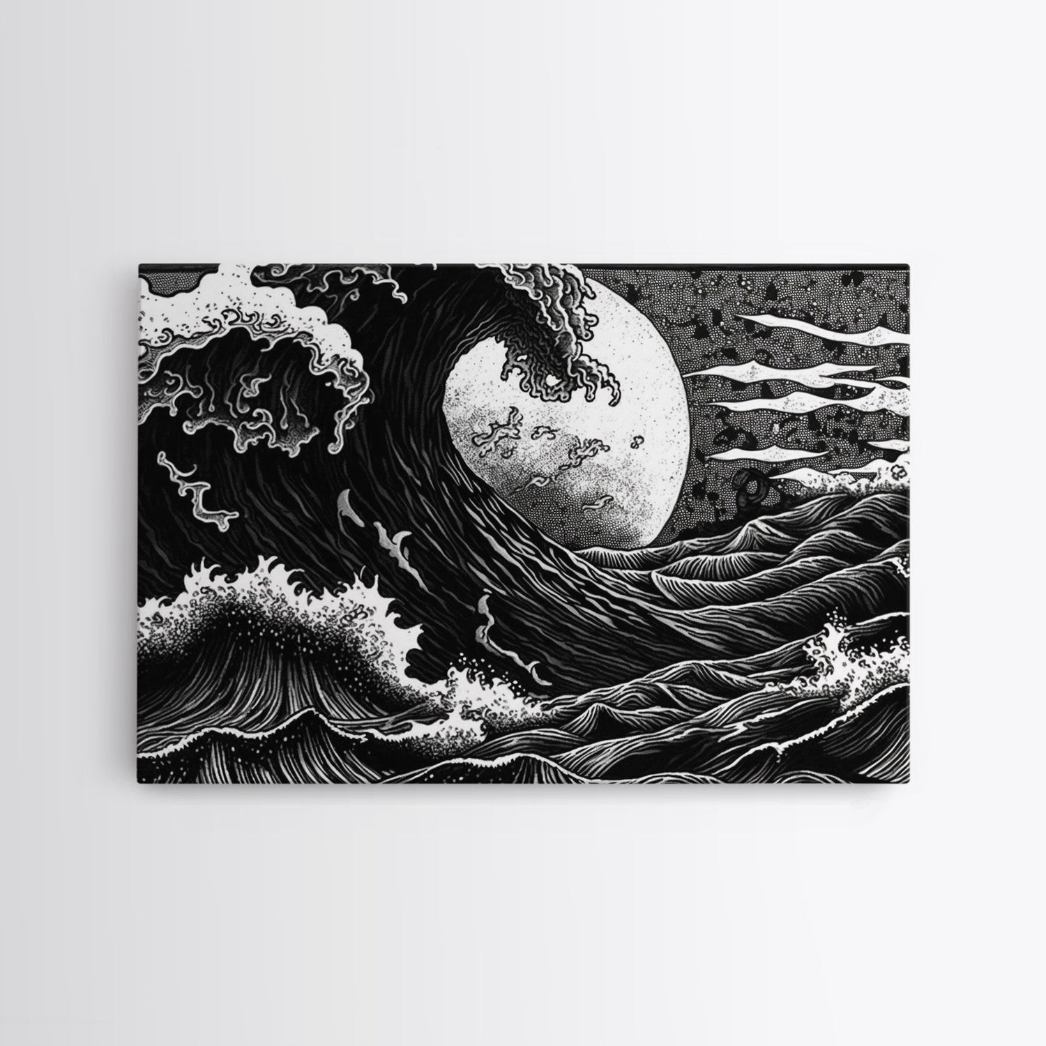 Ocean Wave Wall Art Framed Canvas Print, Unique Wall Art, Hokusai Inspired Japanese Style Wall Art, Oversized Art Ocean Print, Retro Art - 8x12 Inches / No Frame - Stretched Canvas Only is backordered and will ship as soon as it is back in stock.