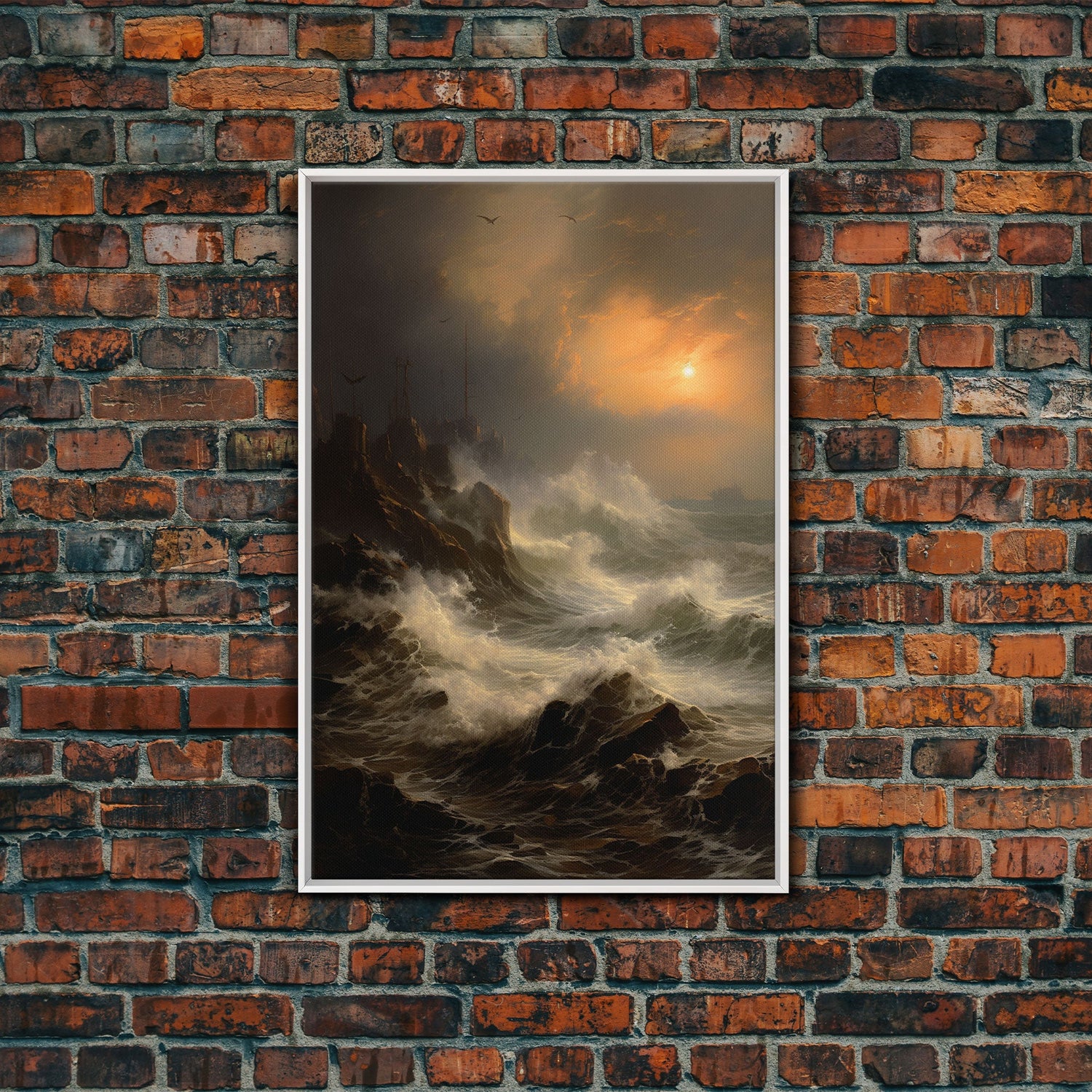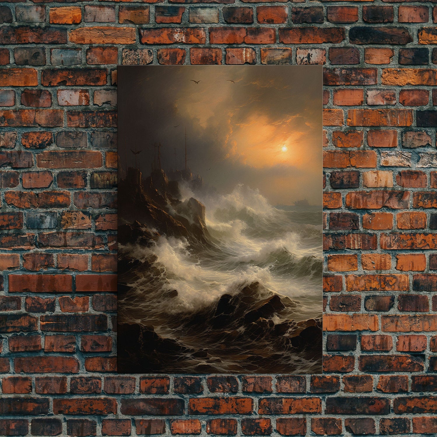 Ocean Waves Art, Sunset Wall Art, Nautical Art Print, Seascape Wall Art, Canvas Print, Wall Art, Vertical Art, Apartment Wall Decor, Prints