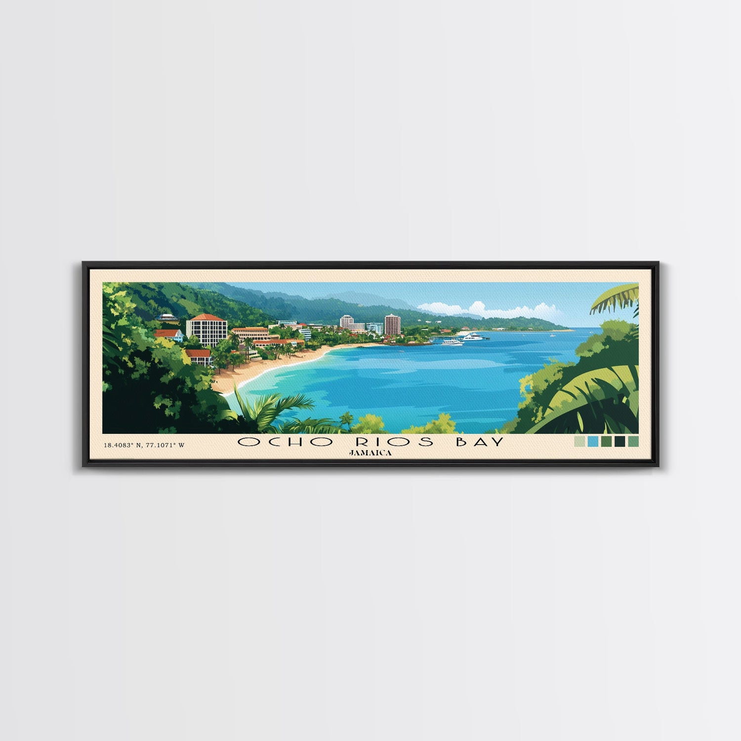 Ocho Rios Bay, Jamaica Panoramic Print, Vacation Gift, Jamaica Wall Art, Beach Painting, Beach Decor, Large Wall Art, Wood Frame Art