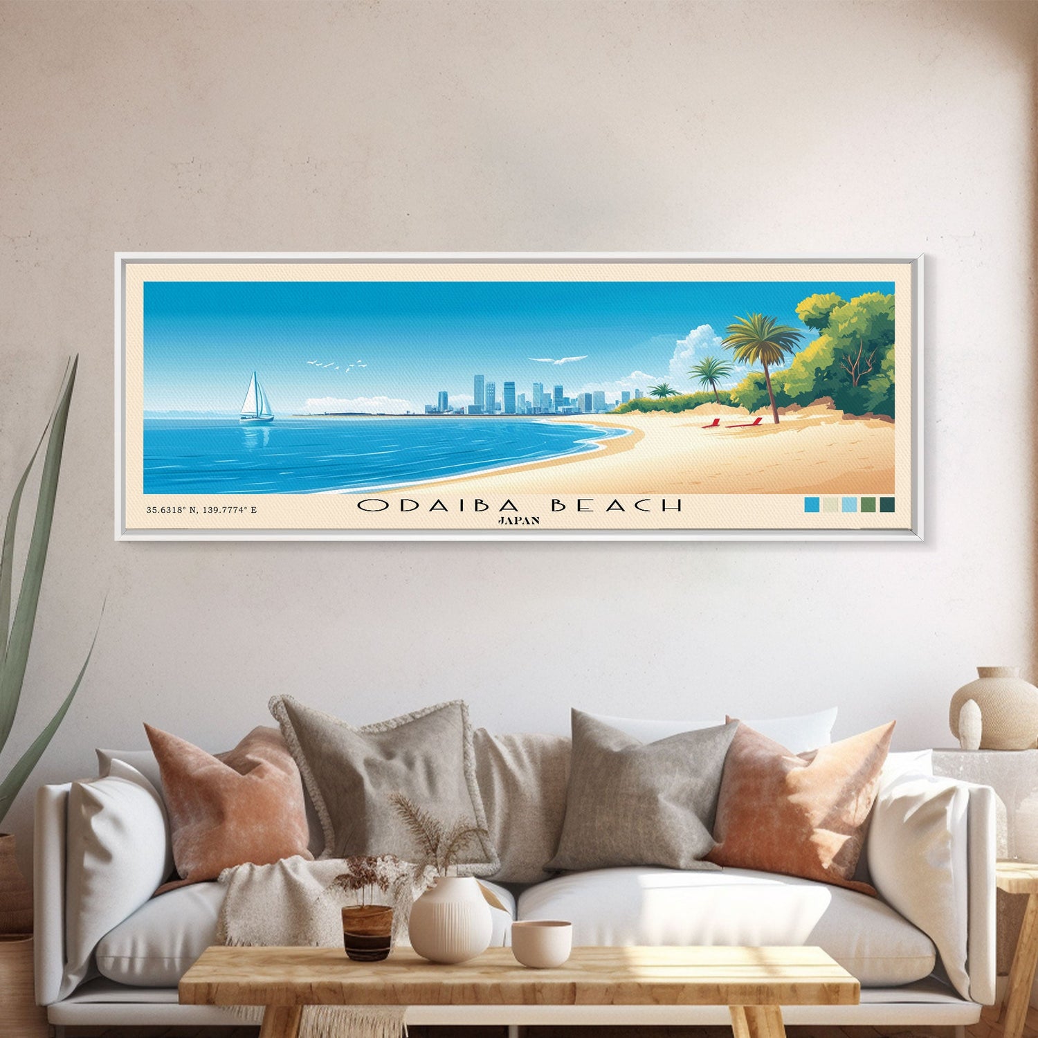 Odaiba Beach, Japan Panoramic Beach Print, Vacation Gift, Japan Wall Art, Framed Canvas Print, Framed Beach Painting