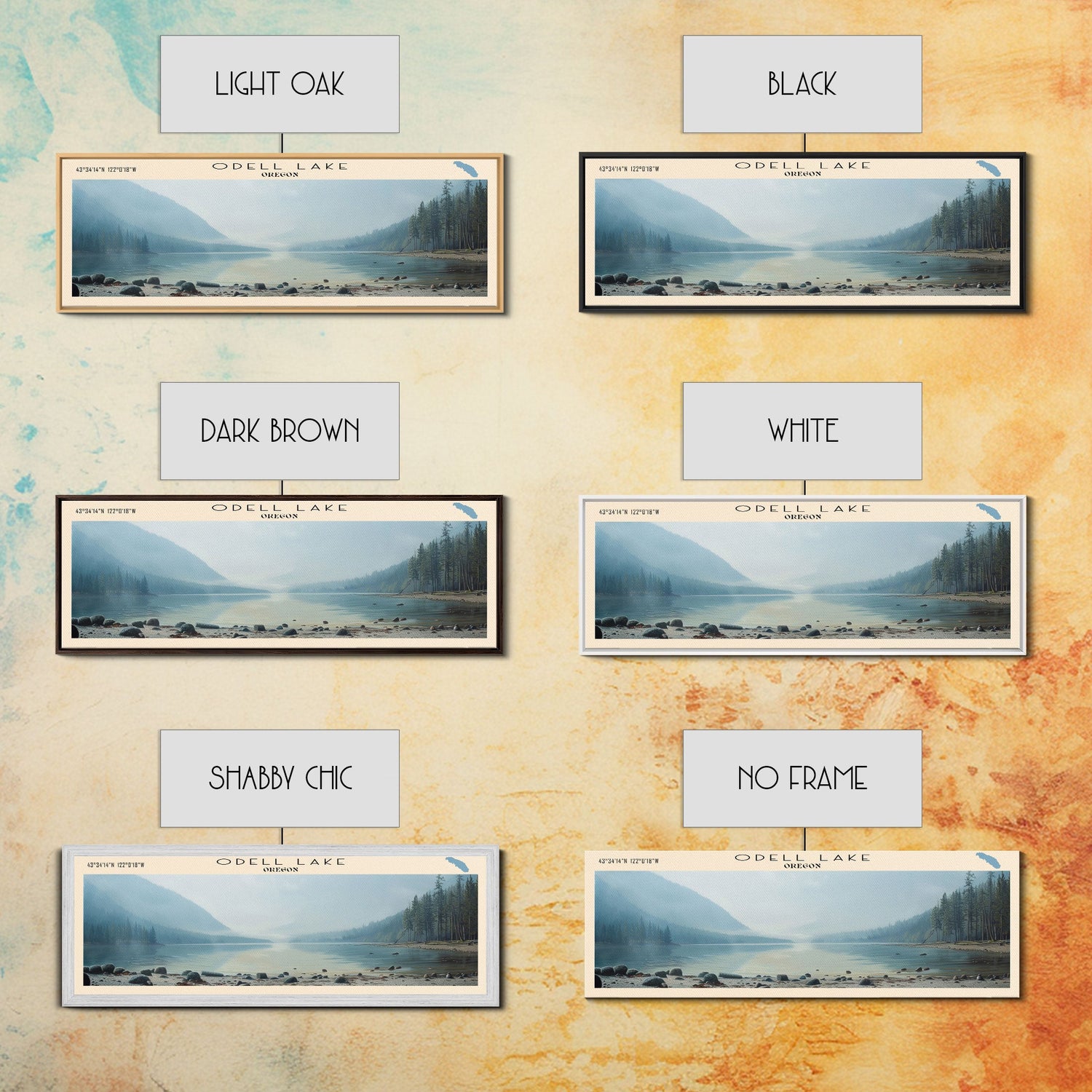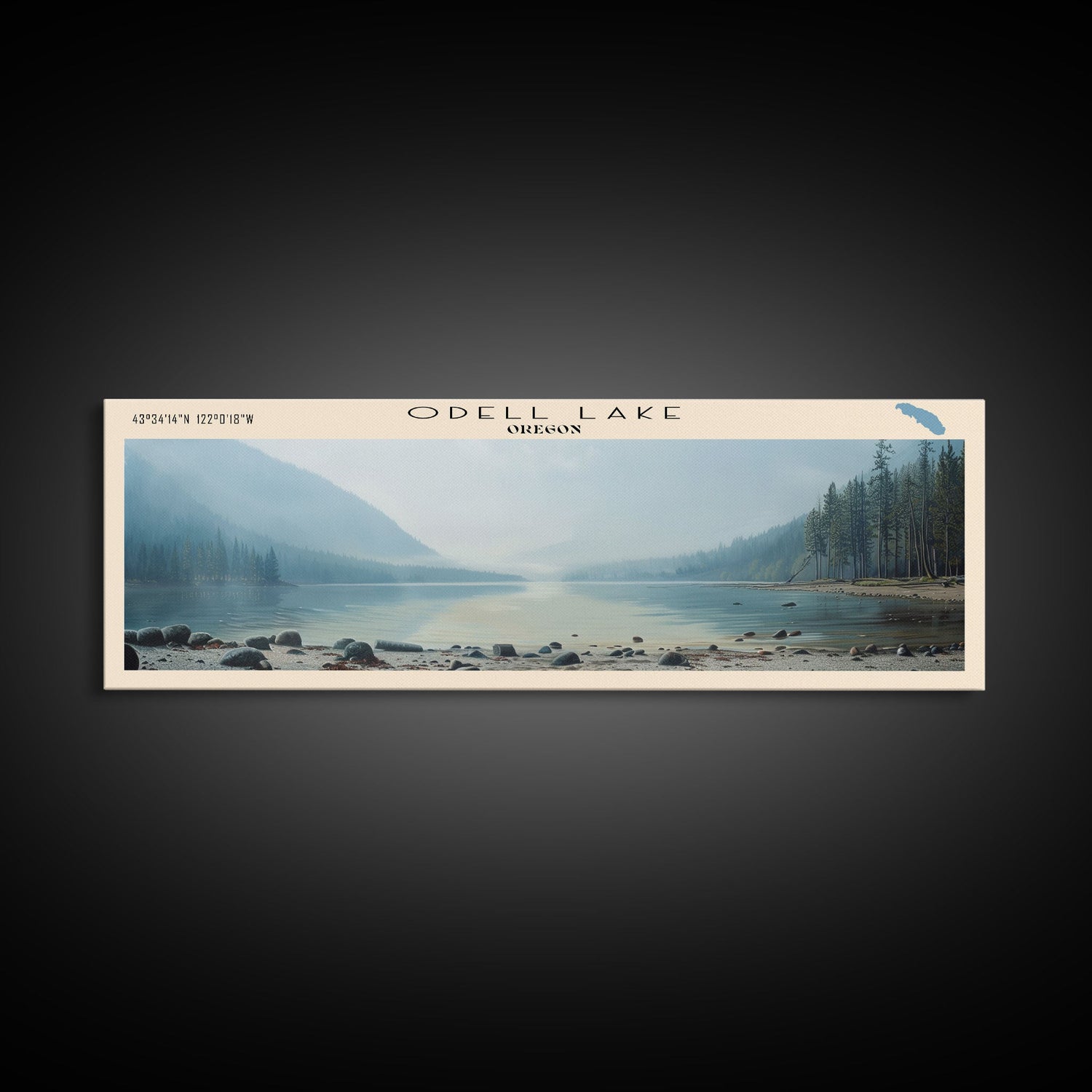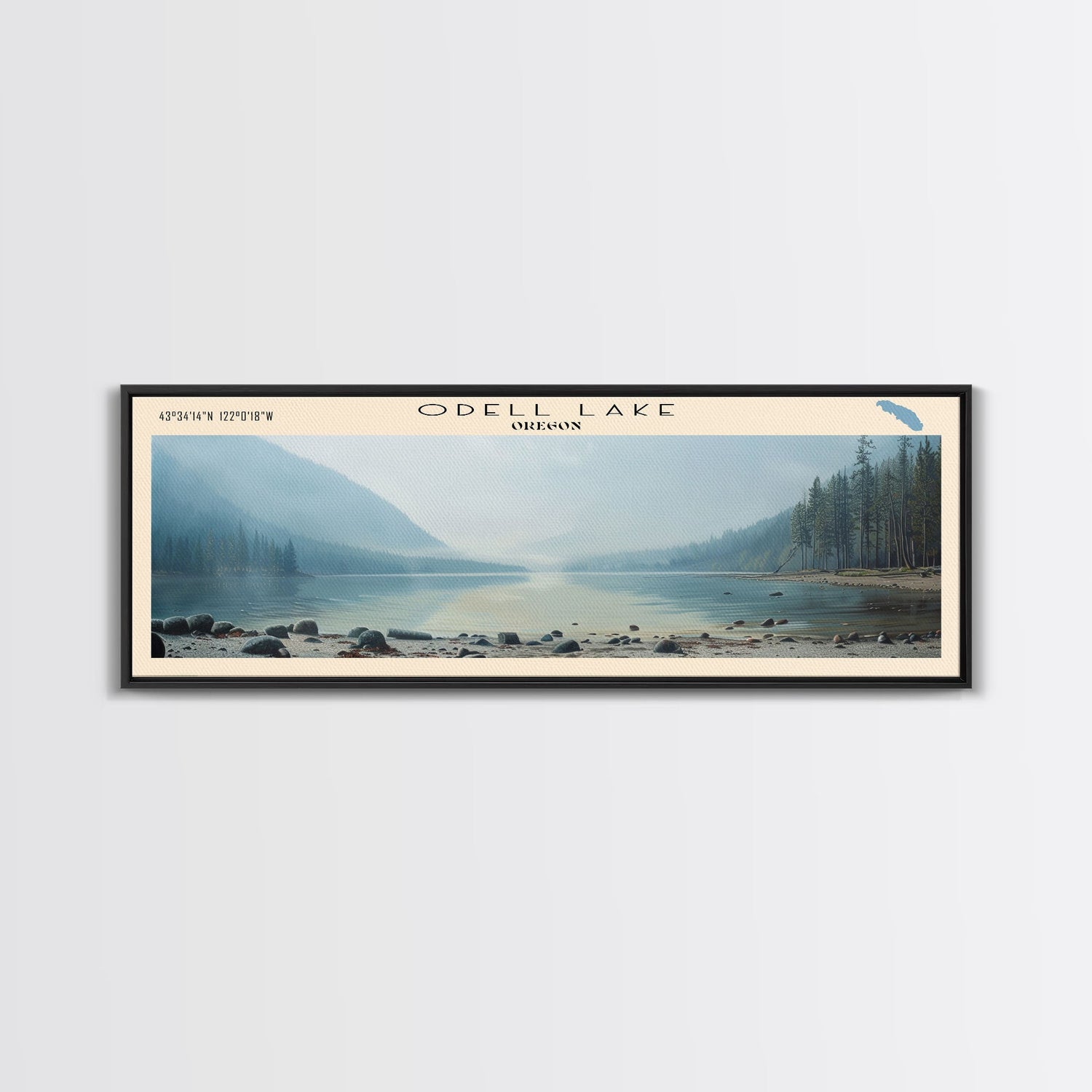 Odell Lake Oregon Framed Canvas Print, Lake House Decor, Panoramic Wall Art, Travel Poster, Landscape Painting, Modern Art