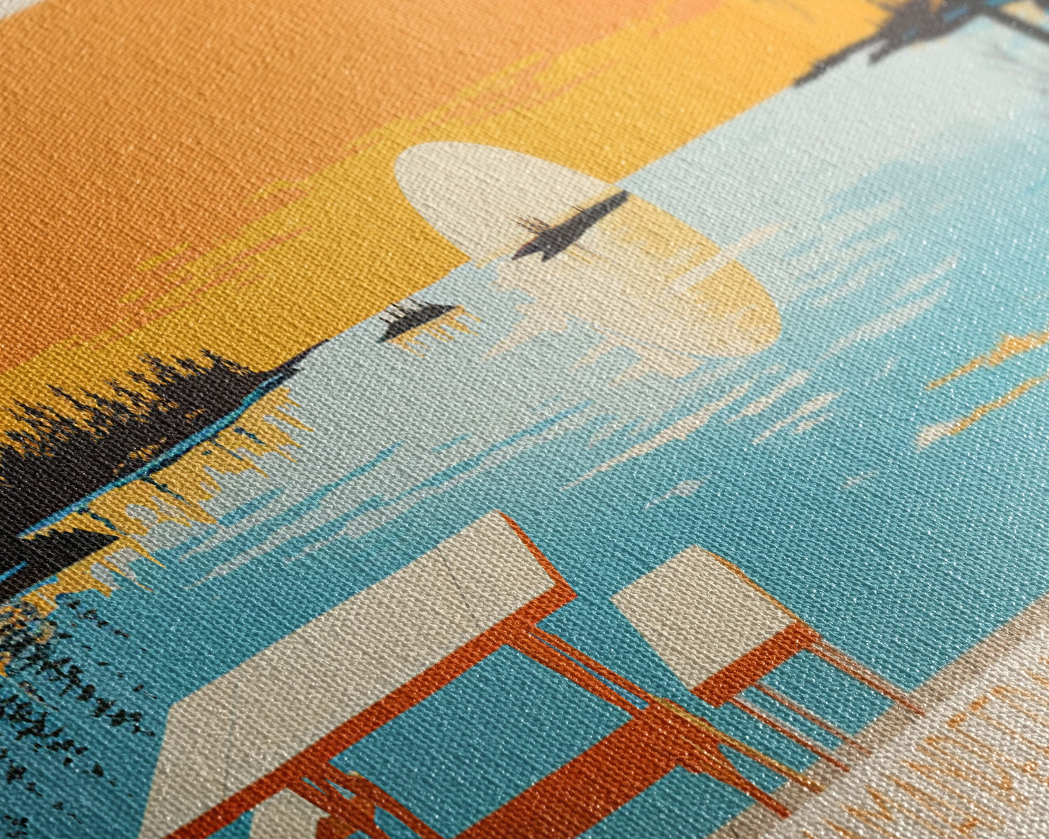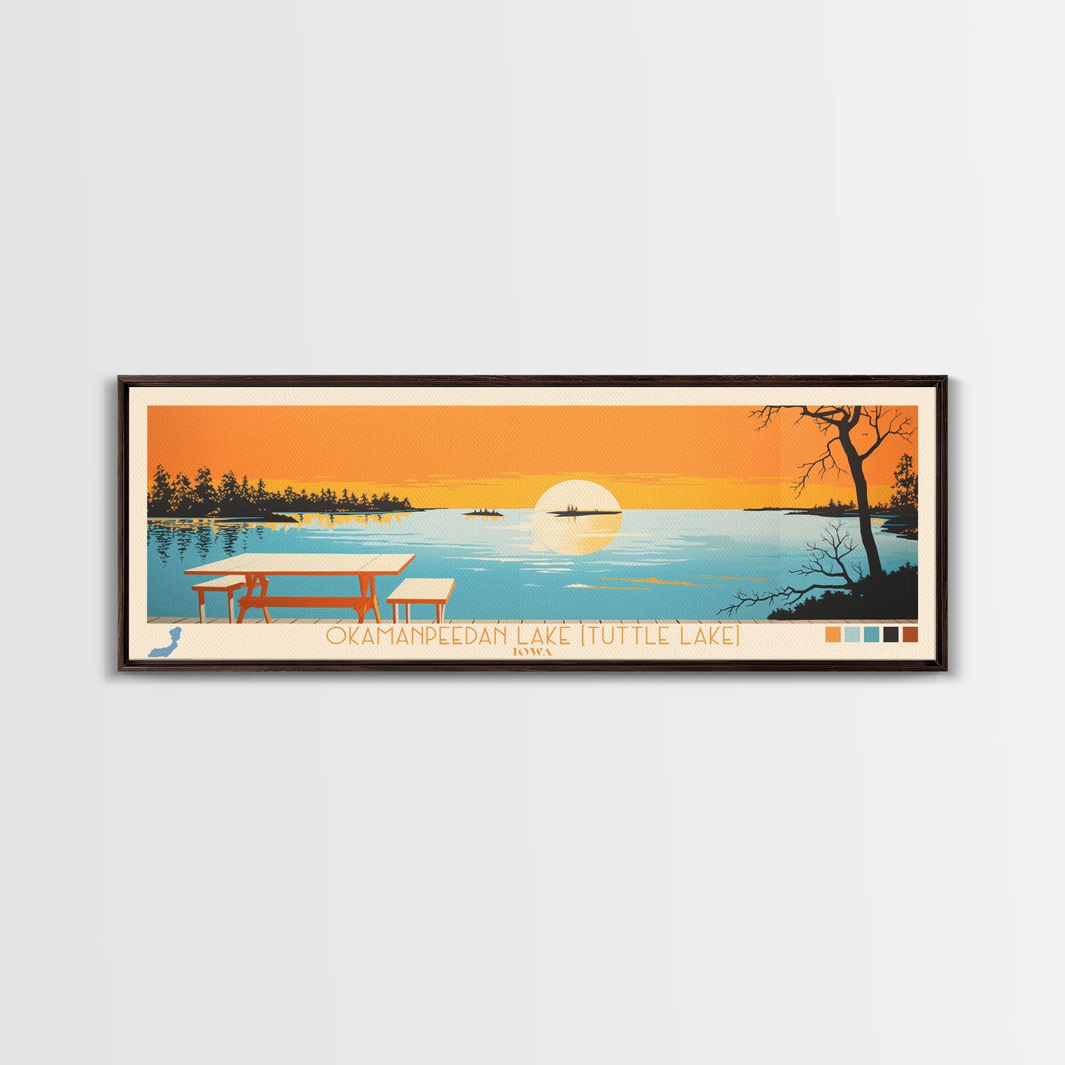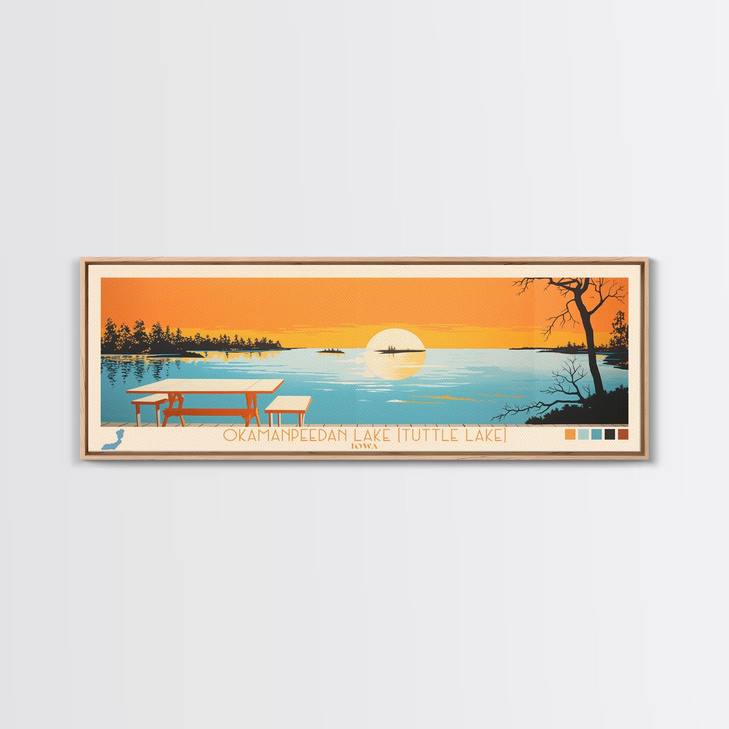 Okamanpeedan Lake (Tuttle Lake), Iowa Framed Canvas Print, Panoramic Wall Art, Midcentury Modern, Pop Art, Home Decor, Travel Poster, Bedroom Art