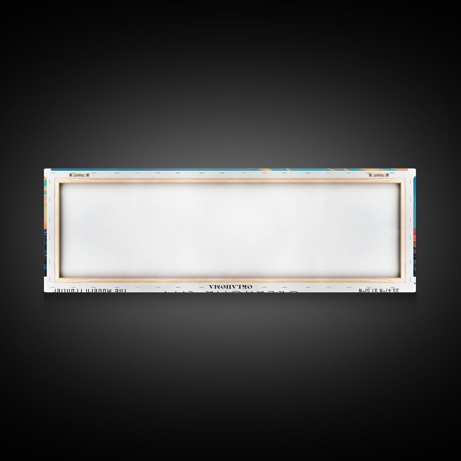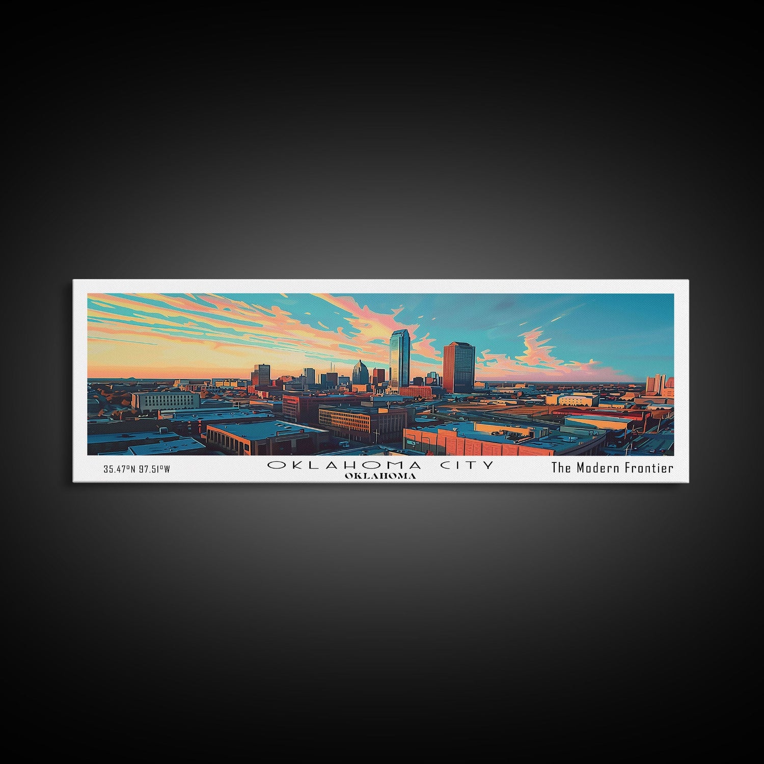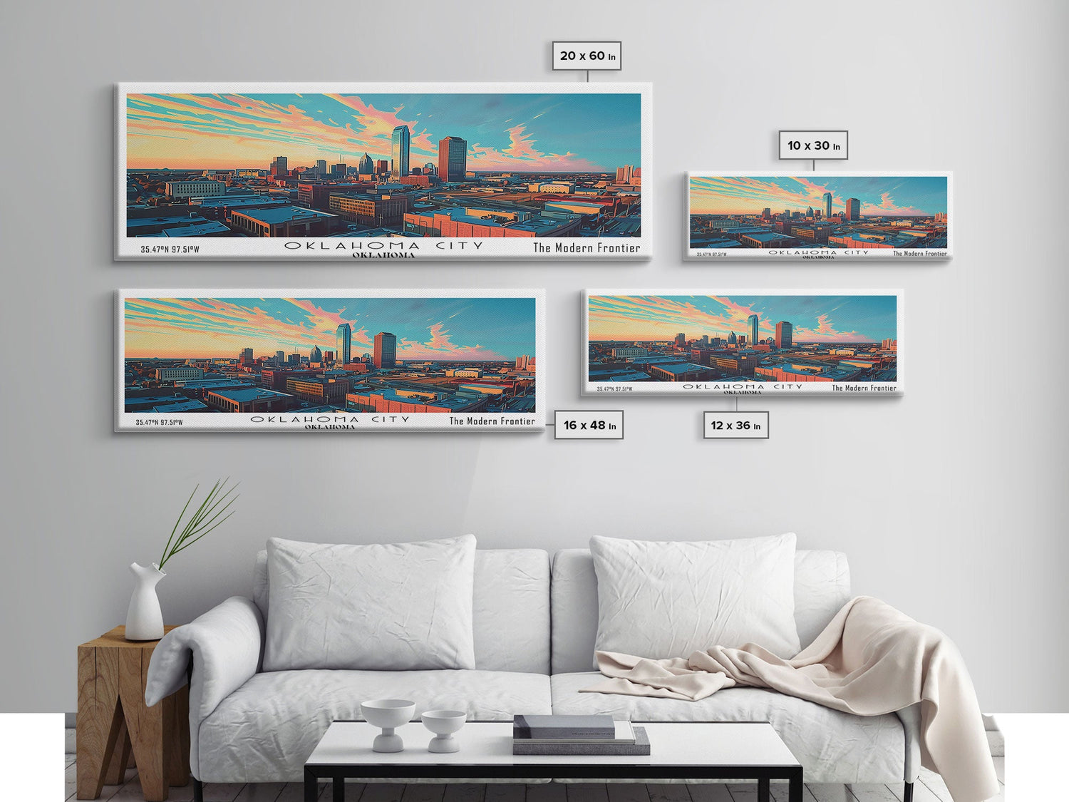 Oklahoma City Oklahoma Panoramic Painting, Mid Century Modern Framed Canvas Print, Retro Pop Art Travel Poster, City Art, Office Wall Decor, Living Room Art - 10x30 Inches / No Frame - Stretched Canvas Only is backordered and will ship as soon as it is back in stock.