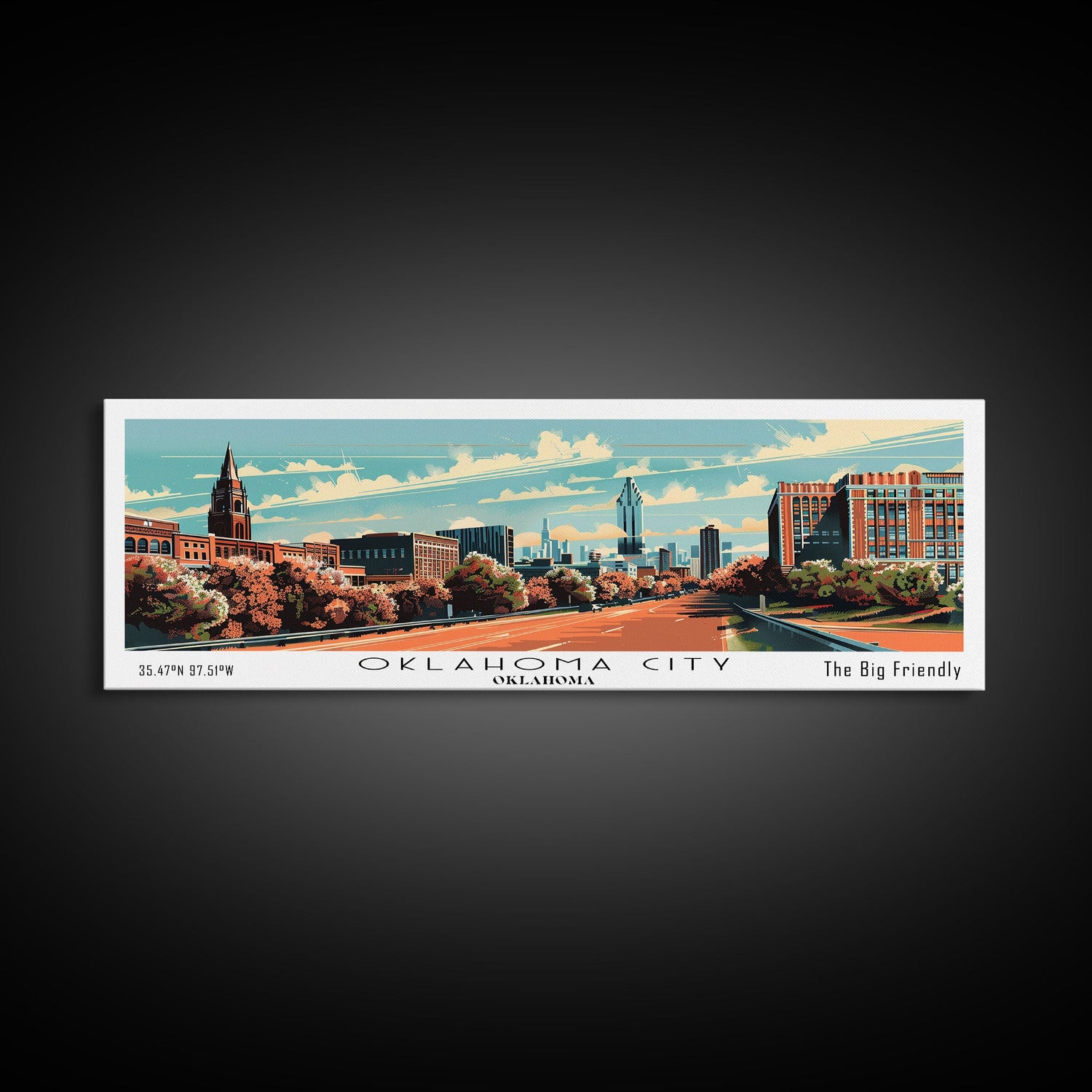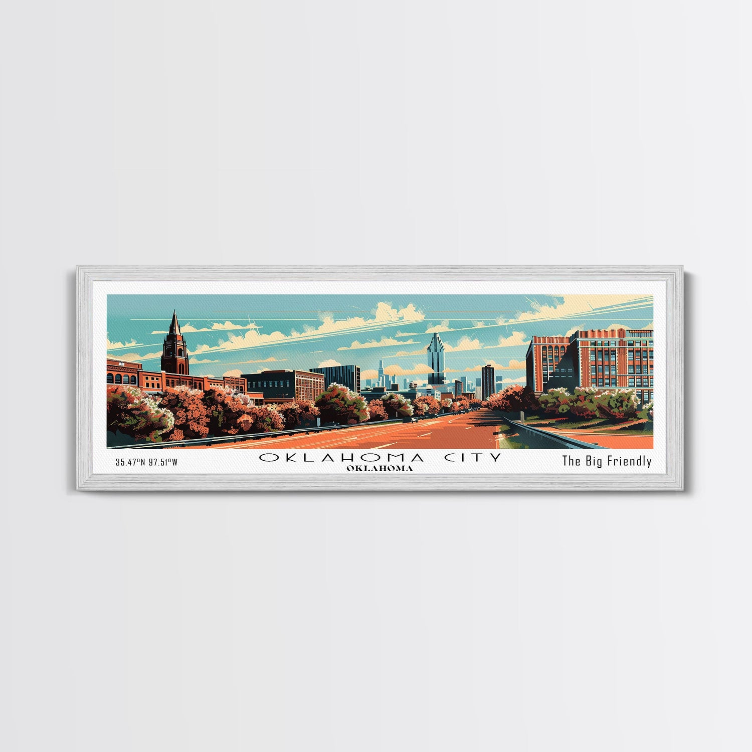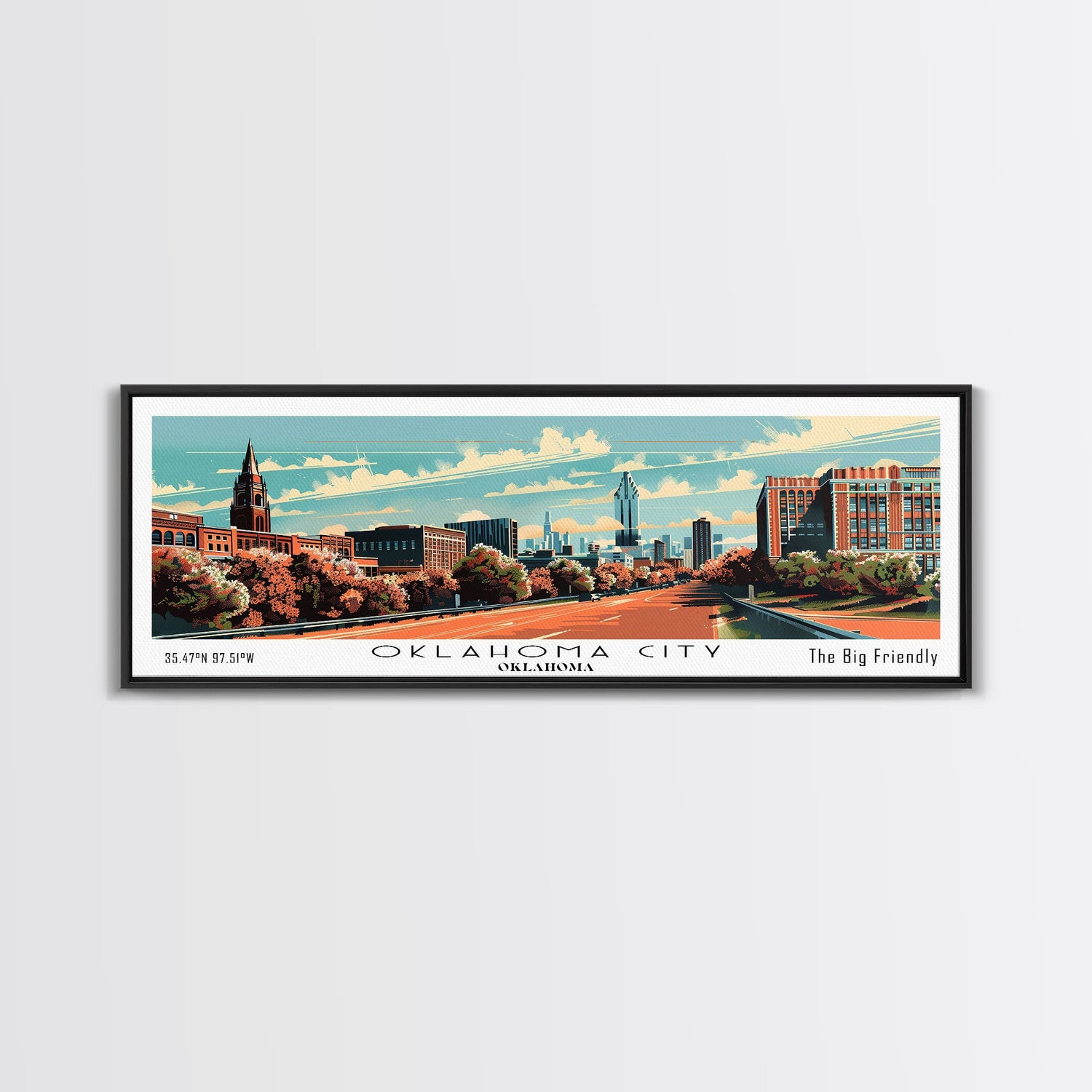 Oklahoma City Oklahoma Panoramic Wall Art, Mid Century Modern Framed Canvas Print, Retro Pop Art Travel Poster, Office Decor, Gift Idea