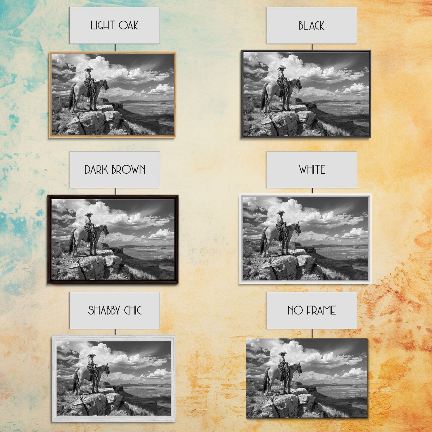*Optional frames add a total of 1.5 inches to each dimension, for example a 10x20 canvas with a frame will be 11.5 by 21.5 inches total. All framed canvas are 1.5" total depth.