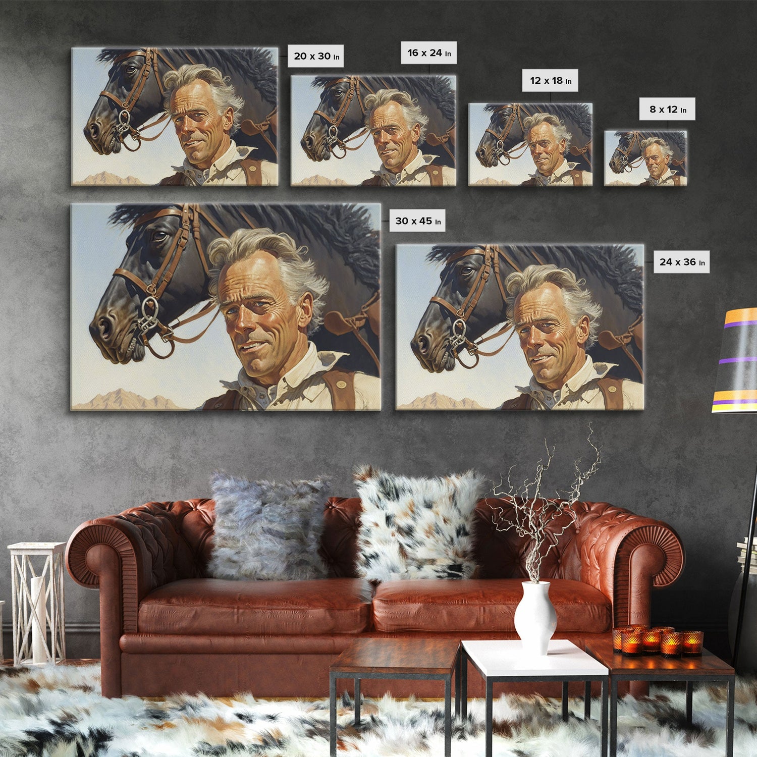 Old Timey Wild West Cowboy Oil Painting Print, Southwestern Western Room Decor, Cowboy Wall Art, Modern Eclectic Kitsch Home Decor