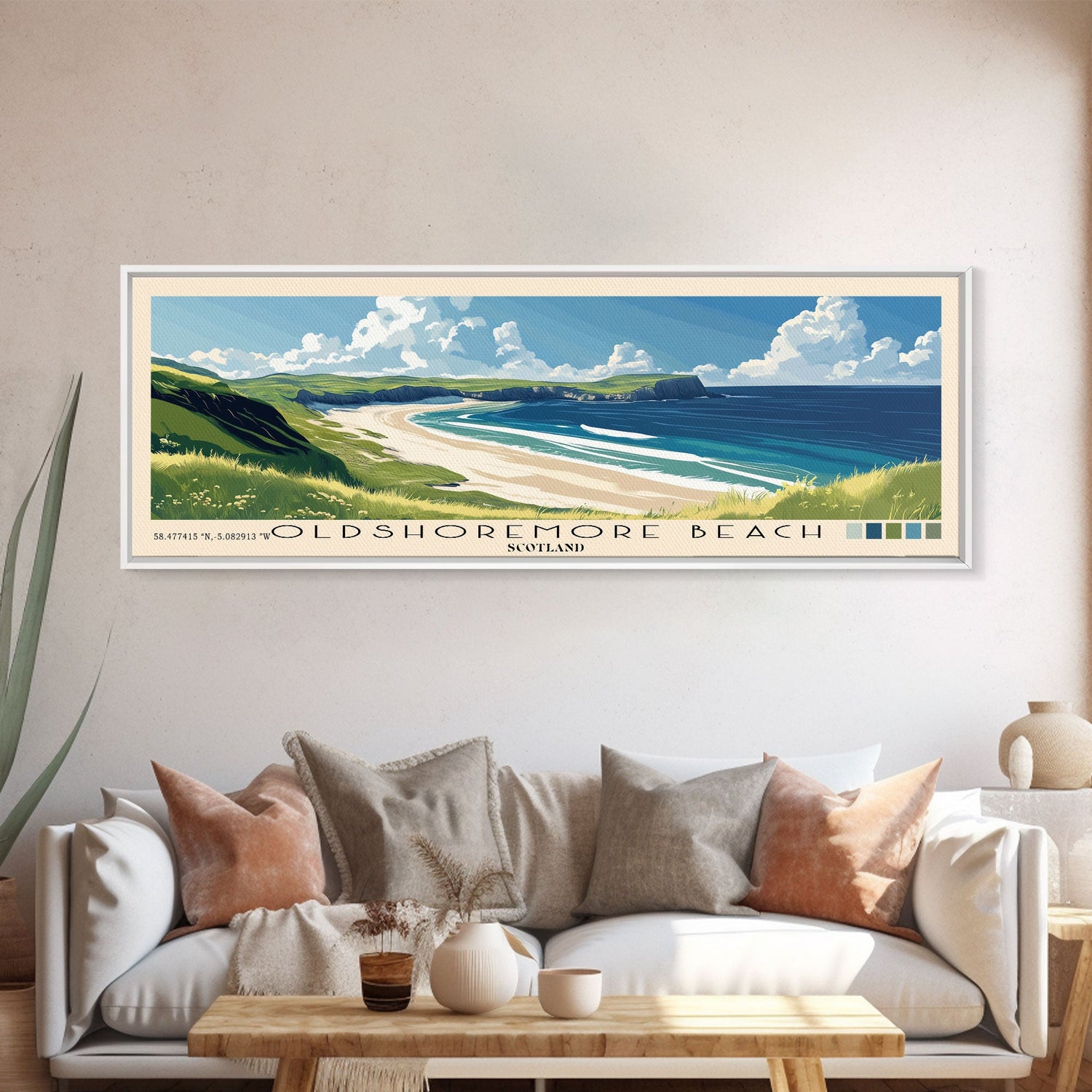 Oldshoremore beach, Scotland Panoramic Beach Print, Vacation Gift, Scotland Wall Art, Beach Painting, Beach Decor, Beach Painting - 10x30 Inches / No Frame - Stretched Canvas Only is backordered and will ship as soon as it is back in stock.