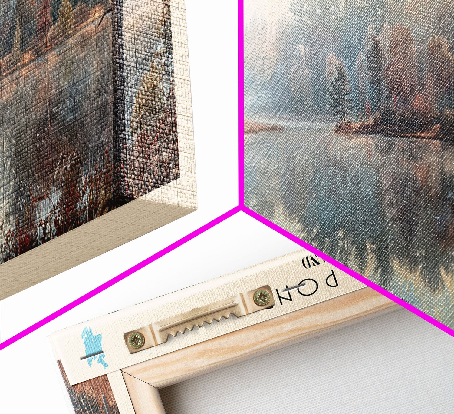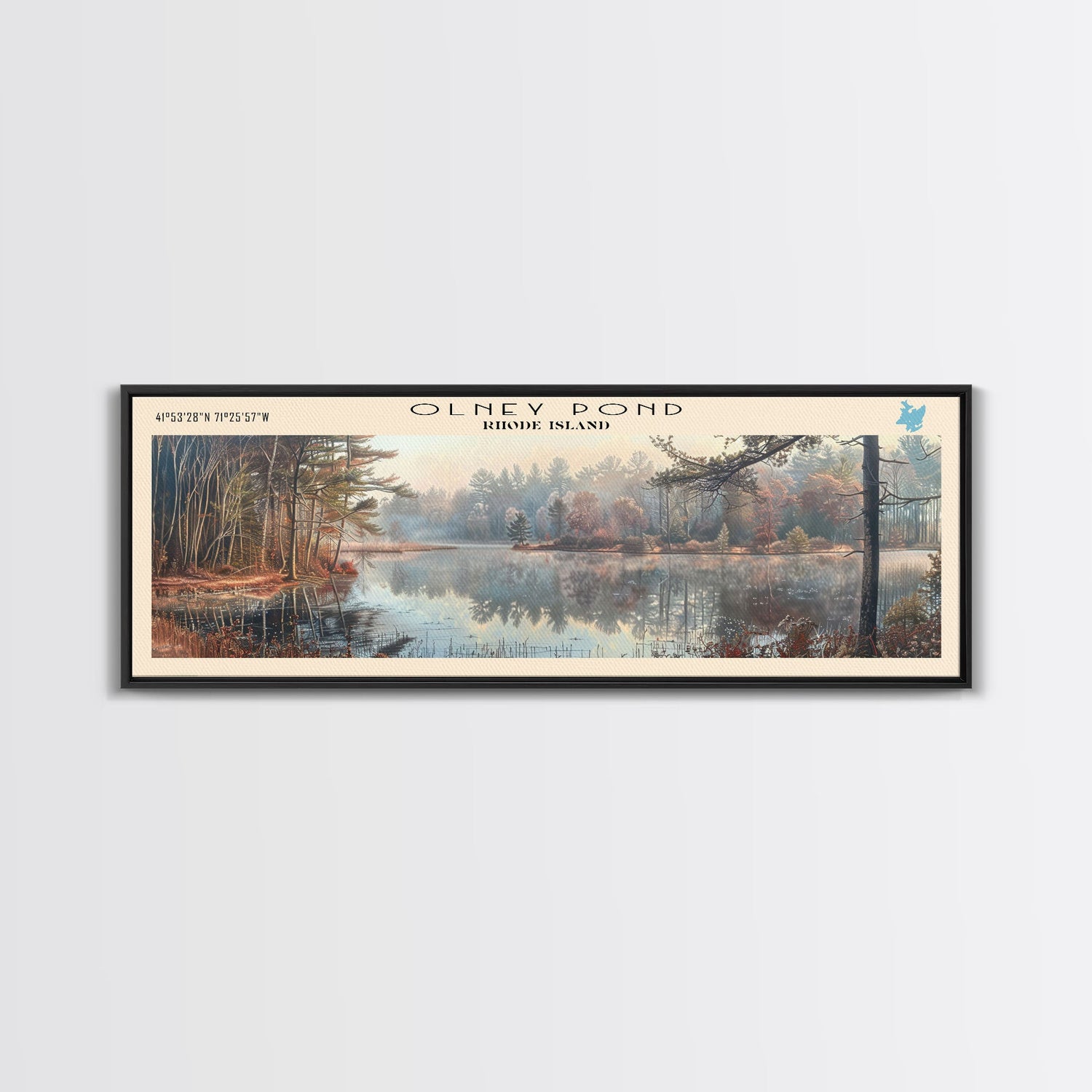 Olney Pond Rhode Island Framed Canvas Print, Lake House Decor, Panoramic Wall Art, Travel Poster, Landscape Painting, Bedroom Decor