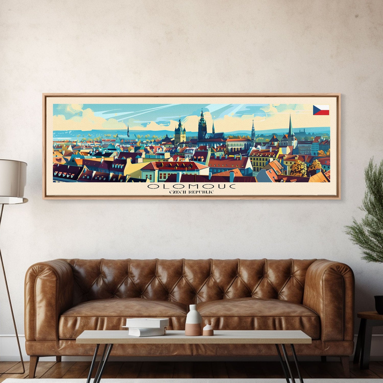 Olomouc Czech Republic Travel Art, City Art, Framed Canvas Print or Metal Wall Art, Europe Travel Poster, Panoramic Wall Art, Extra Wide Wall Art