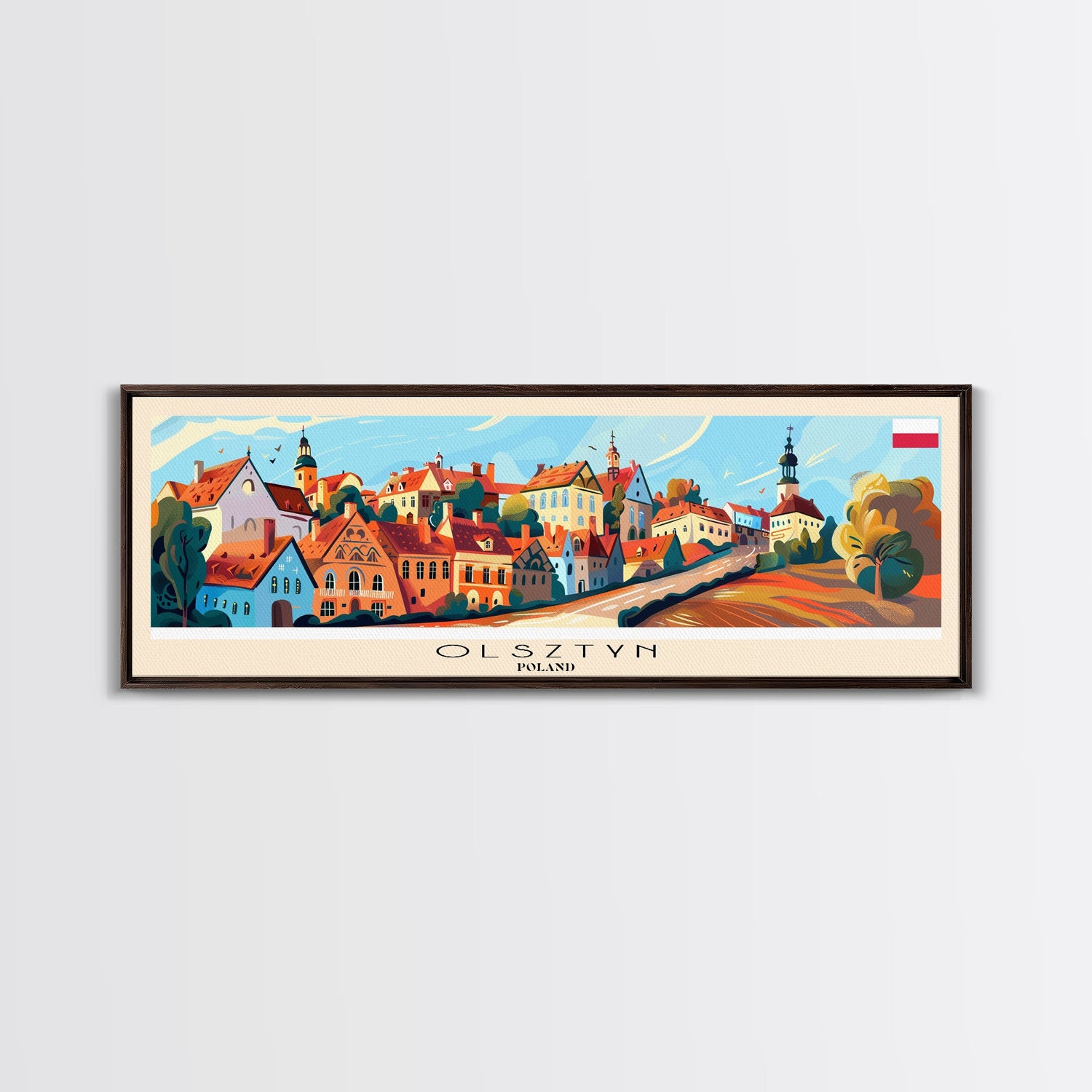 Olsztyn Poland Panoramic Travel Poster, Framed Canvas Print or Metal Wall Art, Travel Art, Home Decor, Panoramic Painting, Midcentury Art - 10x30 Inches / No Frame - Stretched Canvas Only is backordered and will ship as soon as it is back in stock.