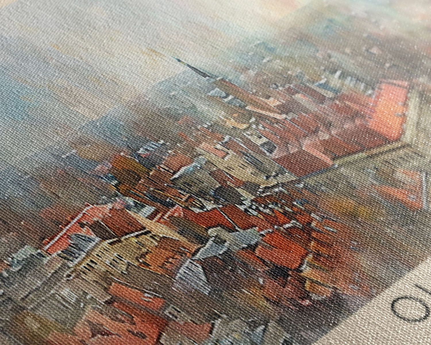 Most of our canvases are made in the USA, with the exception of canvases ordered with the light oak unstained frames, and any large canvases (24x48, 30x60, 16x48 and 20x60) ordered WITH a frame. These are temporarily made in and shipped from Europe, while we try to find a more consistent supplier in the USA.